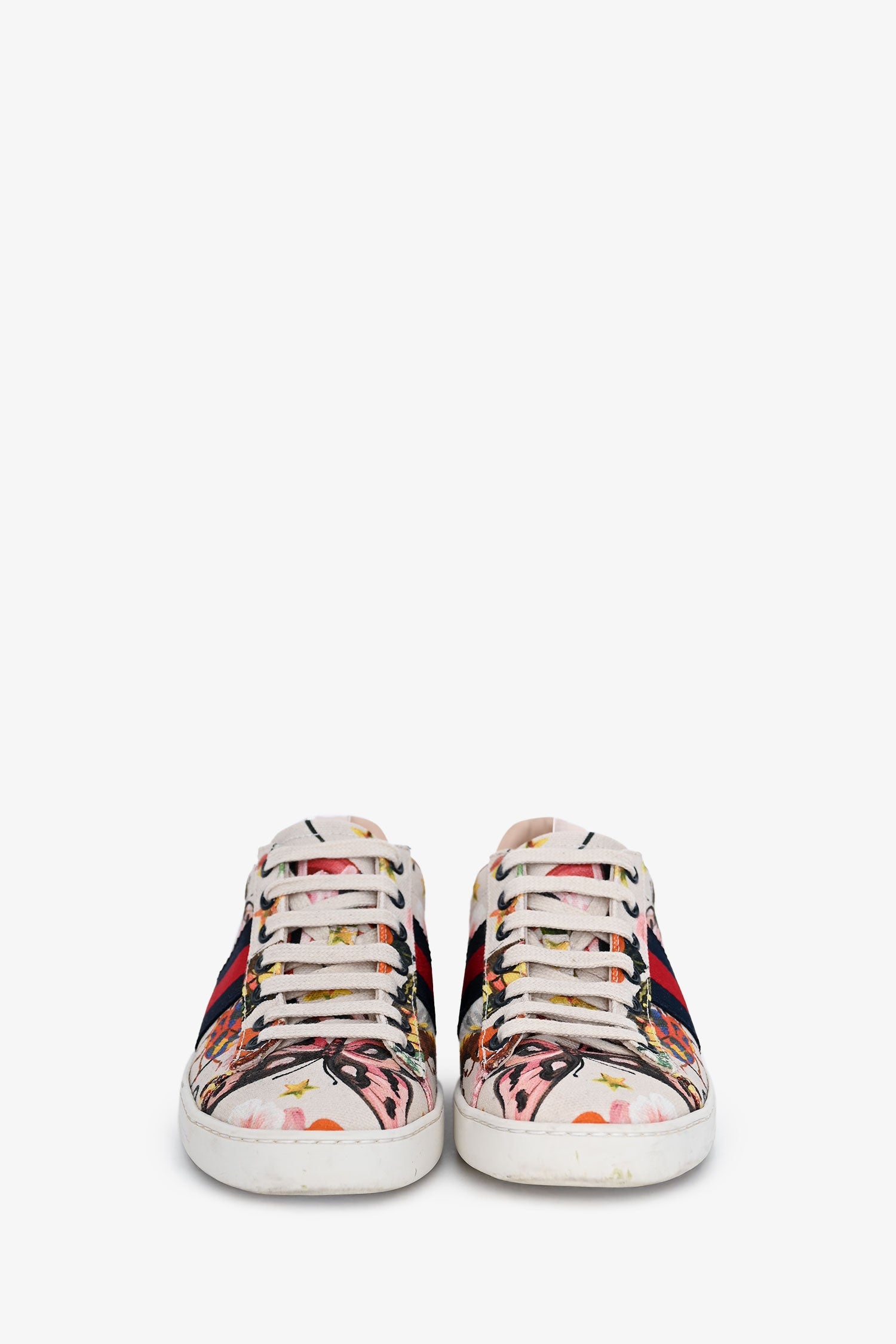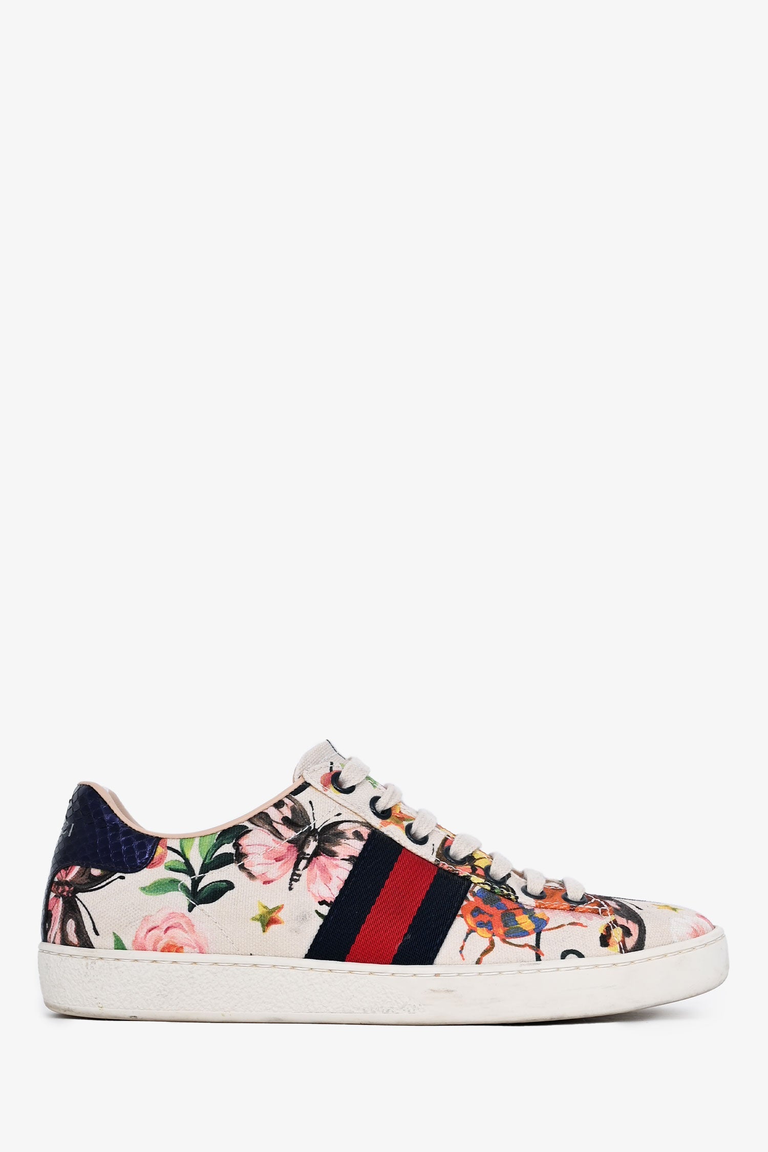 Gucci Cream Canvas Garden Exclusive Ace Sneakers Size 36