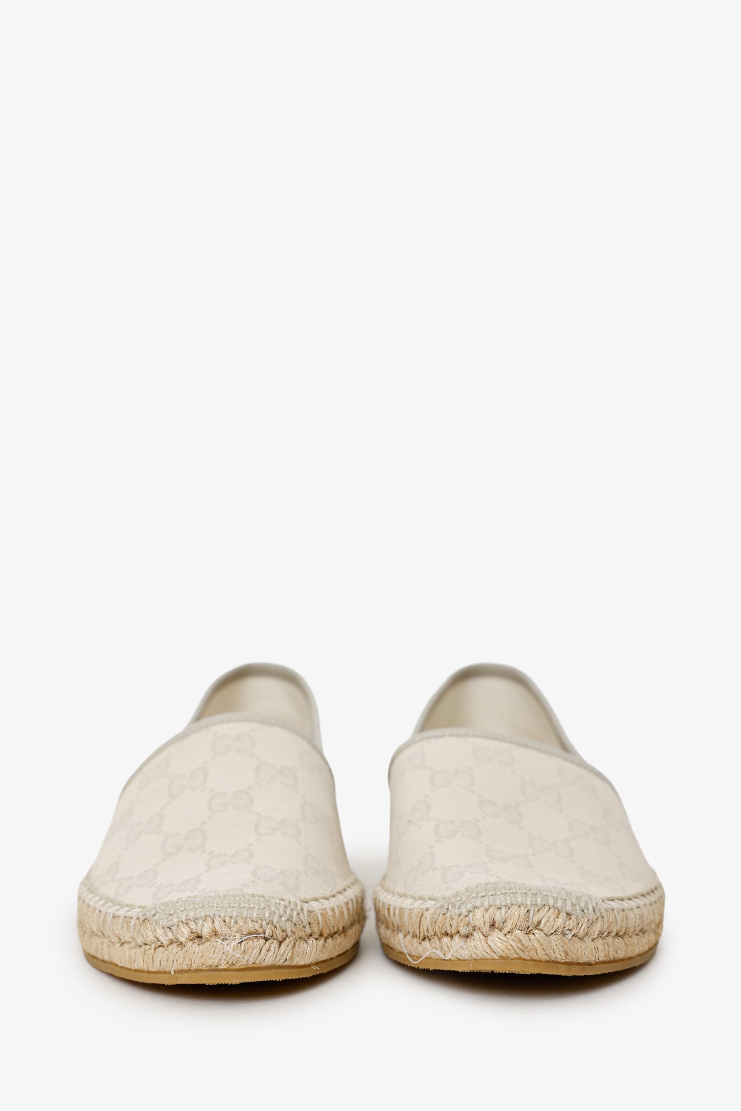 Gucci Cream Gucci Canvas Espadrilles. Round toe. Contrast and tonal stitching.