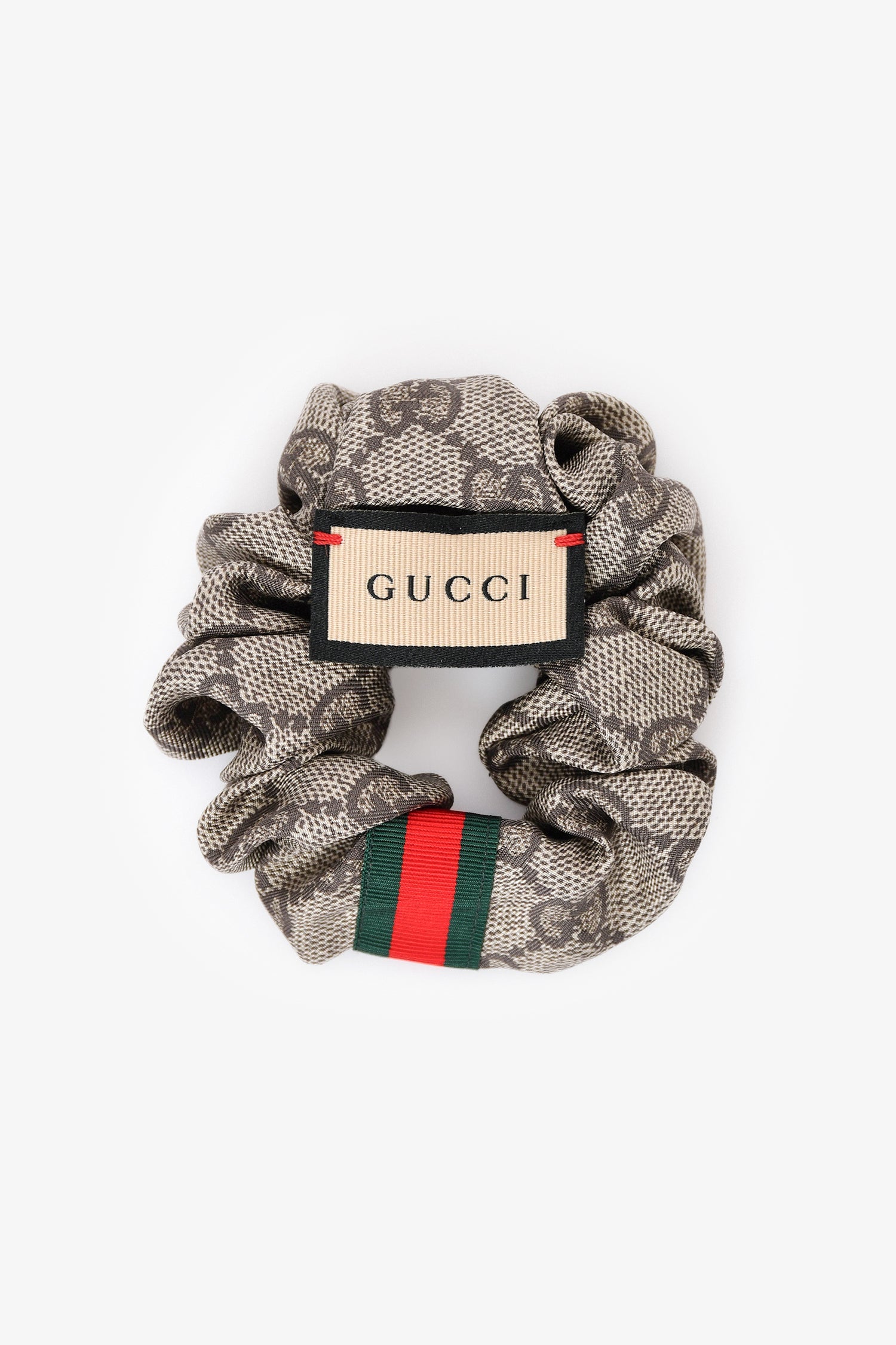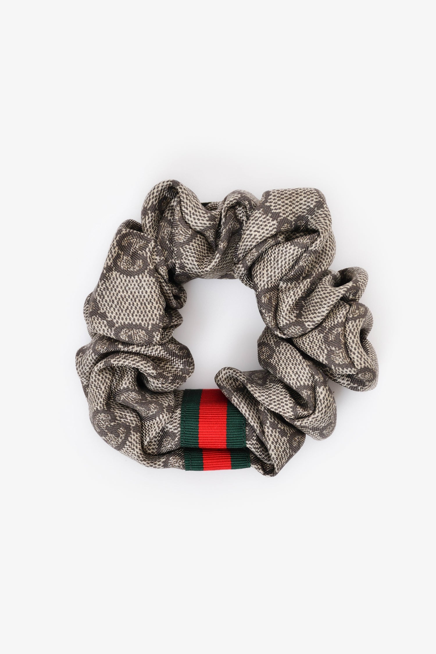 Gucci Monogram Web Silk Scrunchie. Tonal stitching.