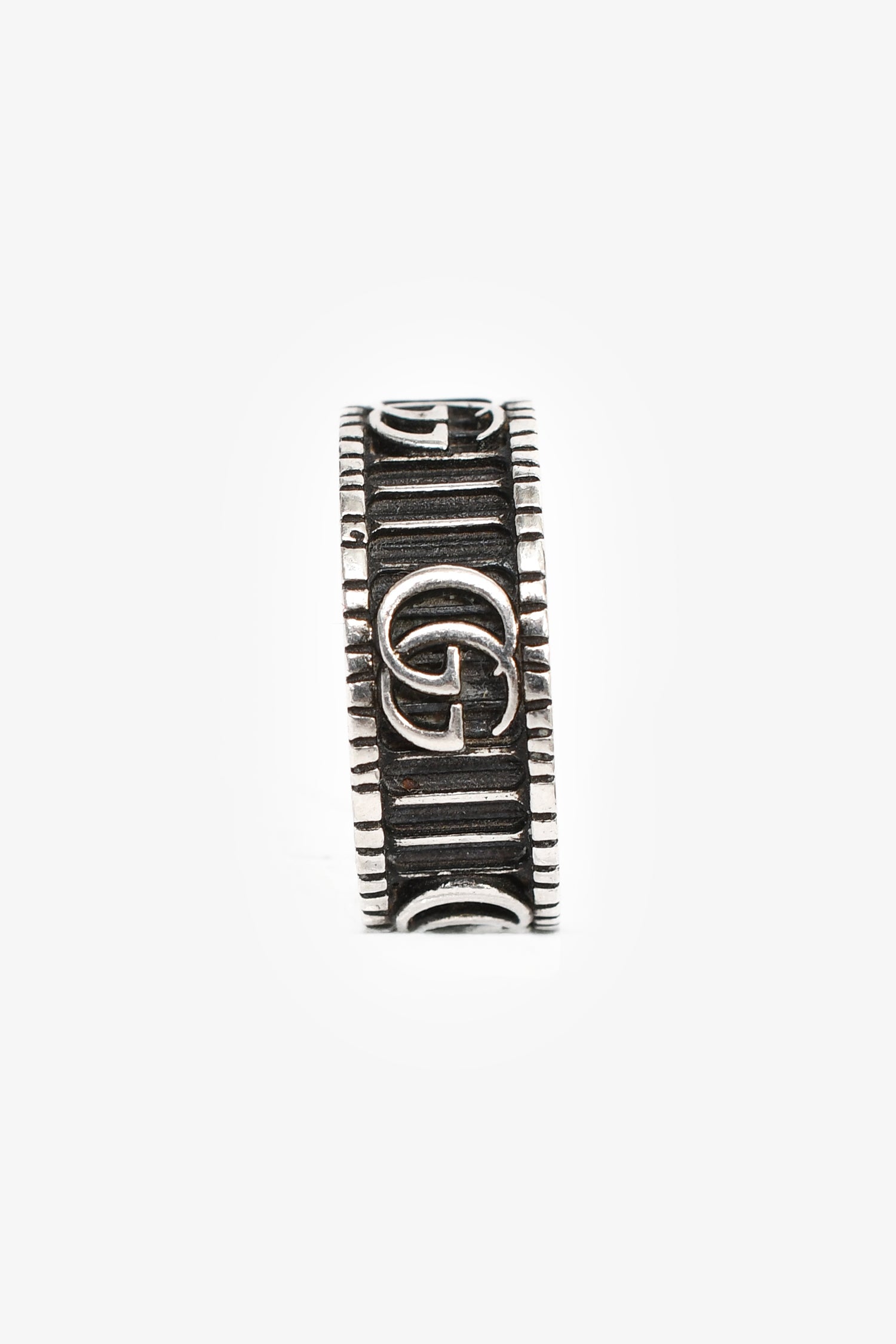 Gucci Sterling Silver Double G Rope Wide Ring.
