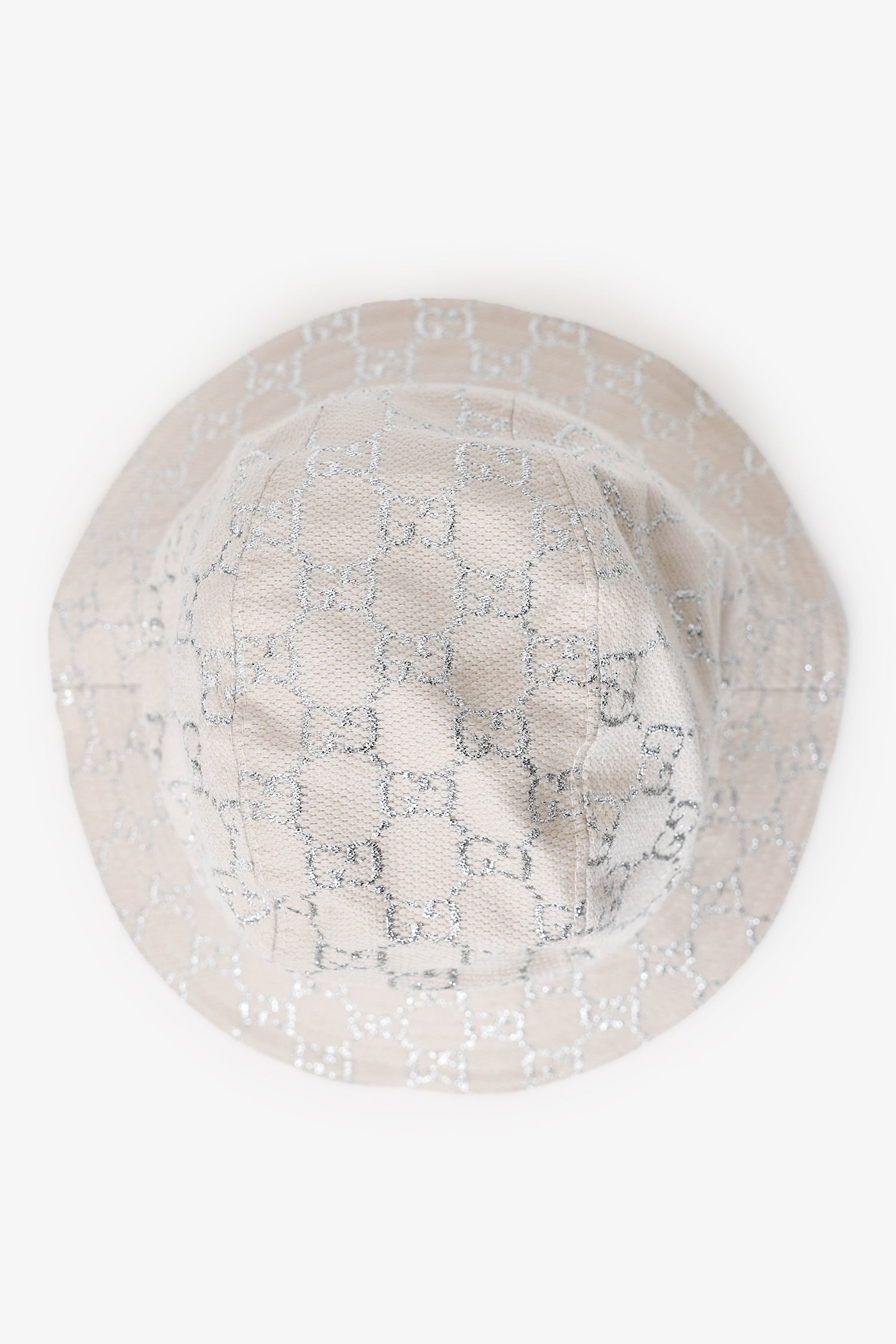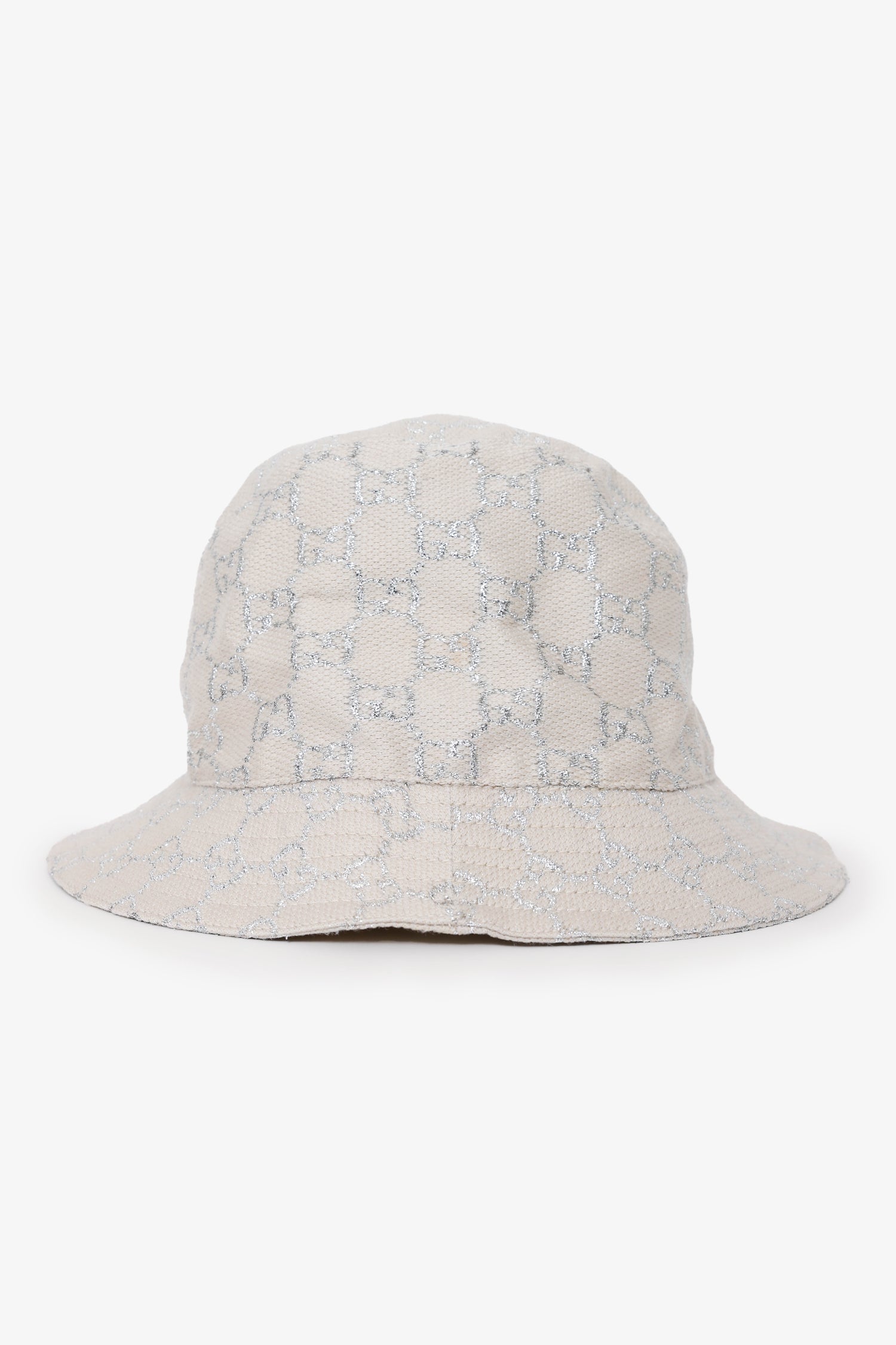 Gucci White Canvas Bucket Hat. Lined interior. Tonal stitching.