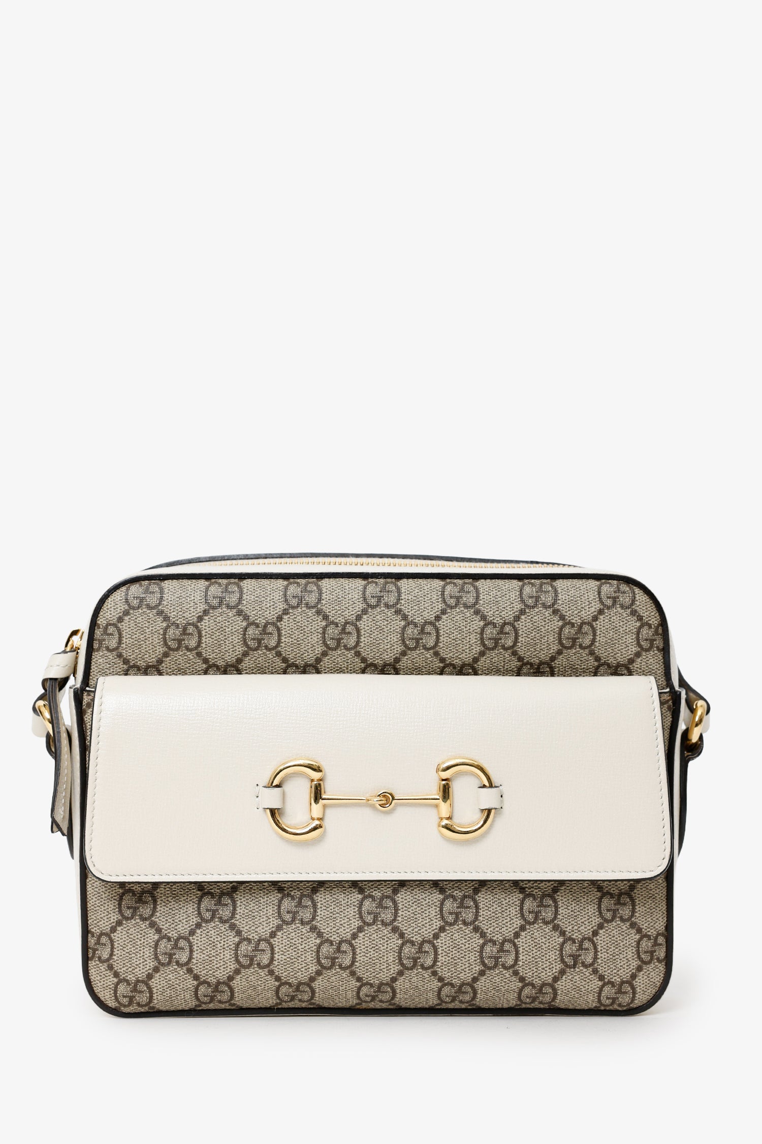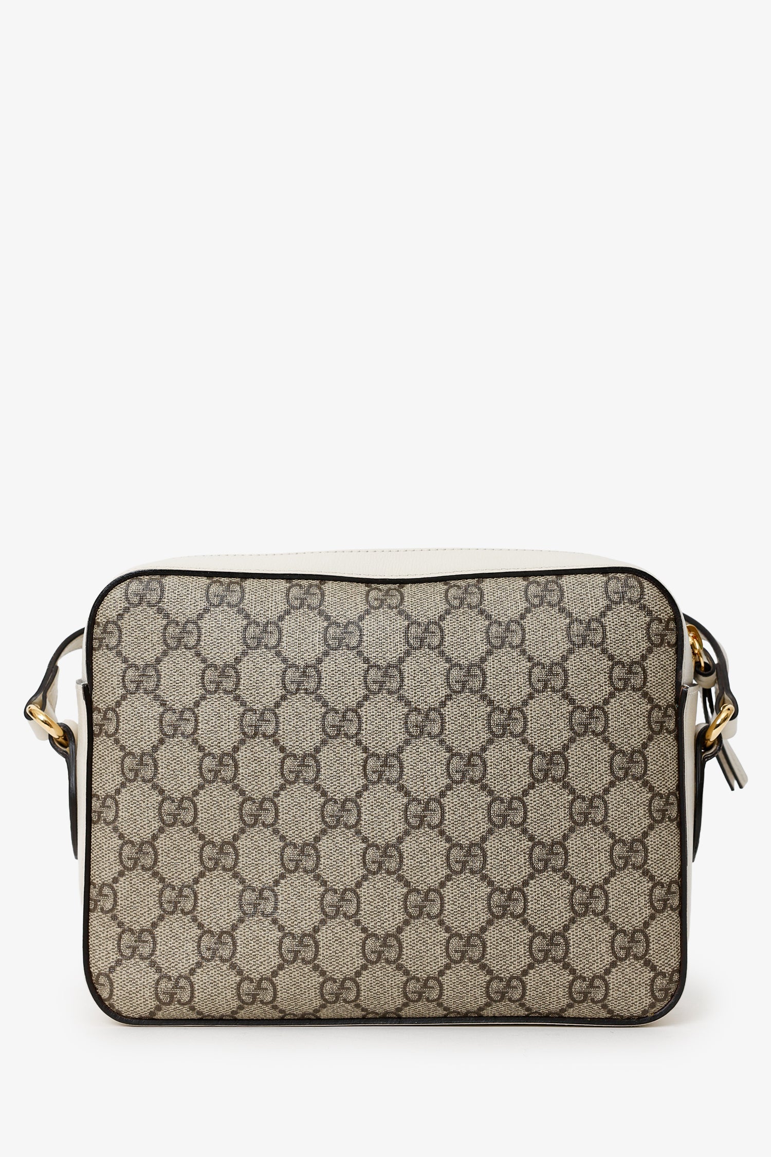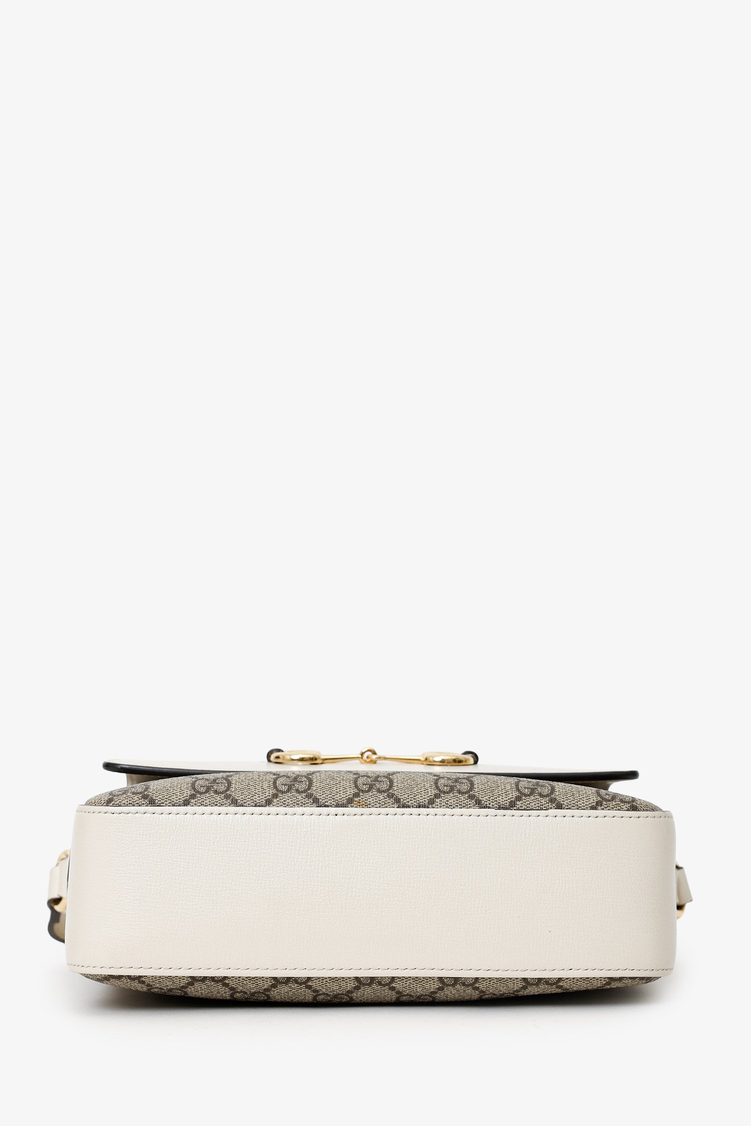 Gucci White Leather GG Supreme Horsebit 1955 Crossbody Bag