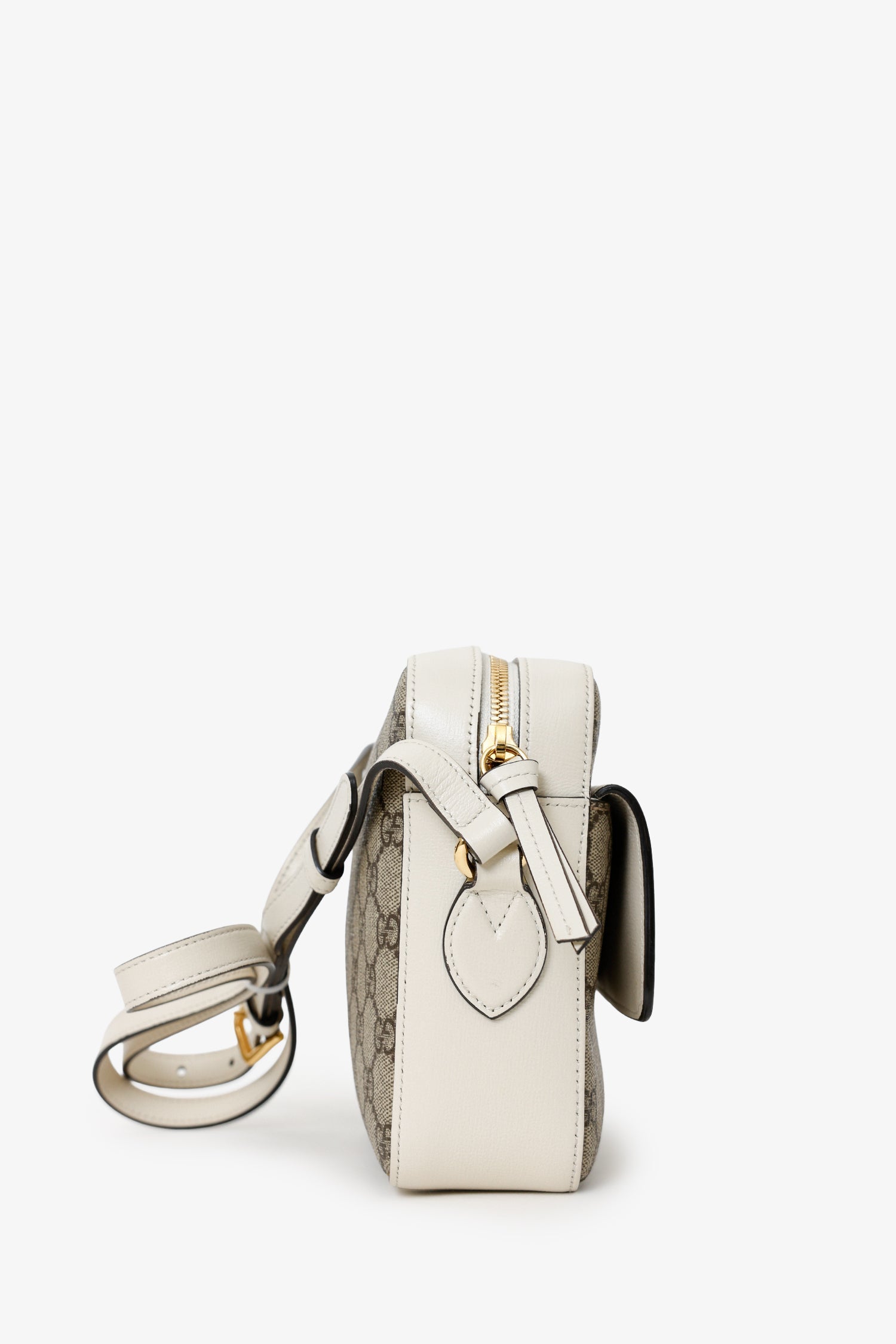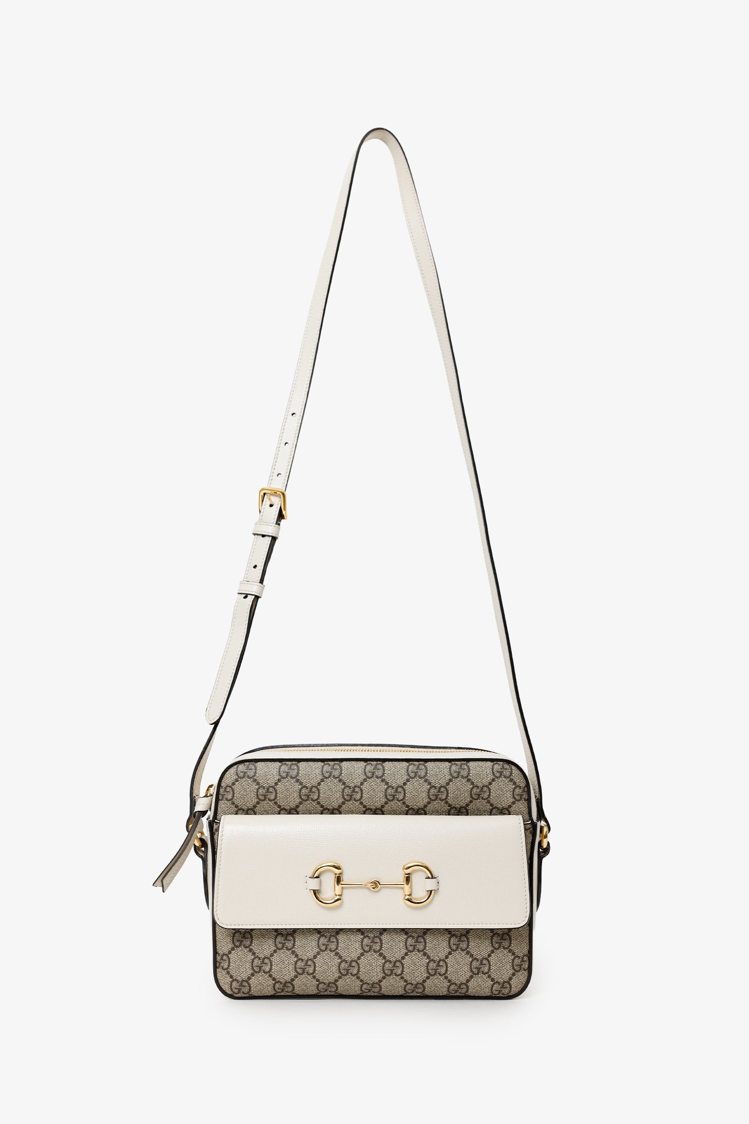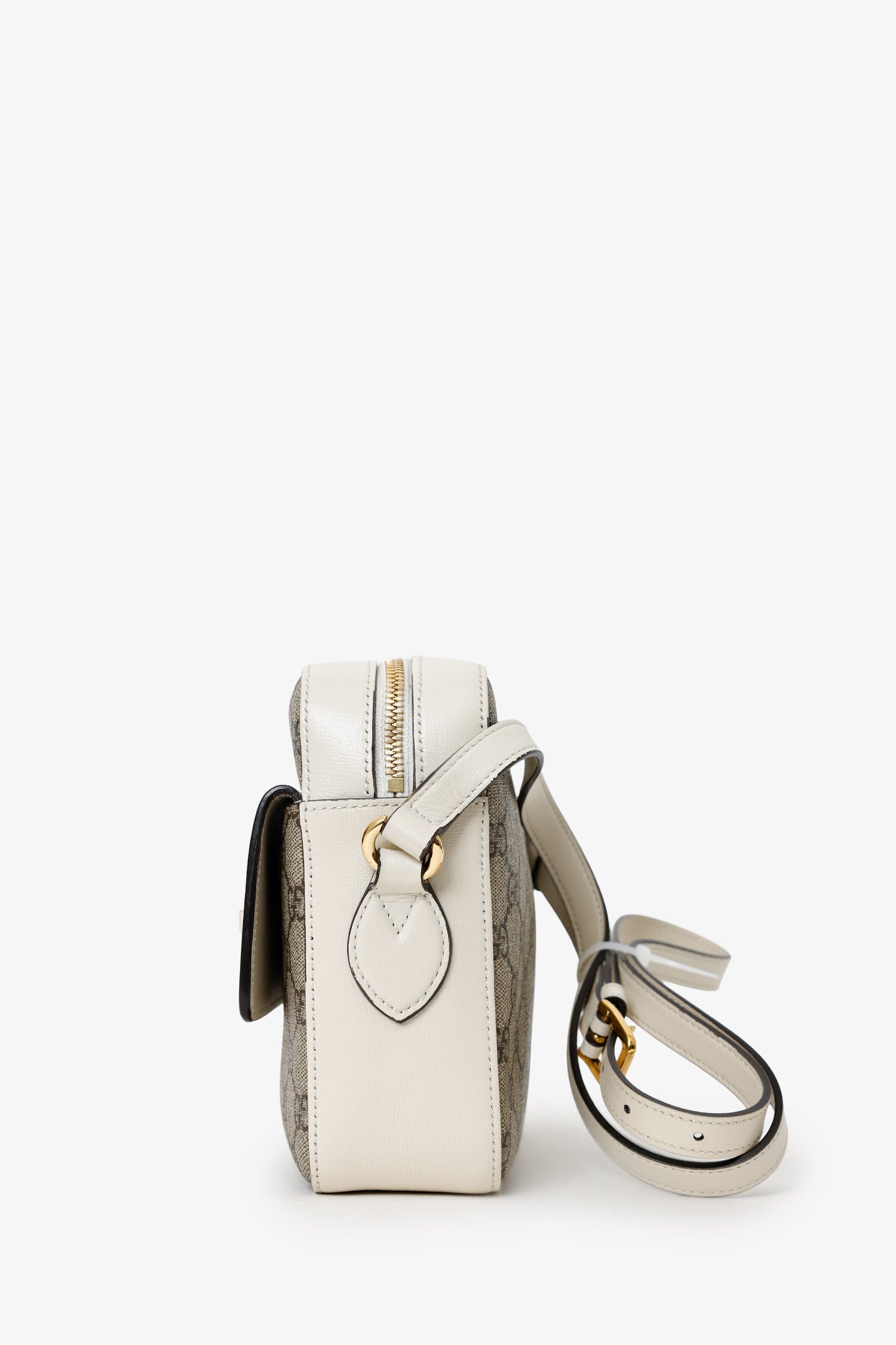 Gucci White Leather GG Supreme Horsebit 1955 Crossbody Bag