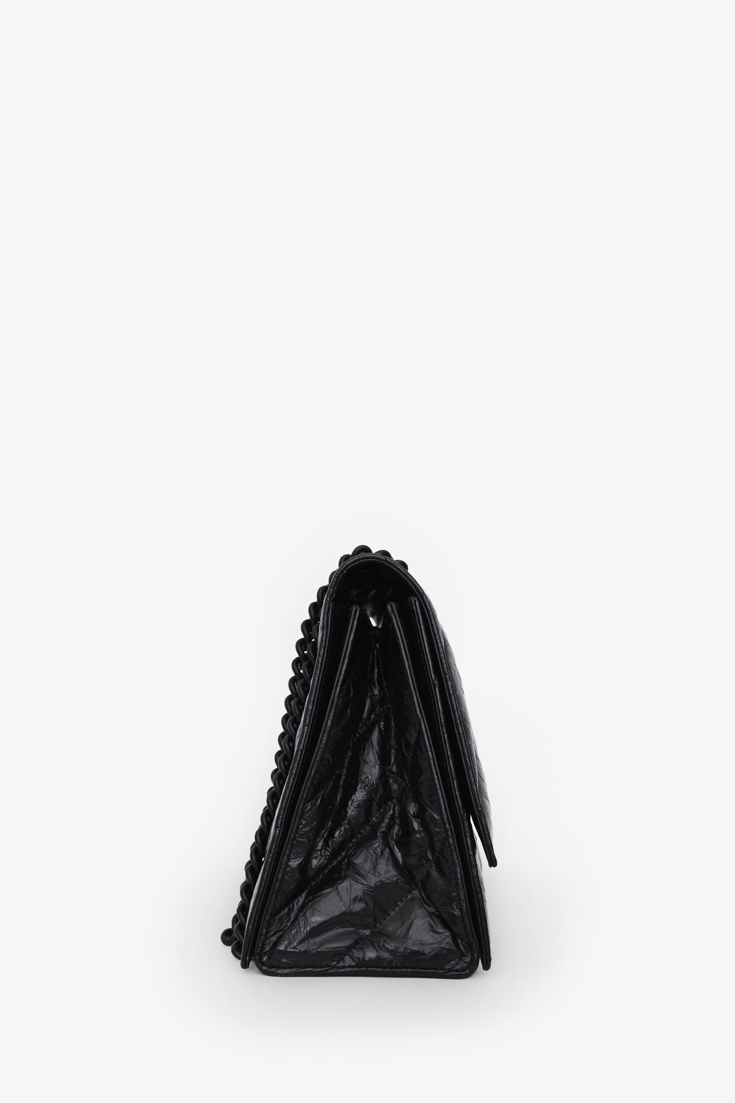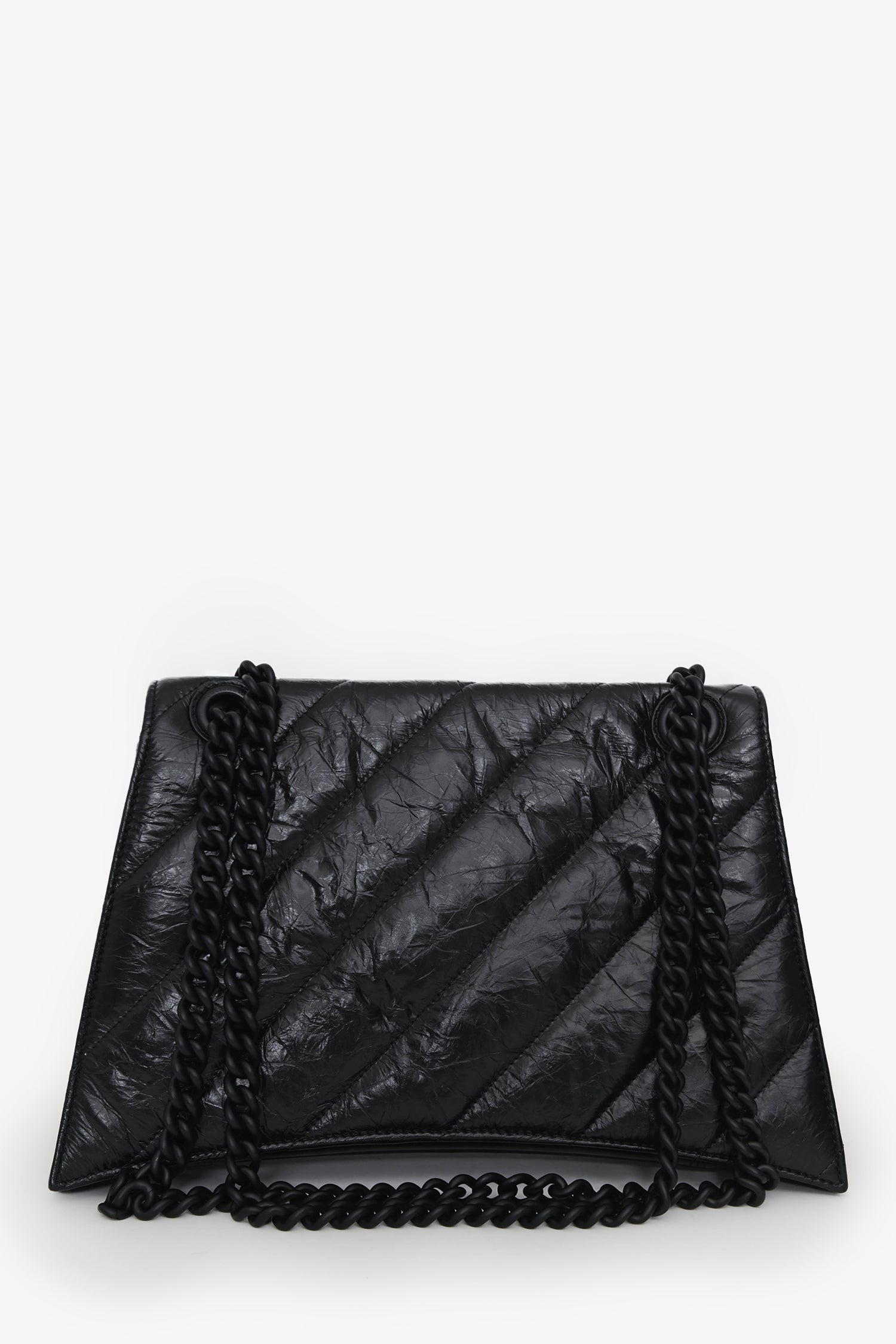 Balenciaga Black Crackled Leather Medium Crush Shoulder Chain Bag