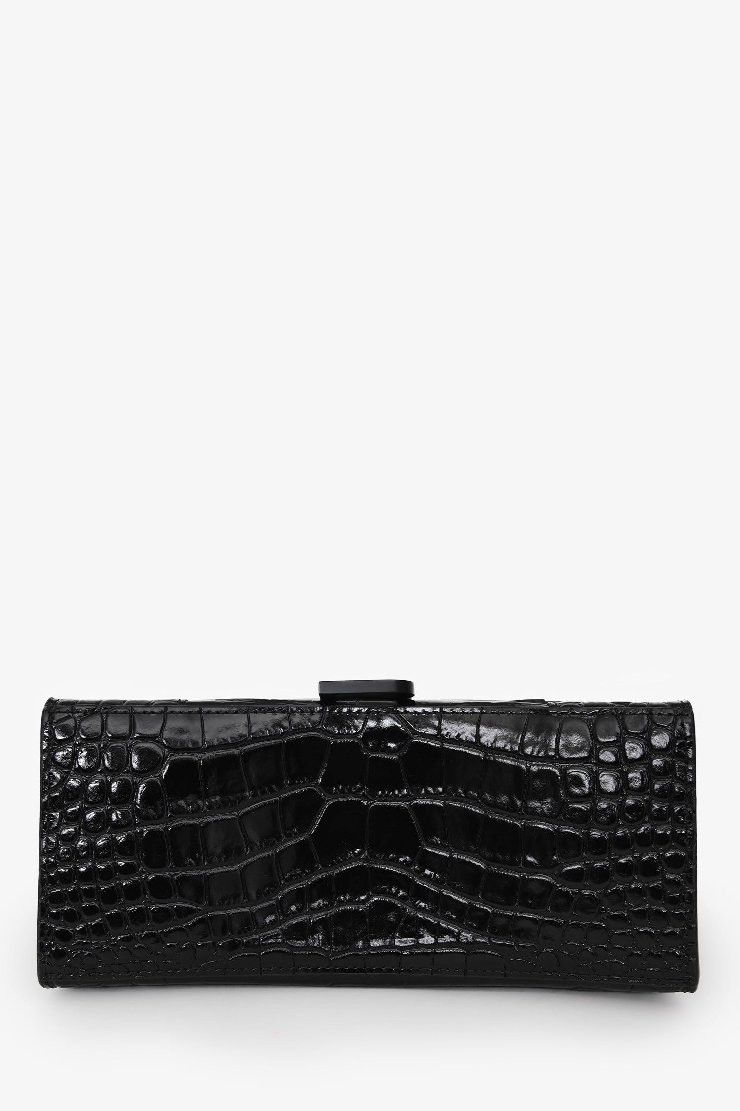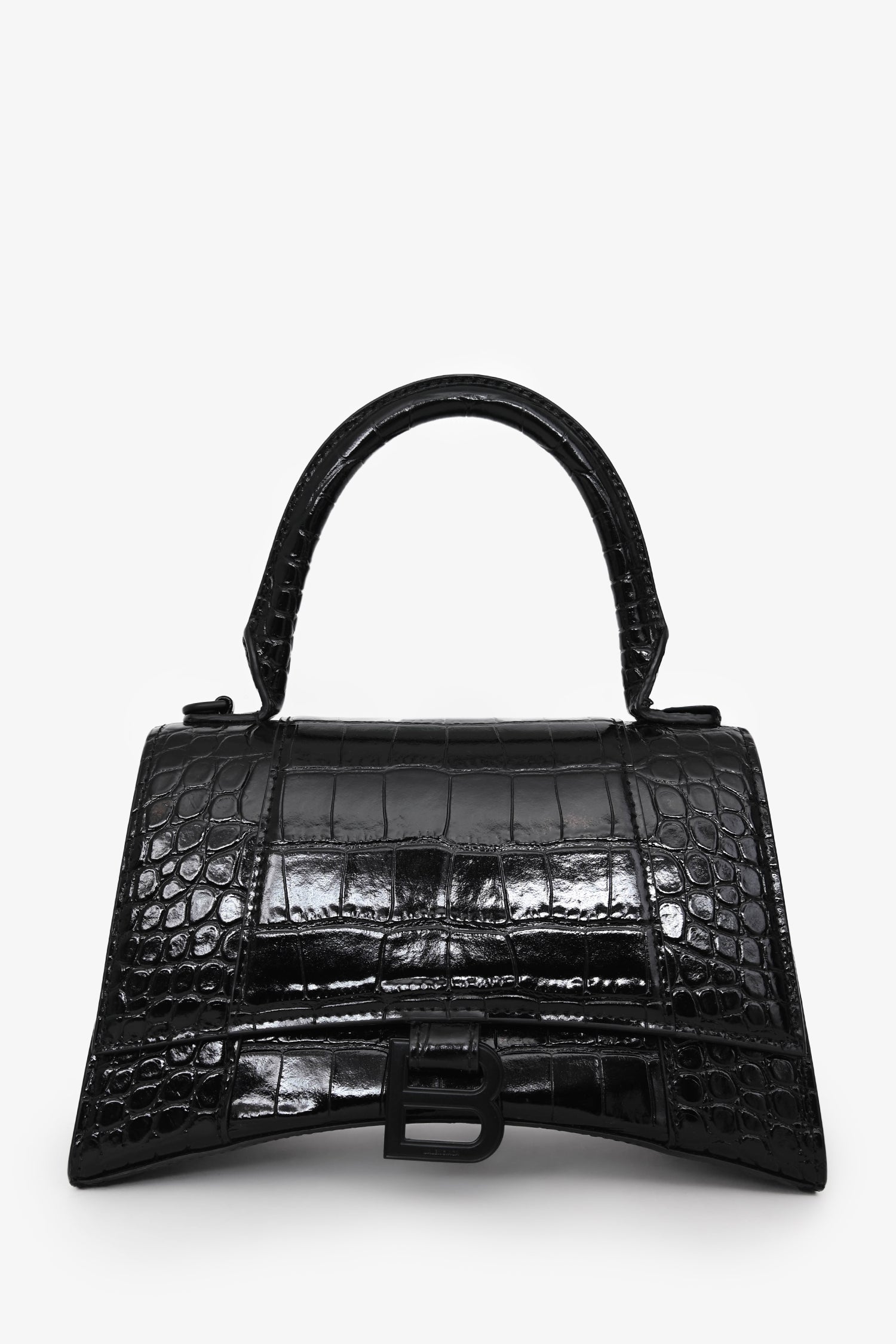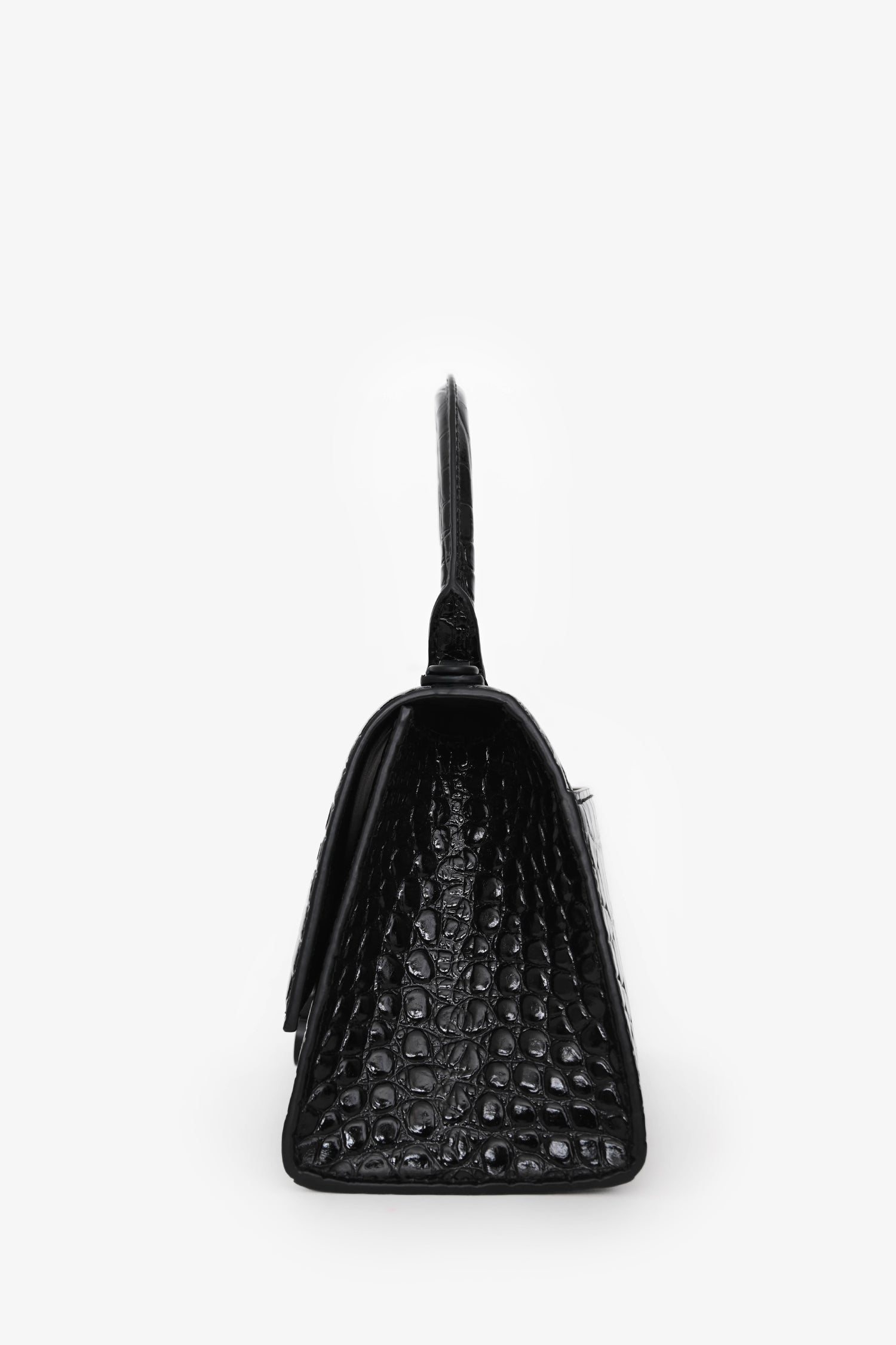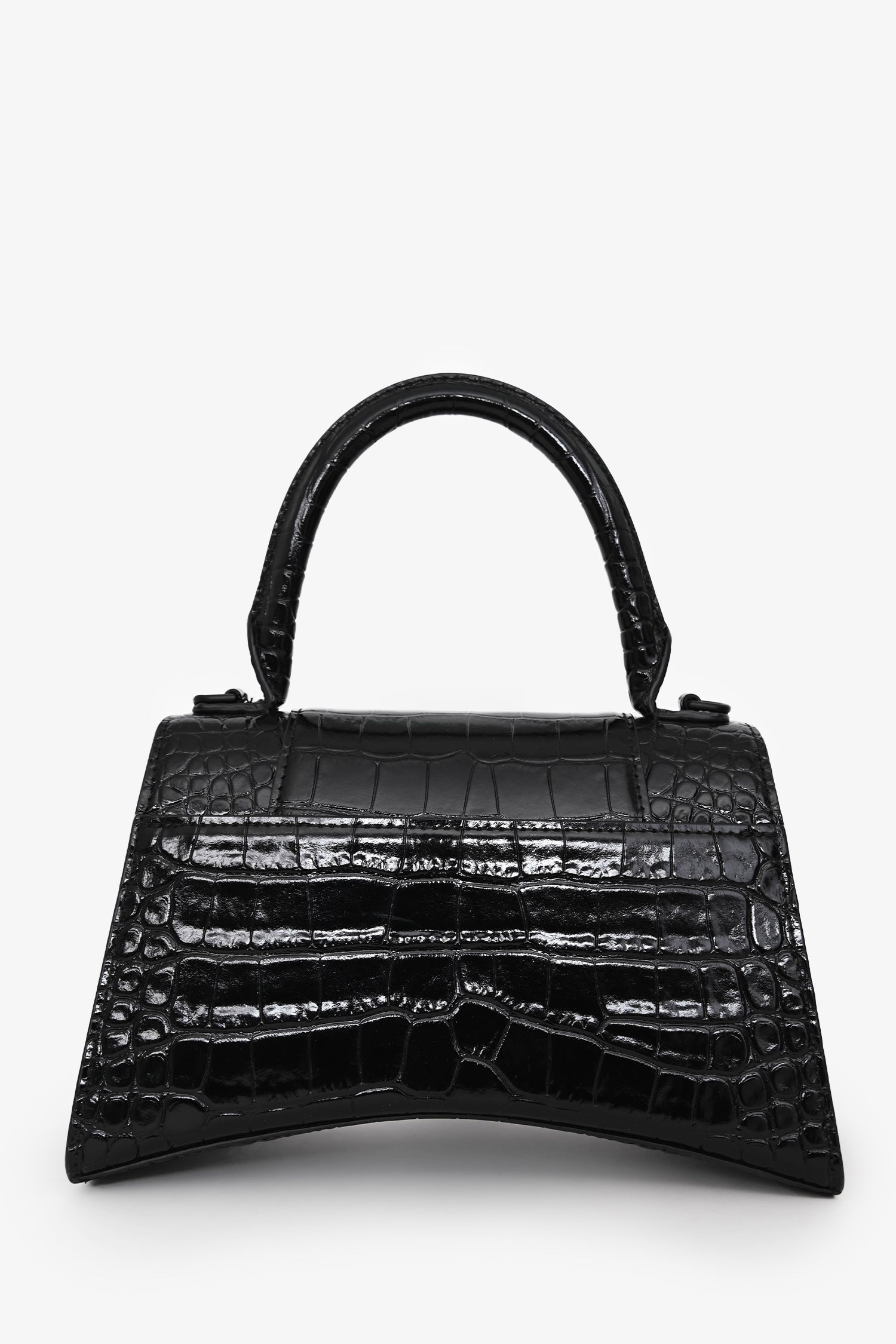 Balenciaga Black Croc Embossed Small Hourglass Top Handle Bag with Strap