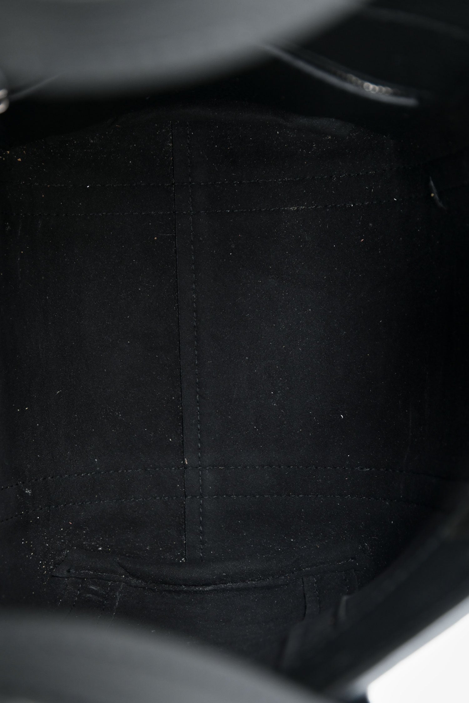 Balenciaga Black Grained Everyday XS North-South Shoulder Tote Bag. Top interior magnetic button closure. Dual handles. Adjustable and removable strap. Single interior wall zip pocket. Silver-tone hardware. Tonal stitching.