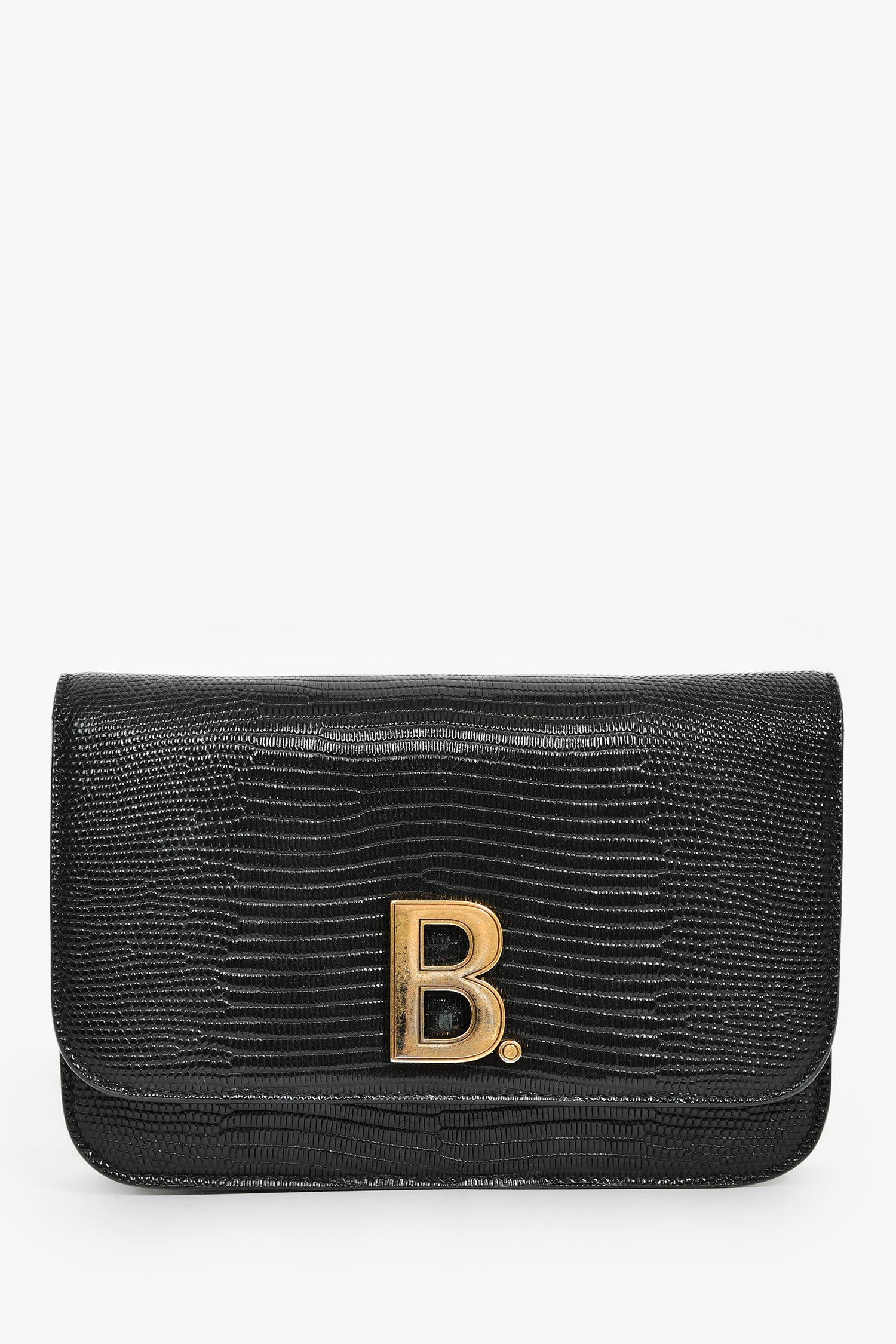 Balenciaga Black Lizard Embossed B. Logo Wallet On Chain Crossbody