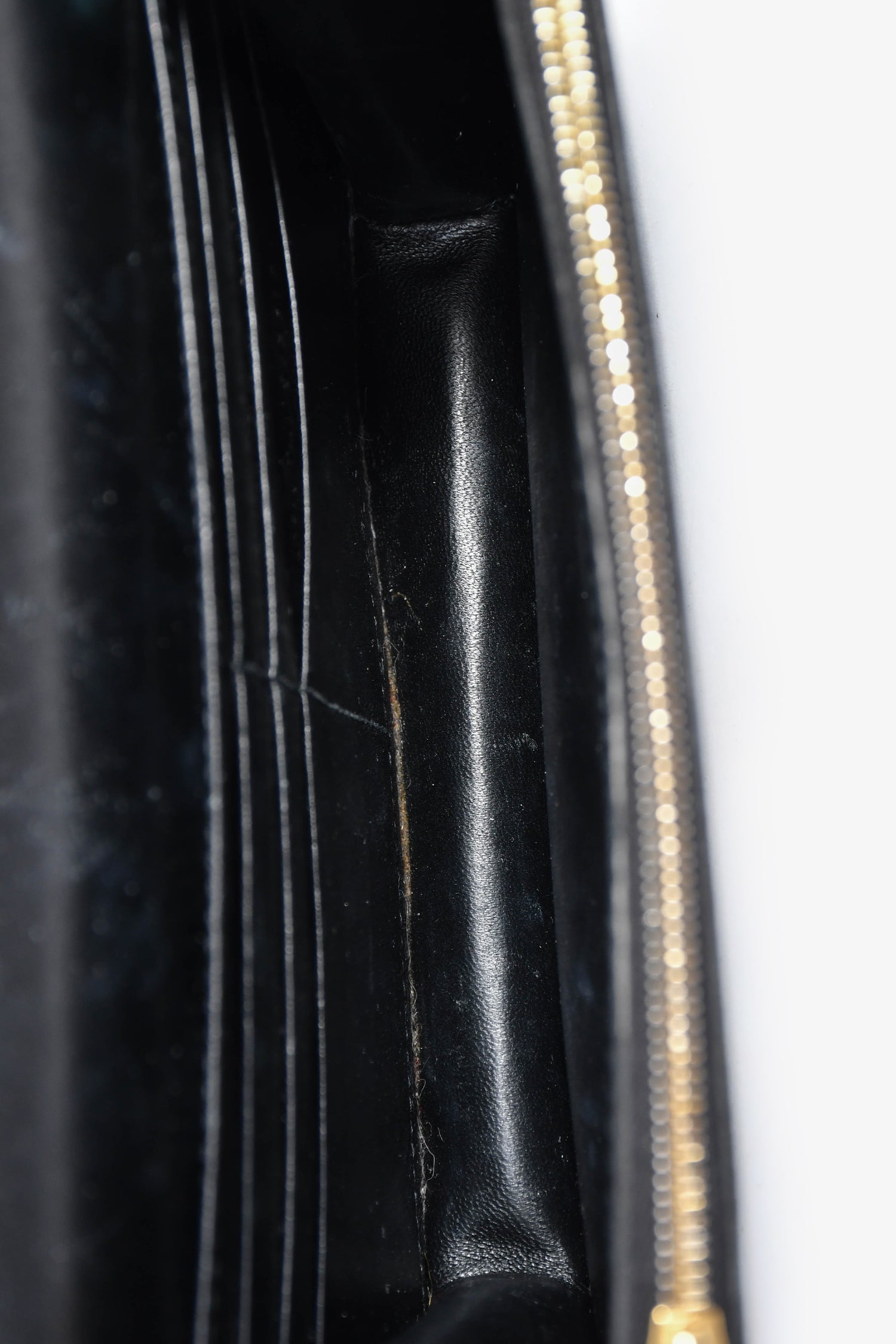 Dimensions: 7.5” width x 5” height x 1” depth x 21” strap dropCondition: This item is in fair pre-loved condition and is sold as-is. Visible wear is present throughout the interior and exterior through scratch marks on the leather and hardware. Discolouration on the hardware.