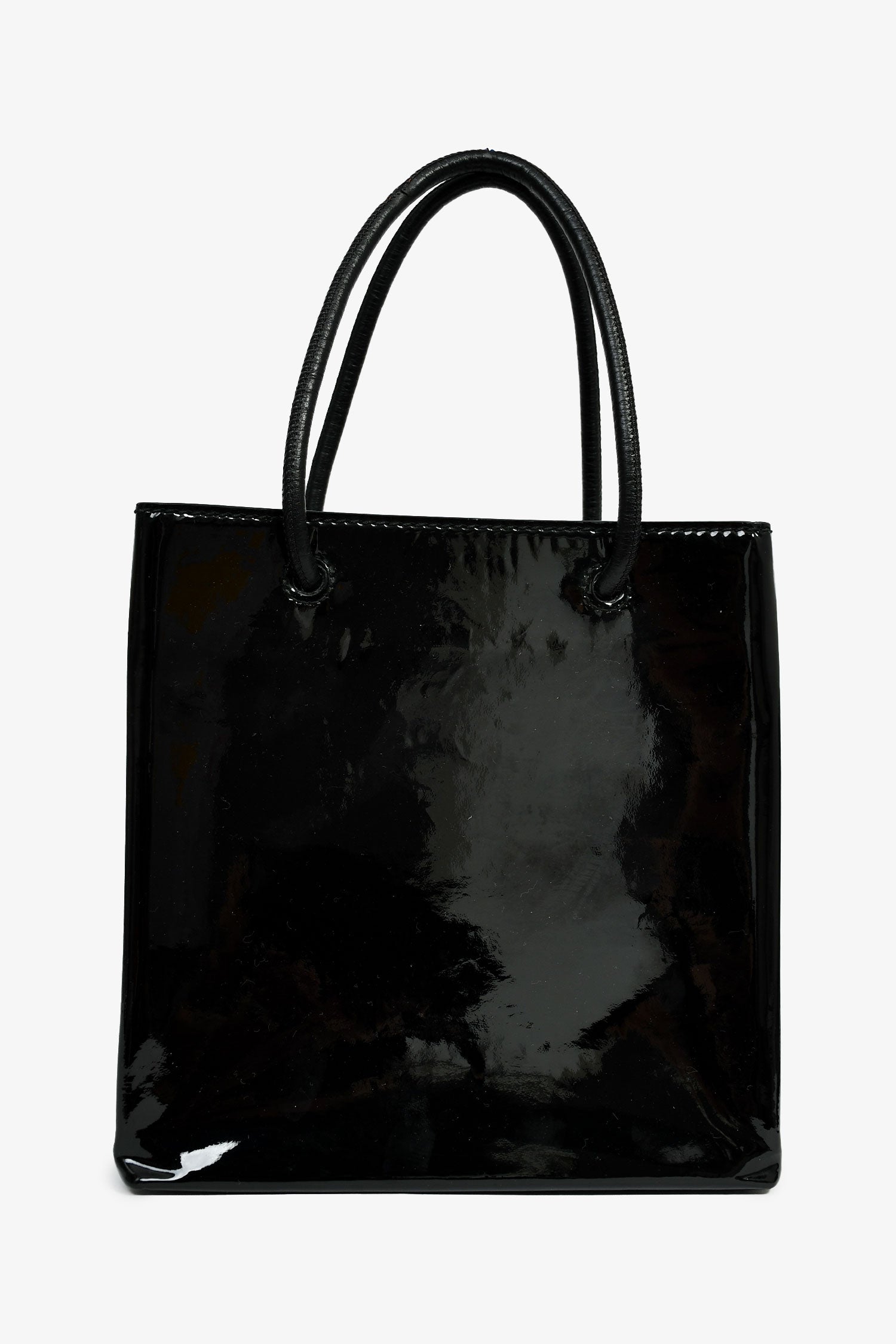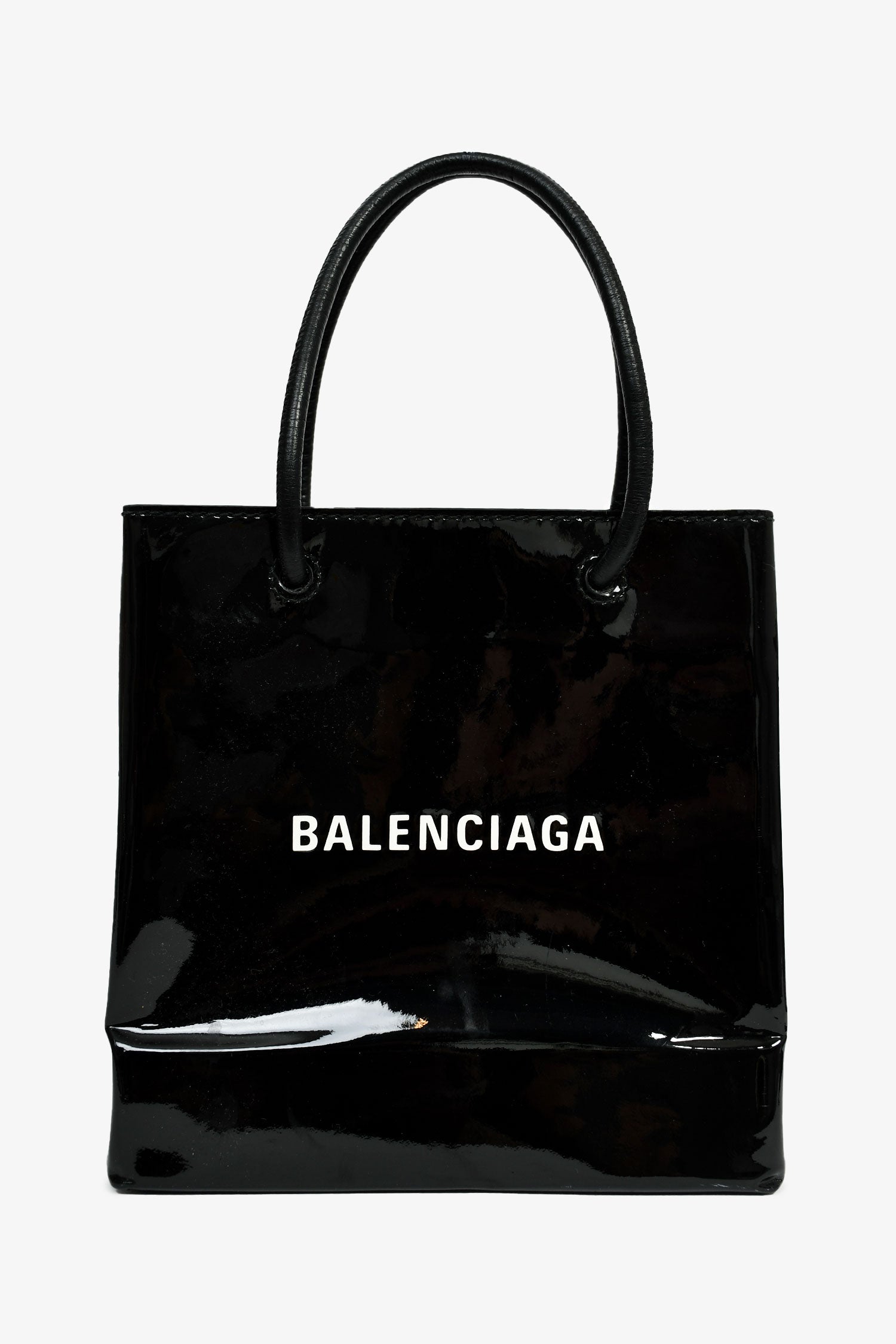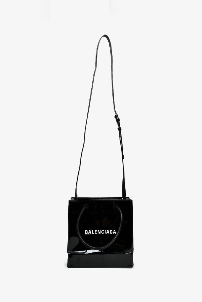 Balenciaga Black Patent Logo XXS Shopping Tote Bag With Strap