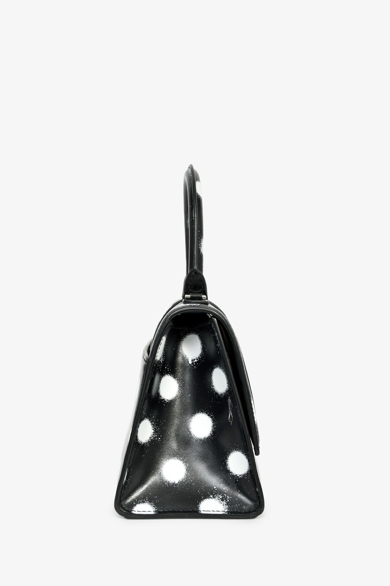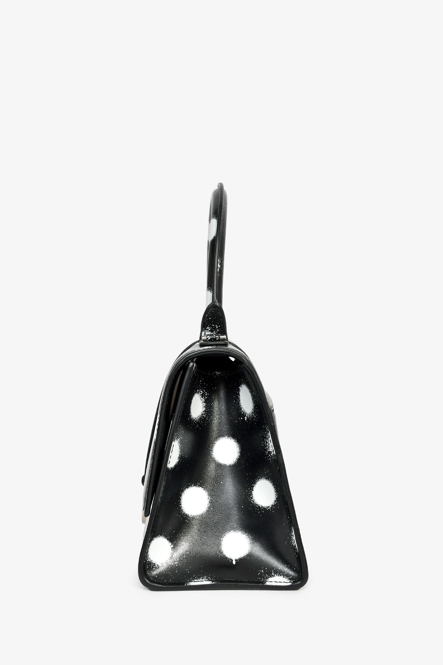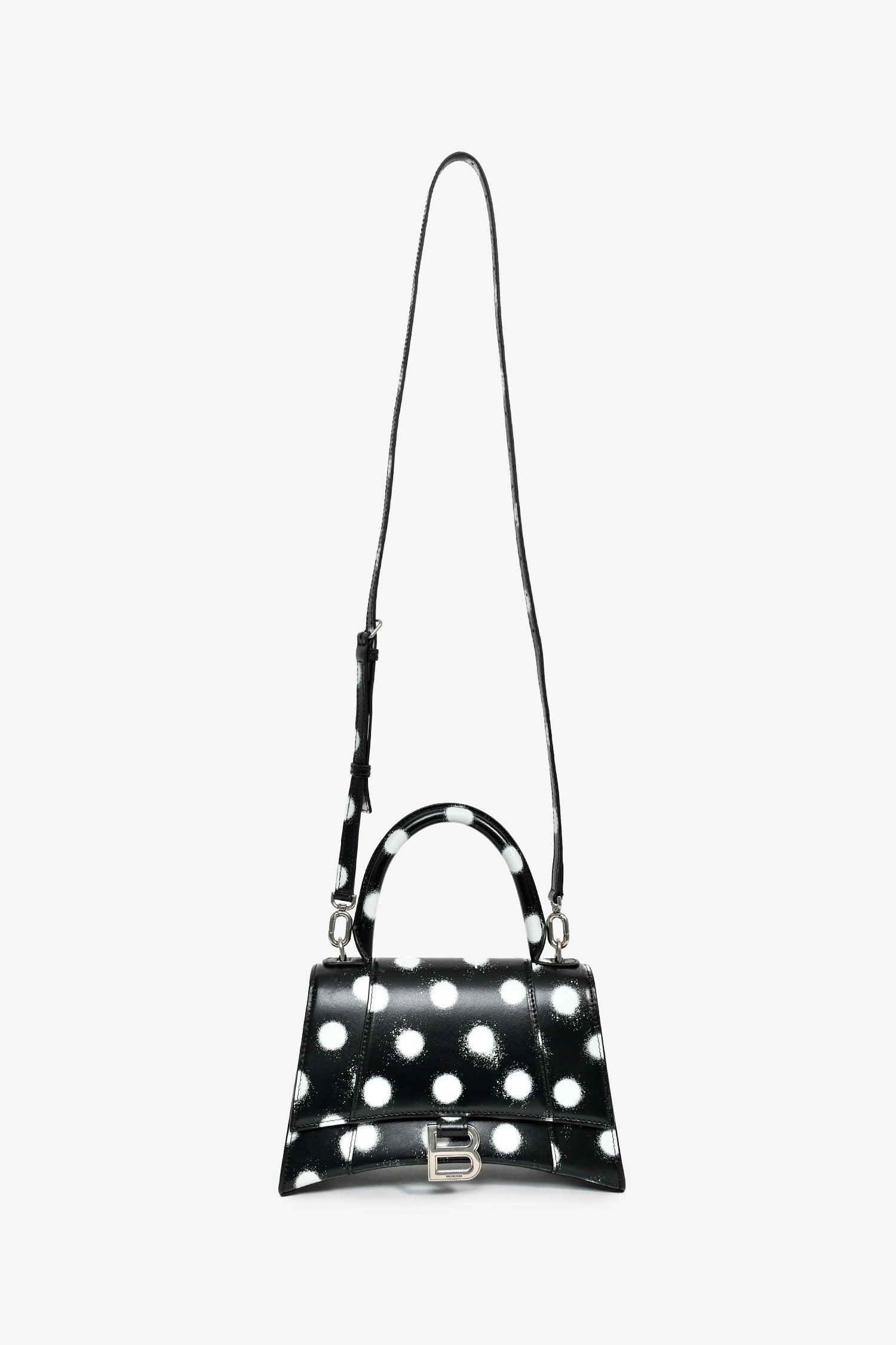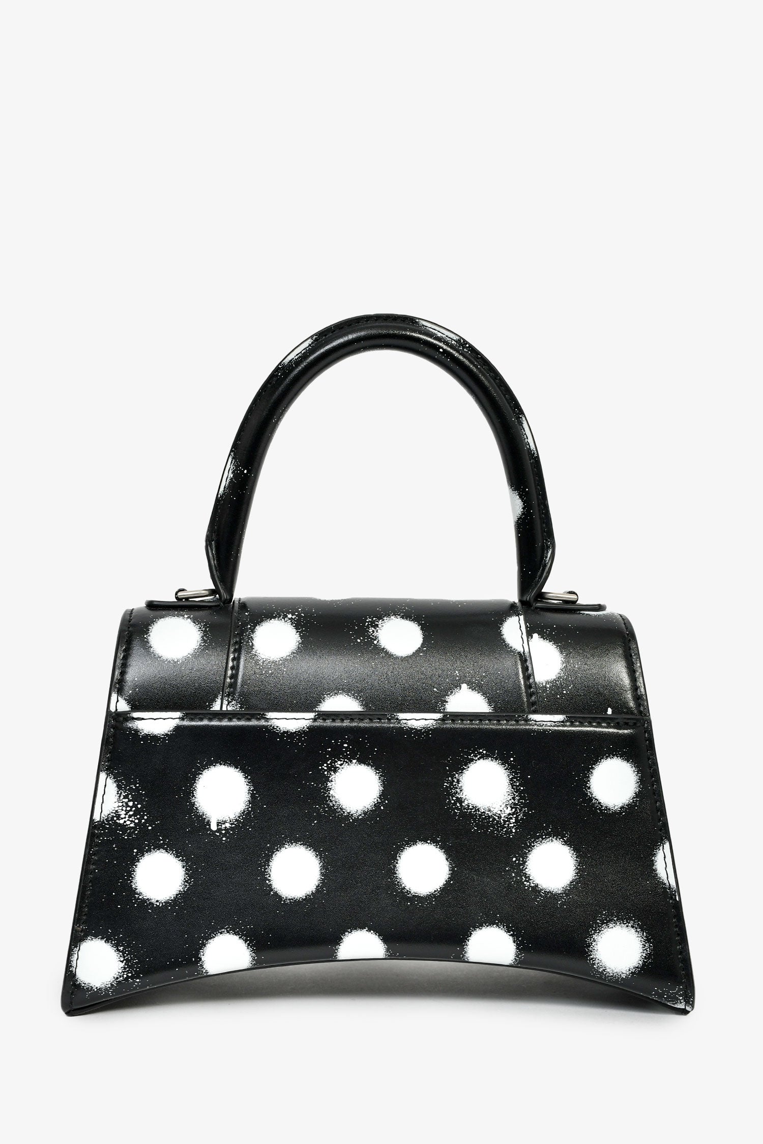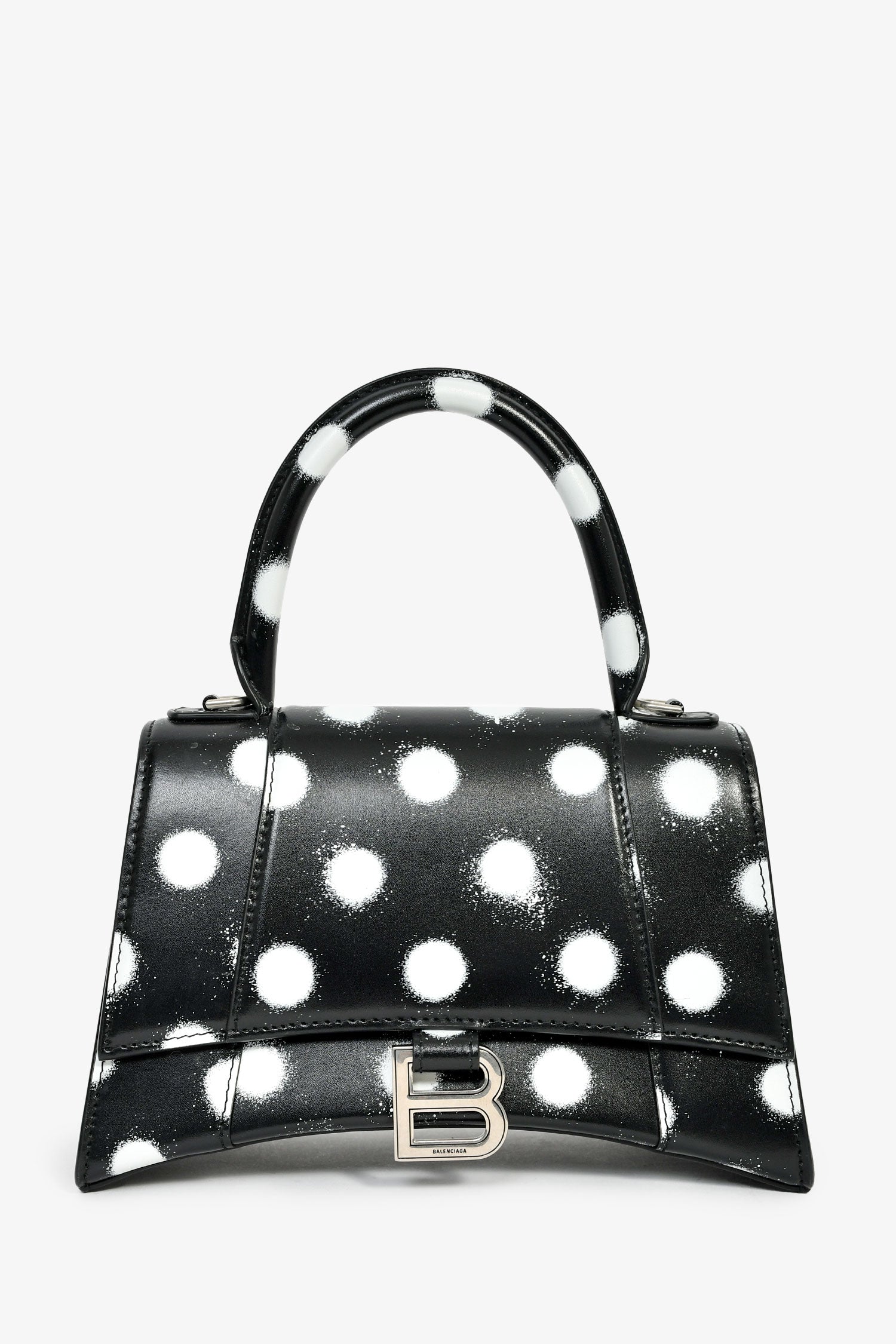 Balenciaga Black/White Leather Polk-a-Dot Small 'Hourglass' Top Handle Bag