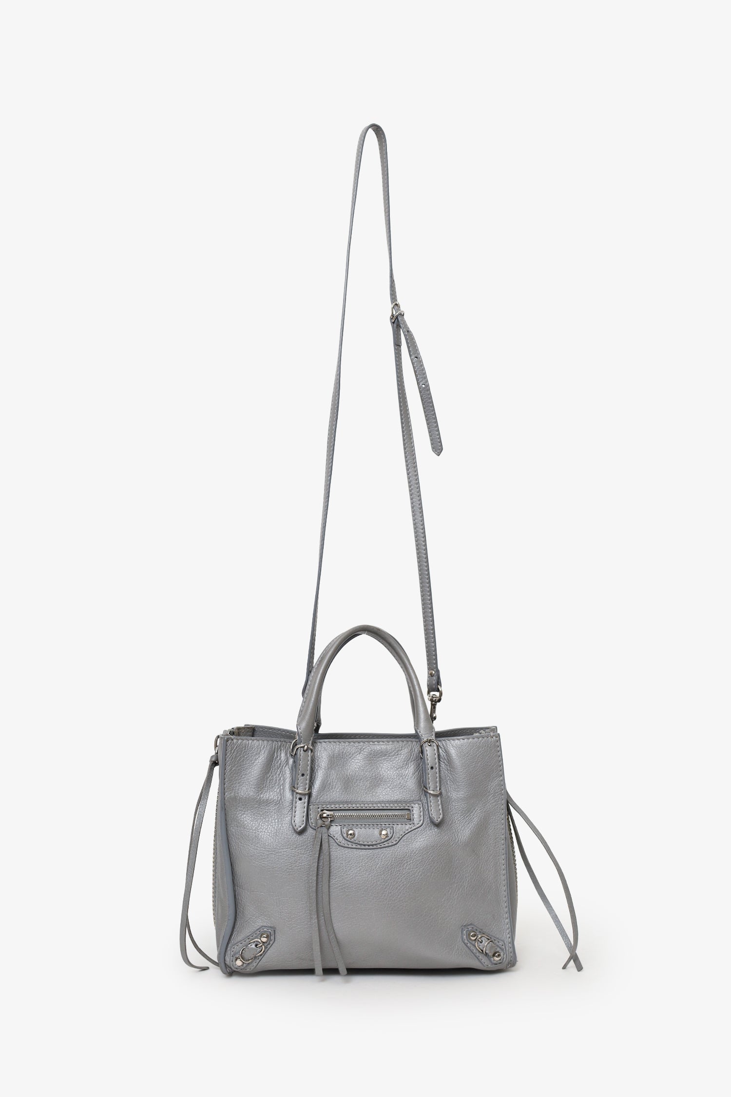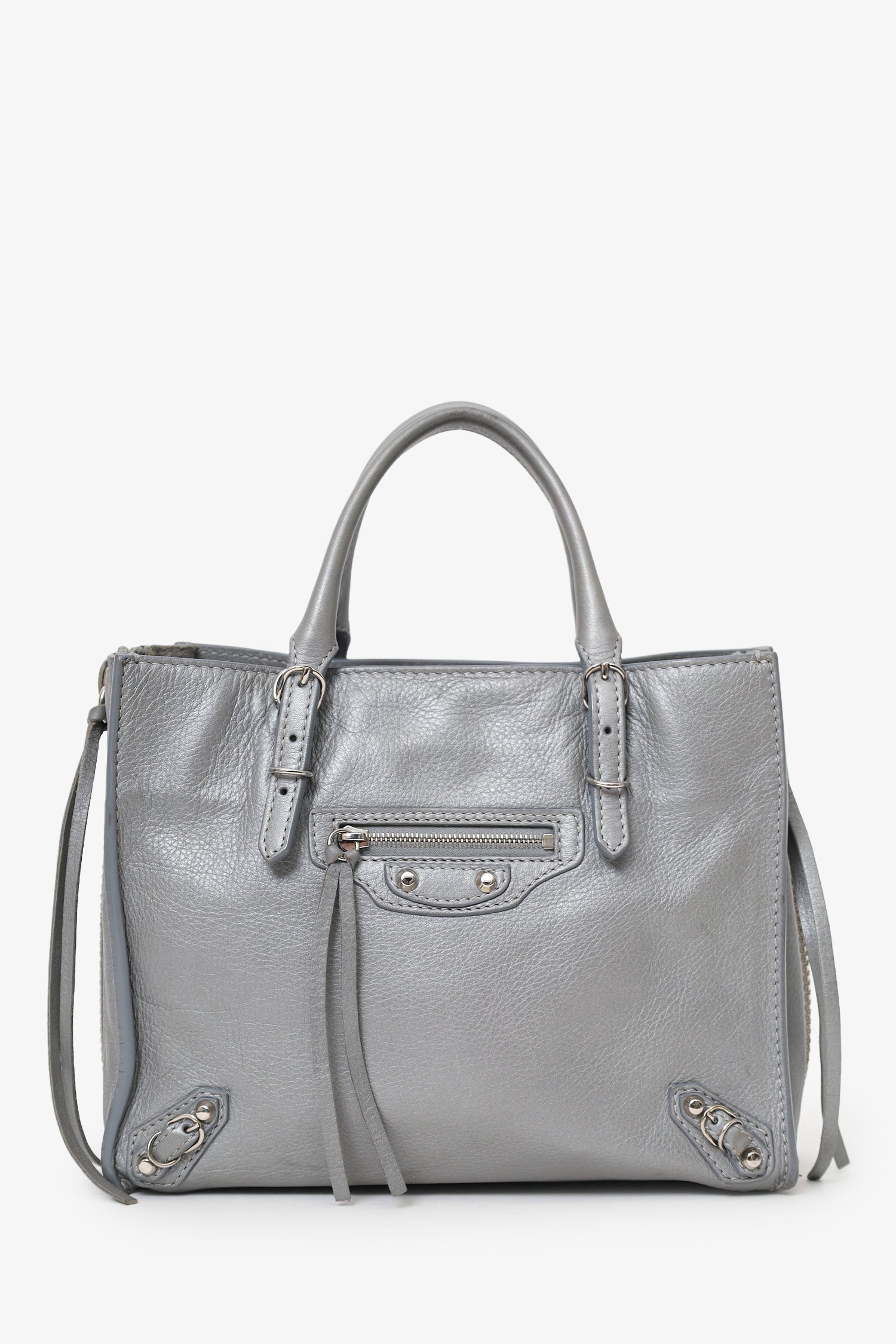 Balenciaga Grey Calfskin Papier Mini A4 Zip Around Tote With Strap