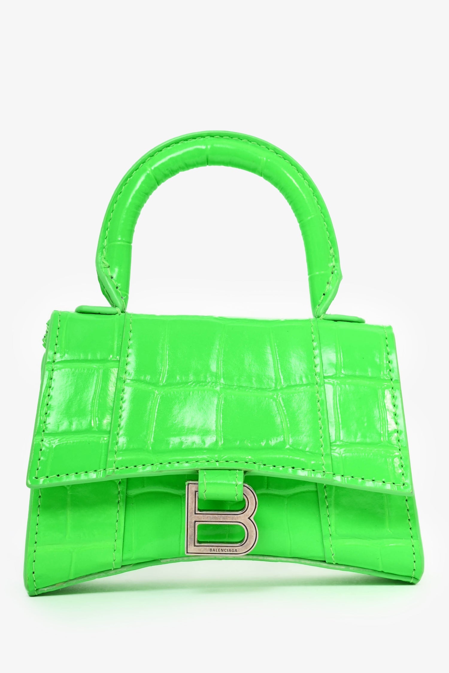 Balenciaga Neon Green Croc Embossed Nano Hourglass Crossbody