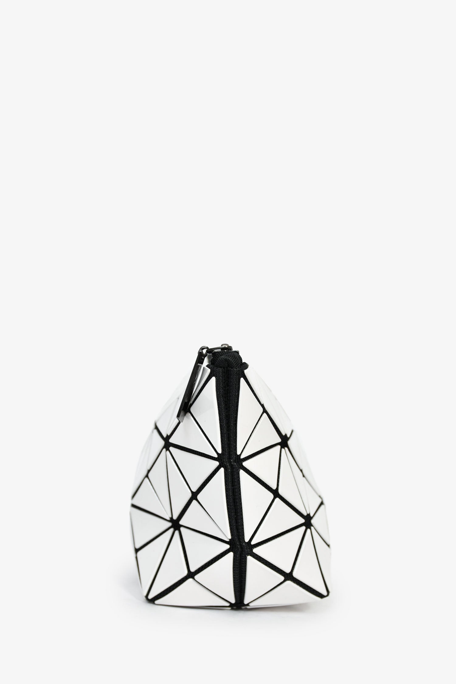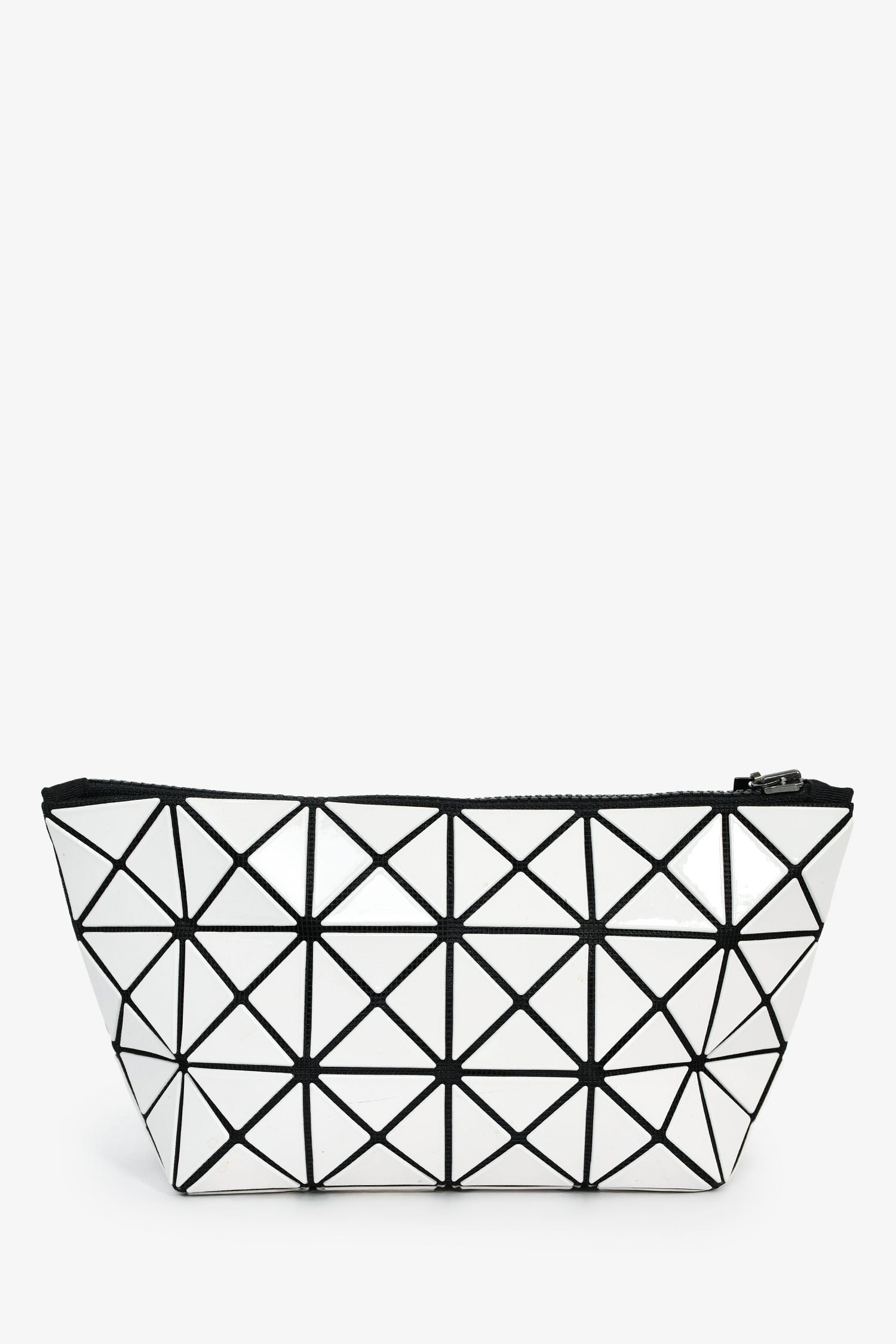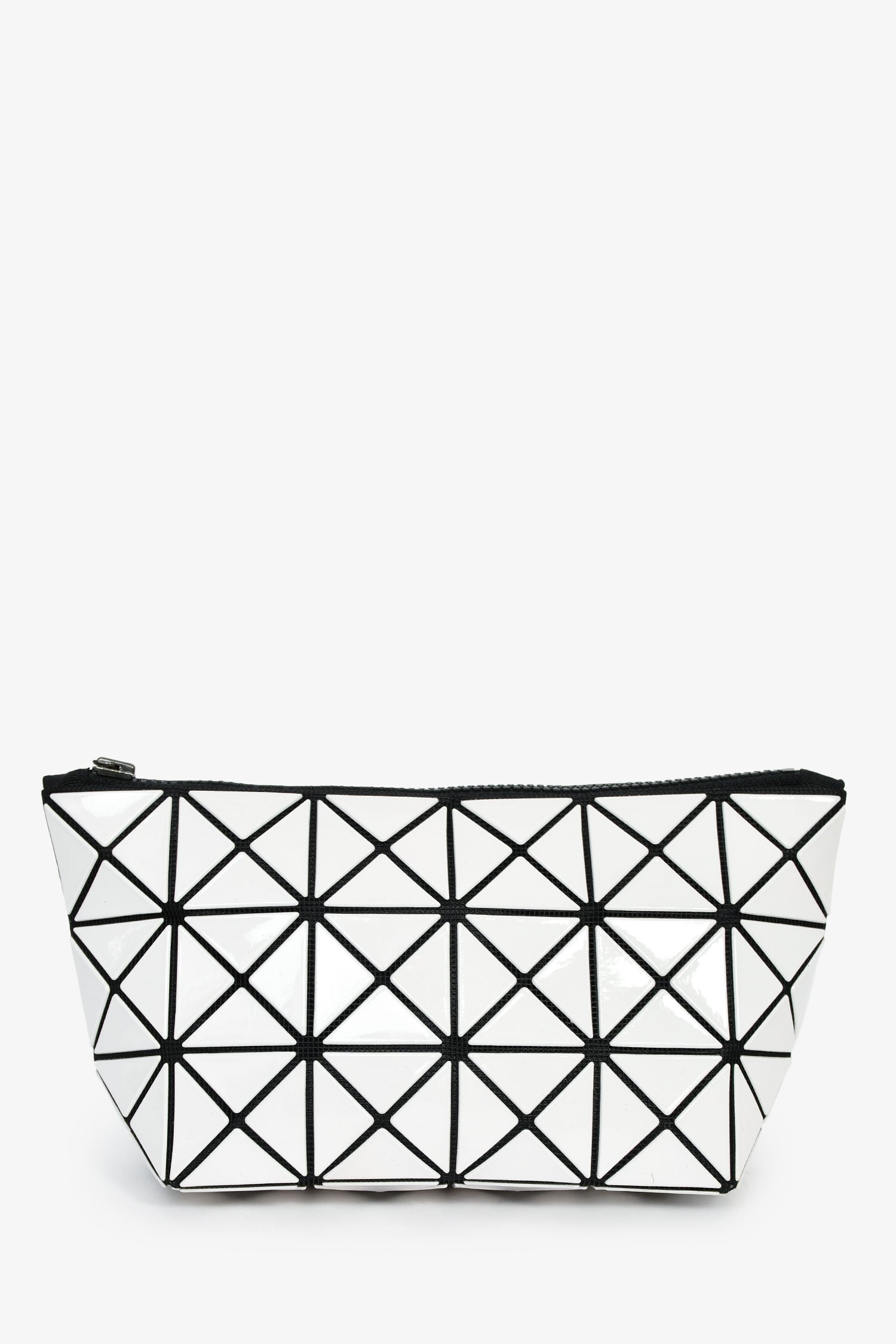 Bao Bao Issey Miyake White Geometric Pouch. Zipped top. Lined interior. Silver-tone hardware. Tonal stitching.