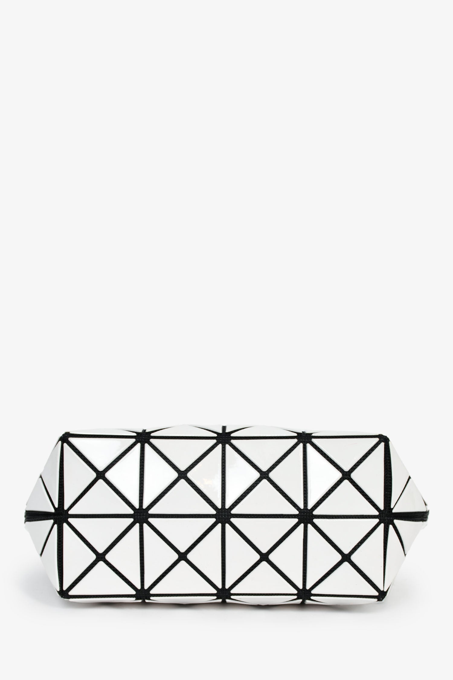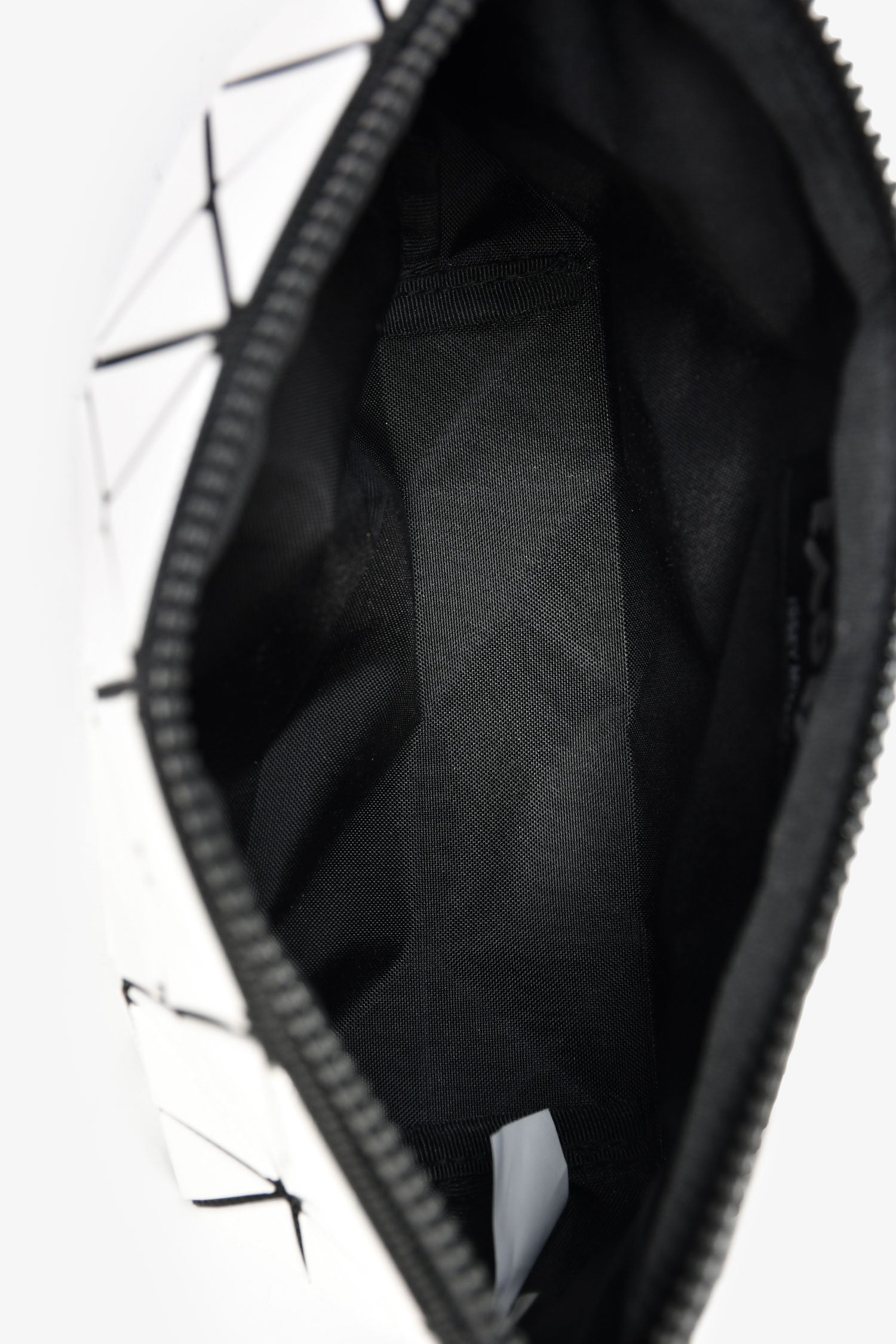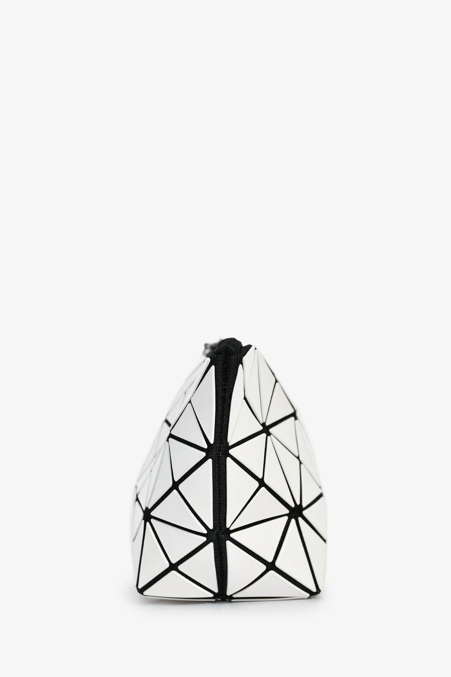 Bao Bao Issey Miyake White Geometric Pouch. Zipped top. Lined interior. Silver-tone hardware. Tonal stitching.