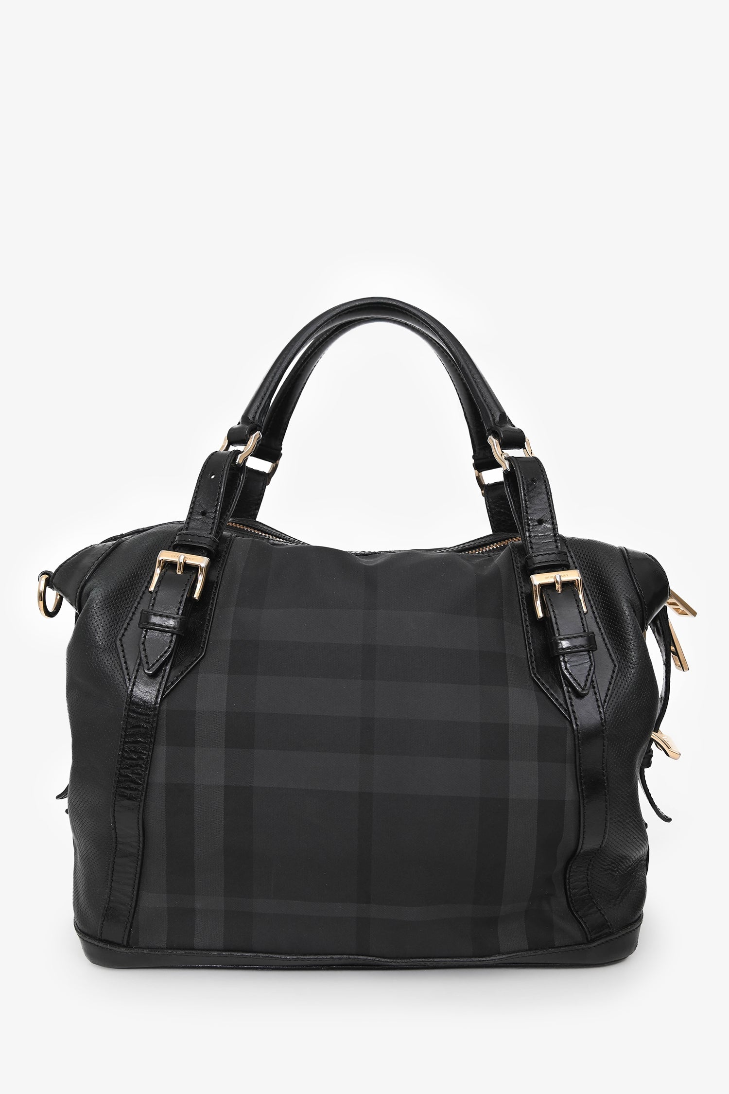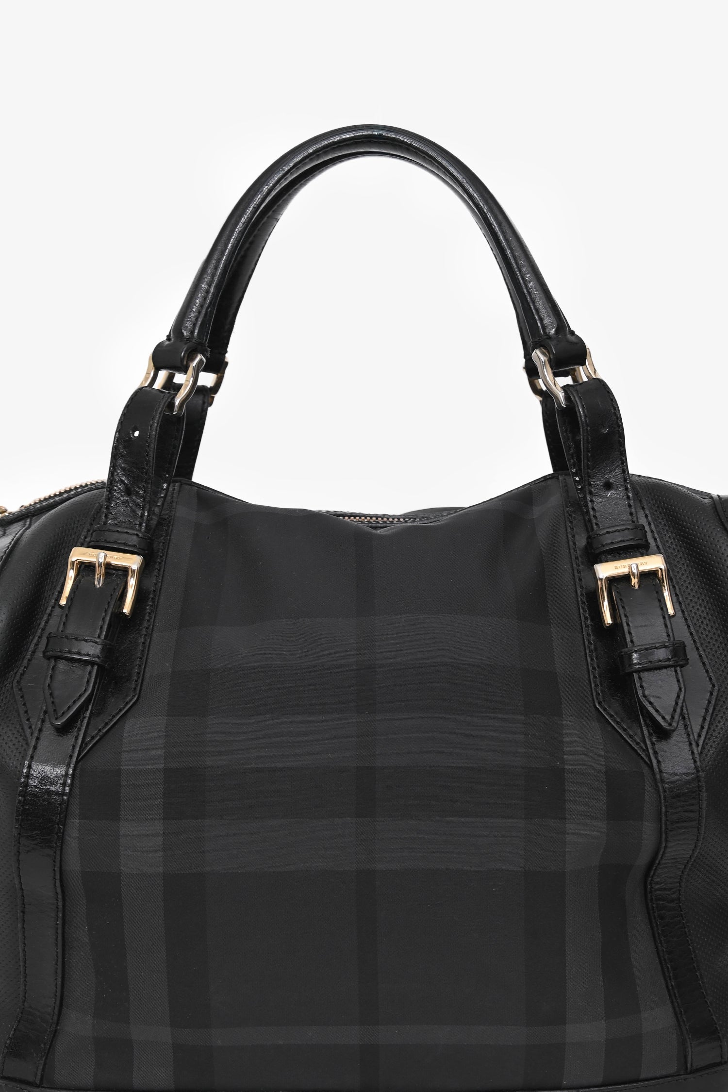 Burberry Black Novacheck Handbag.Top zip closure. Rolled top handles. Lined interior with 1 zip and 2 pockets. Gold-tone hardware. Tonal stitching.