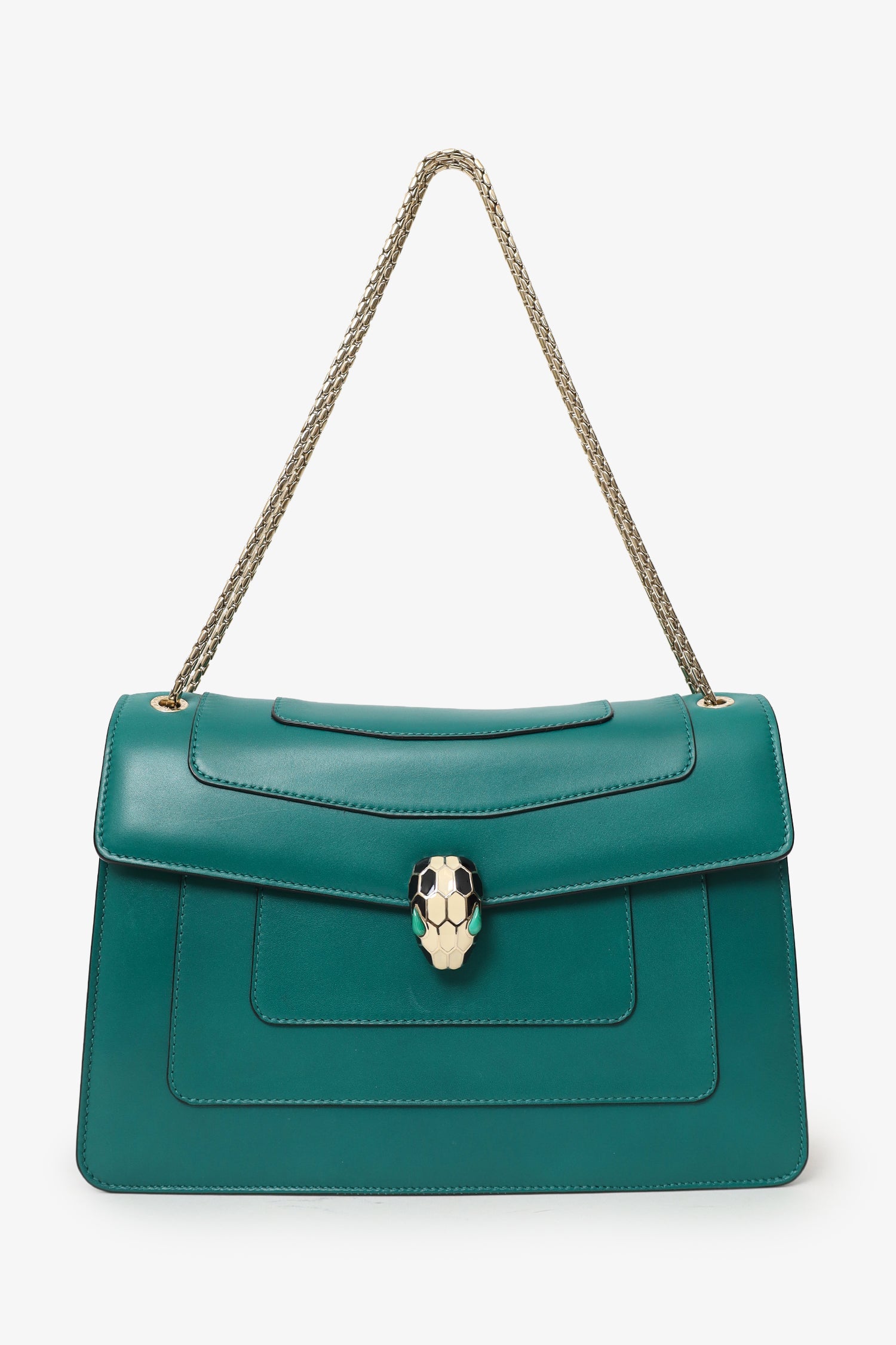 Bvlgari Green Leather Medium Serpenti Forever Shoulder Bag