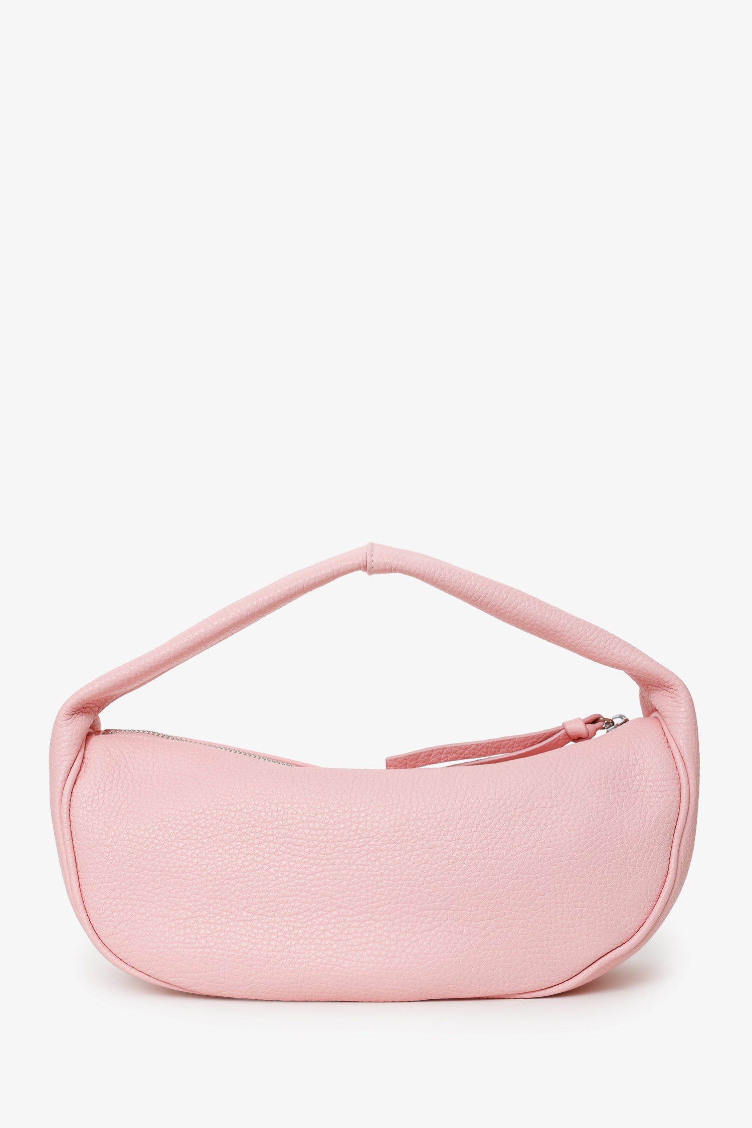 By Far Pink Grained Leather Top Handle Bar. Top zip closure. Single top handle. Lined interior. Open interior. Silver-tone hardware. Tonal stitching.