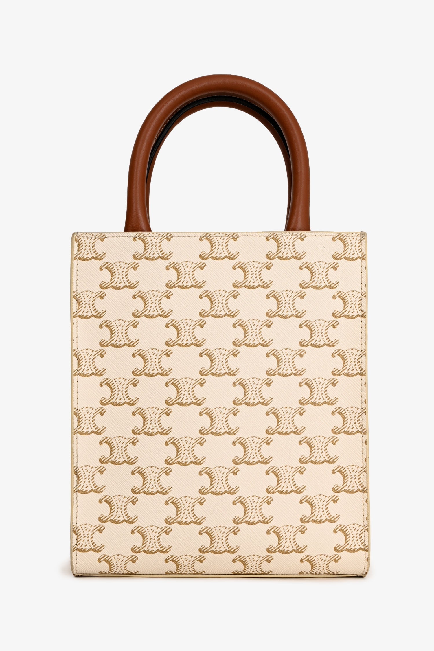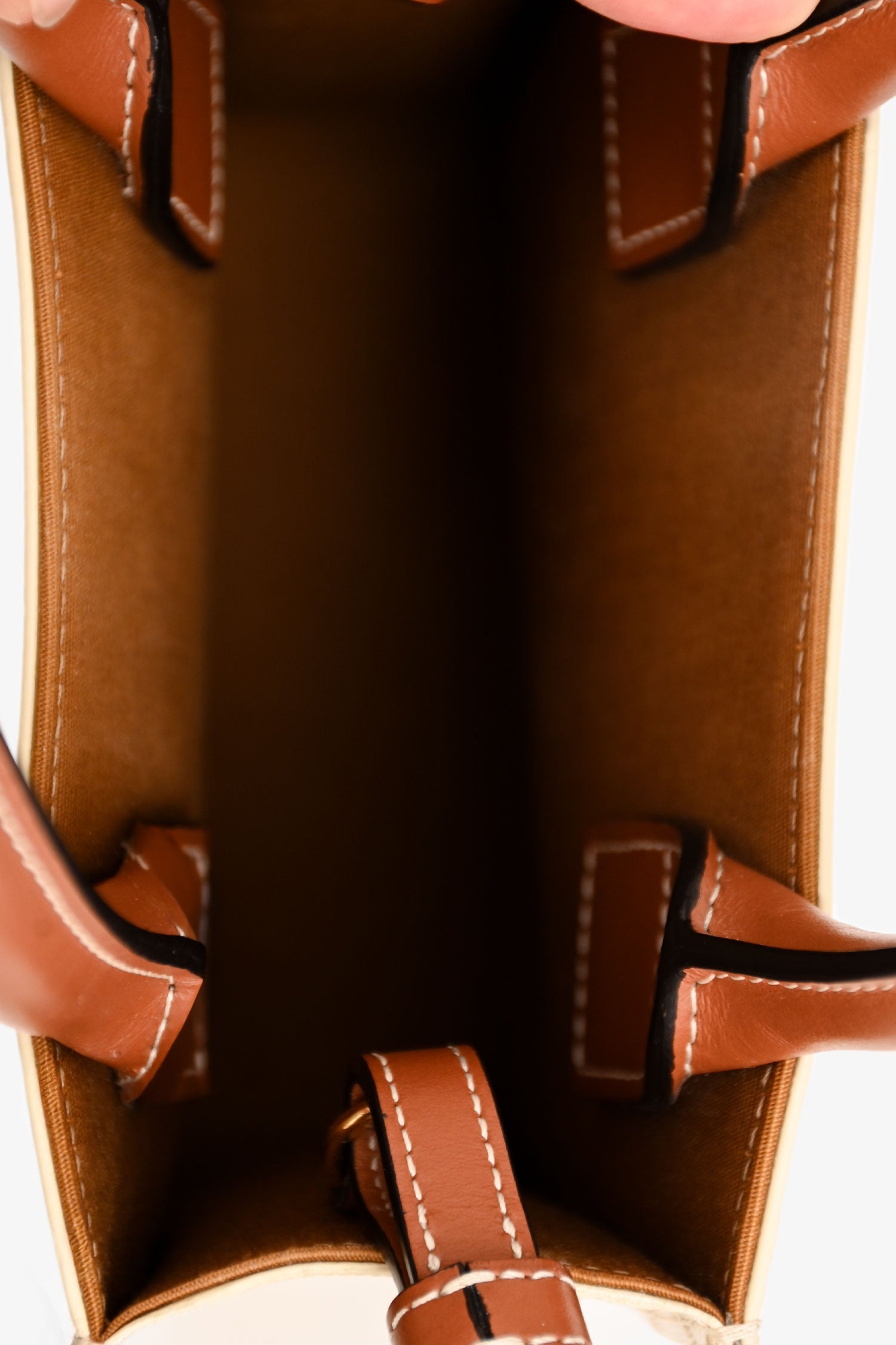 Celine White/Brown Leather/Canvas Mini Triomphe Cabas Vertical Tote with Strap
