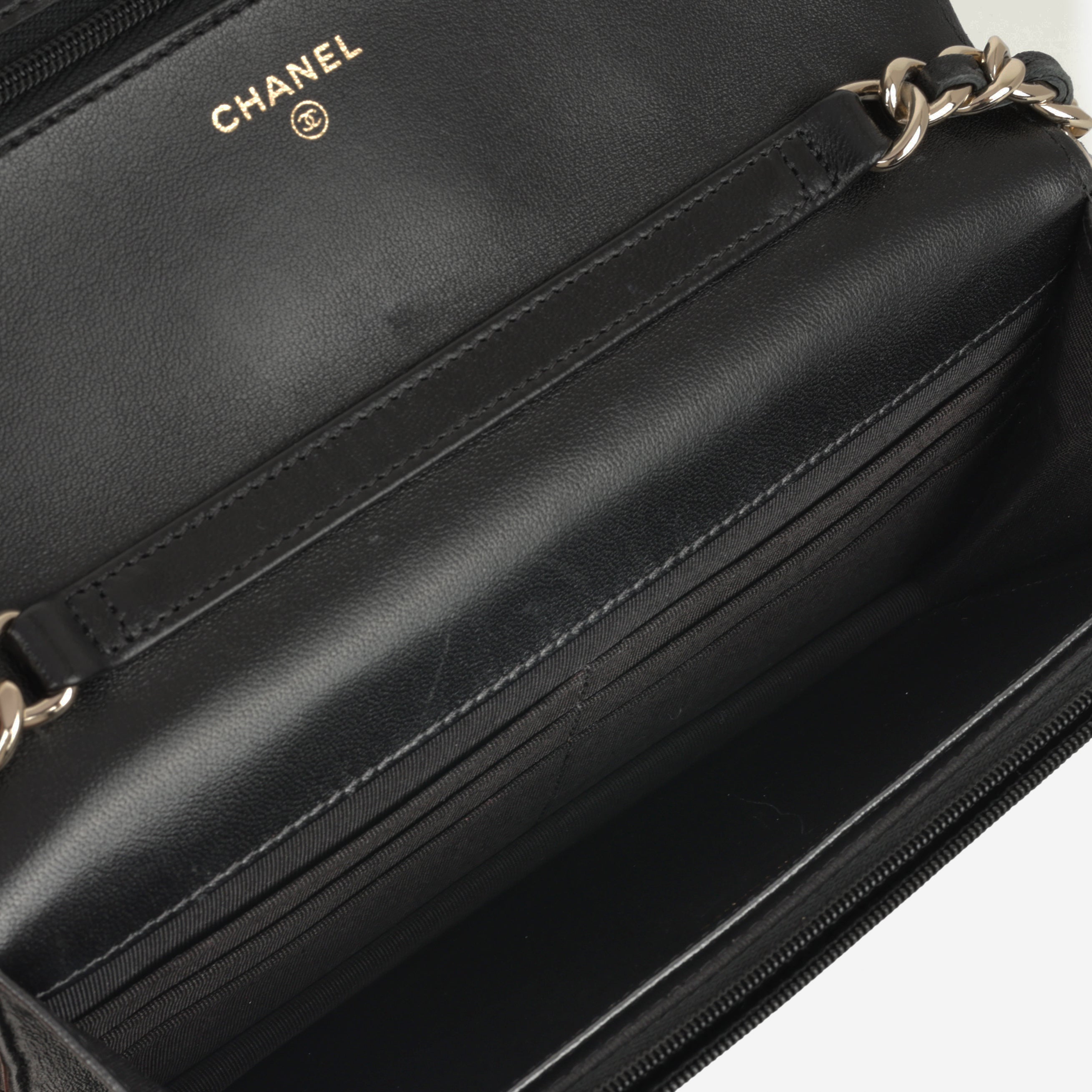 Chanel 21c Chanel Seasonal Wallet On Chain - Black Lambskin | Champagne Gold Hardware