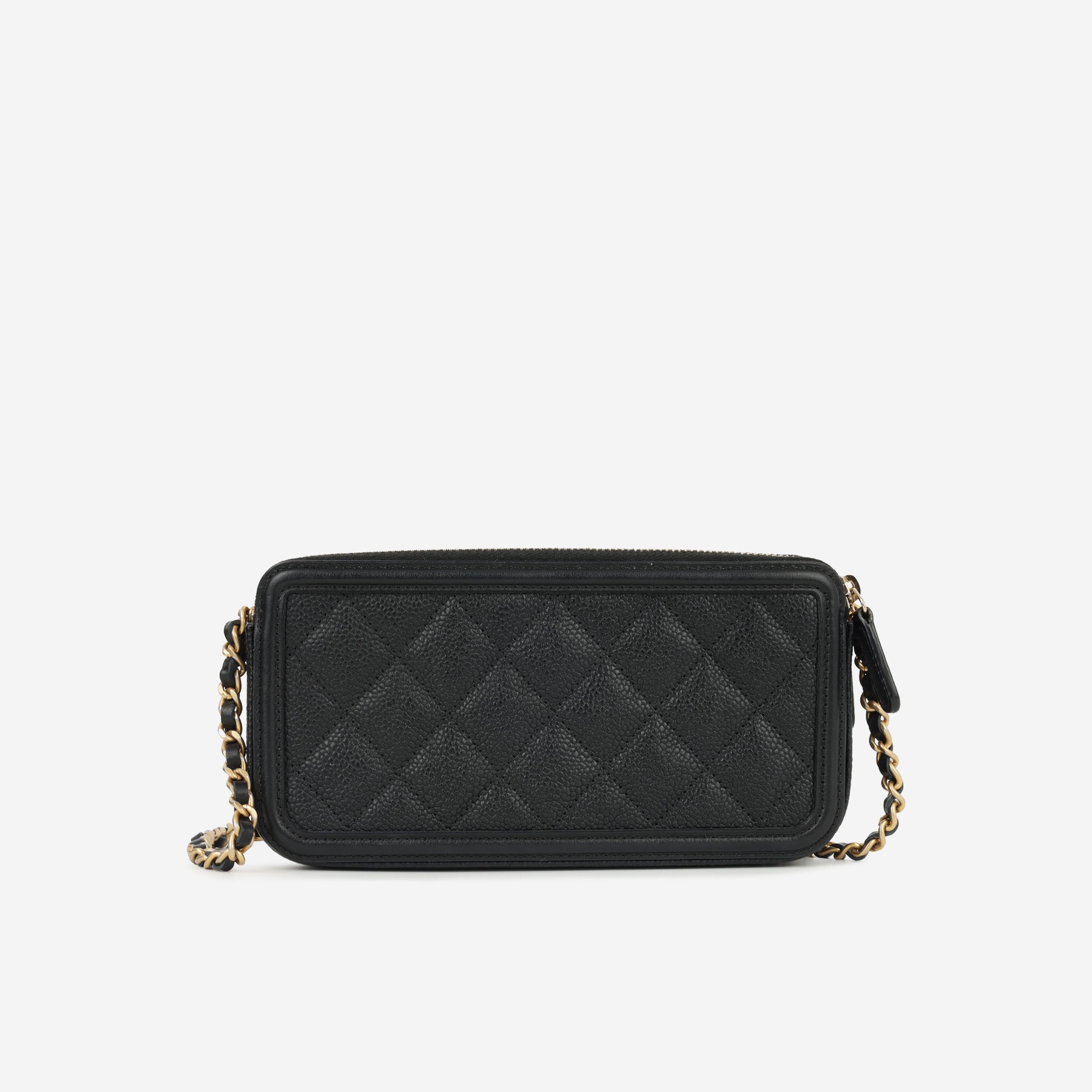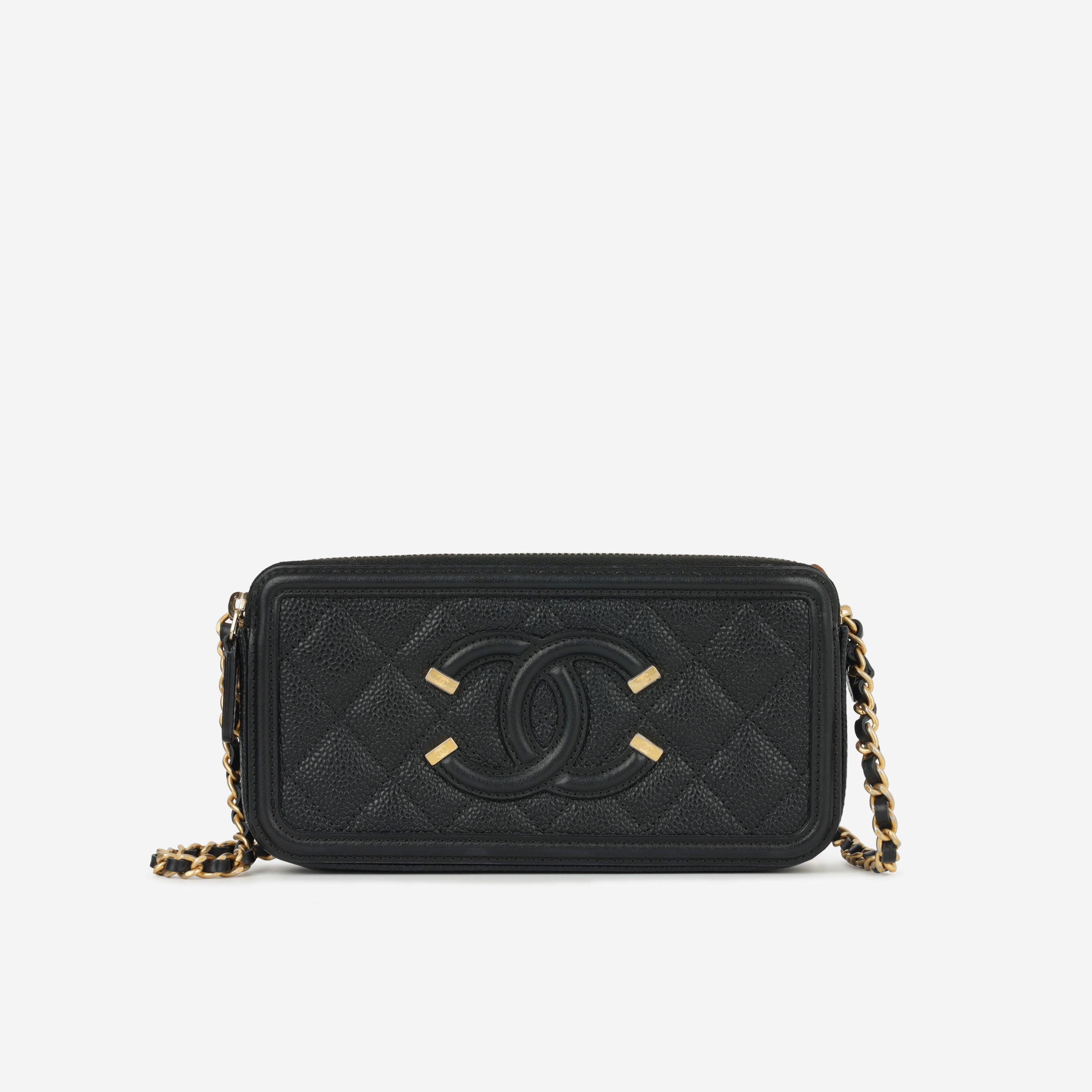 Chanel CC Filigree Clutch on Chain - Black Caviar | Gold Hardware