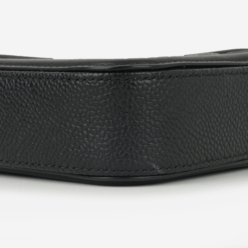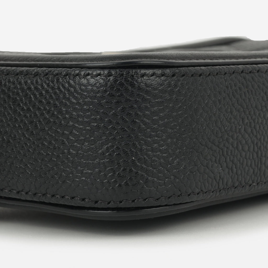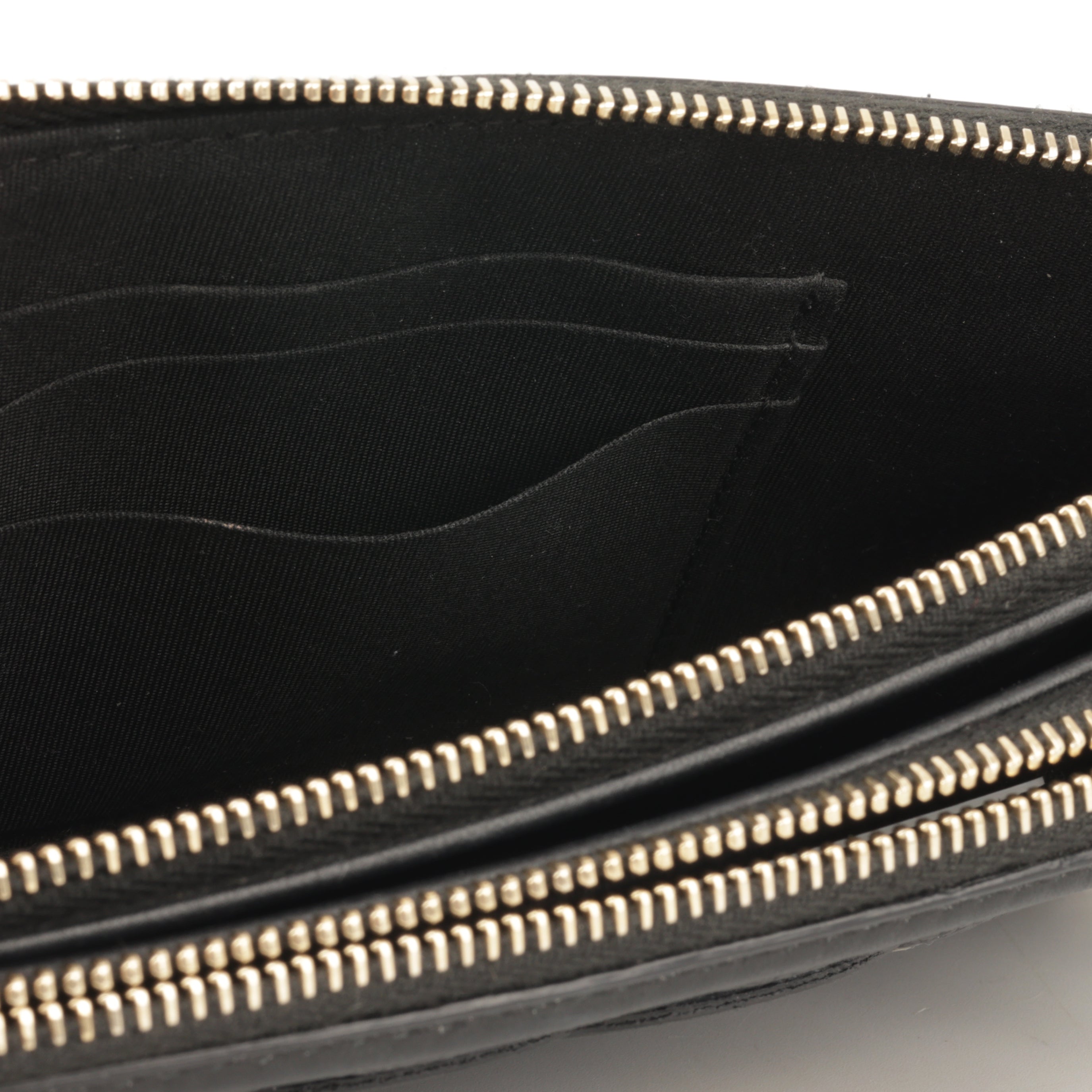 The standout feature of this piece is the bold, embossed interlocking CC logo, framed by sleek leather filigree detailing and accentuated with four gold corner accents. A subtle yet striking tribute to Chanel's iconic design language.