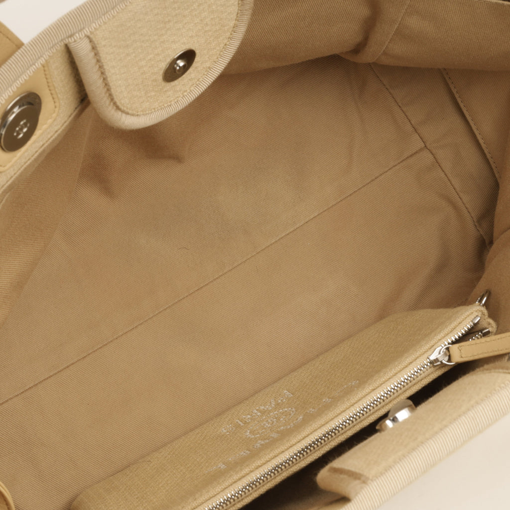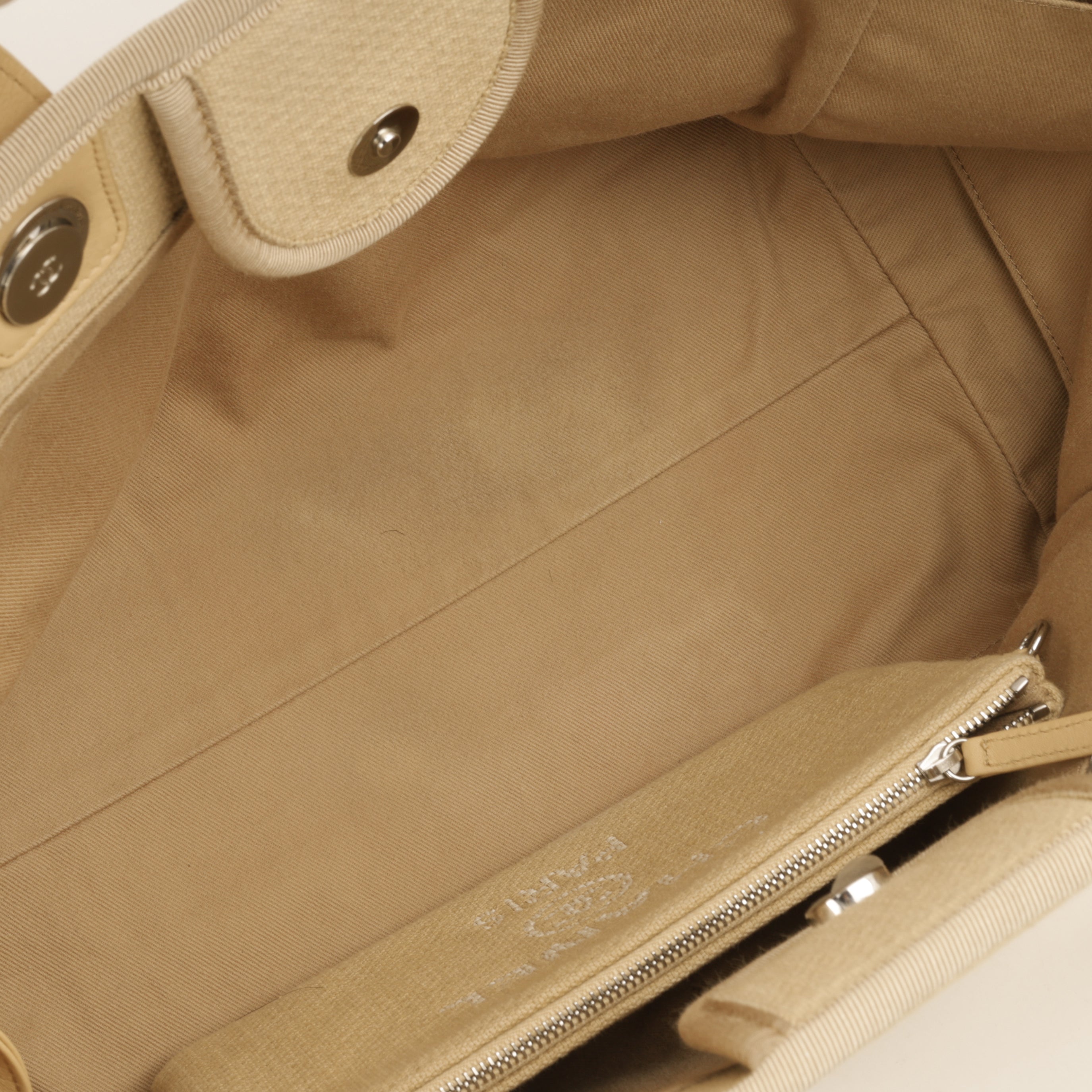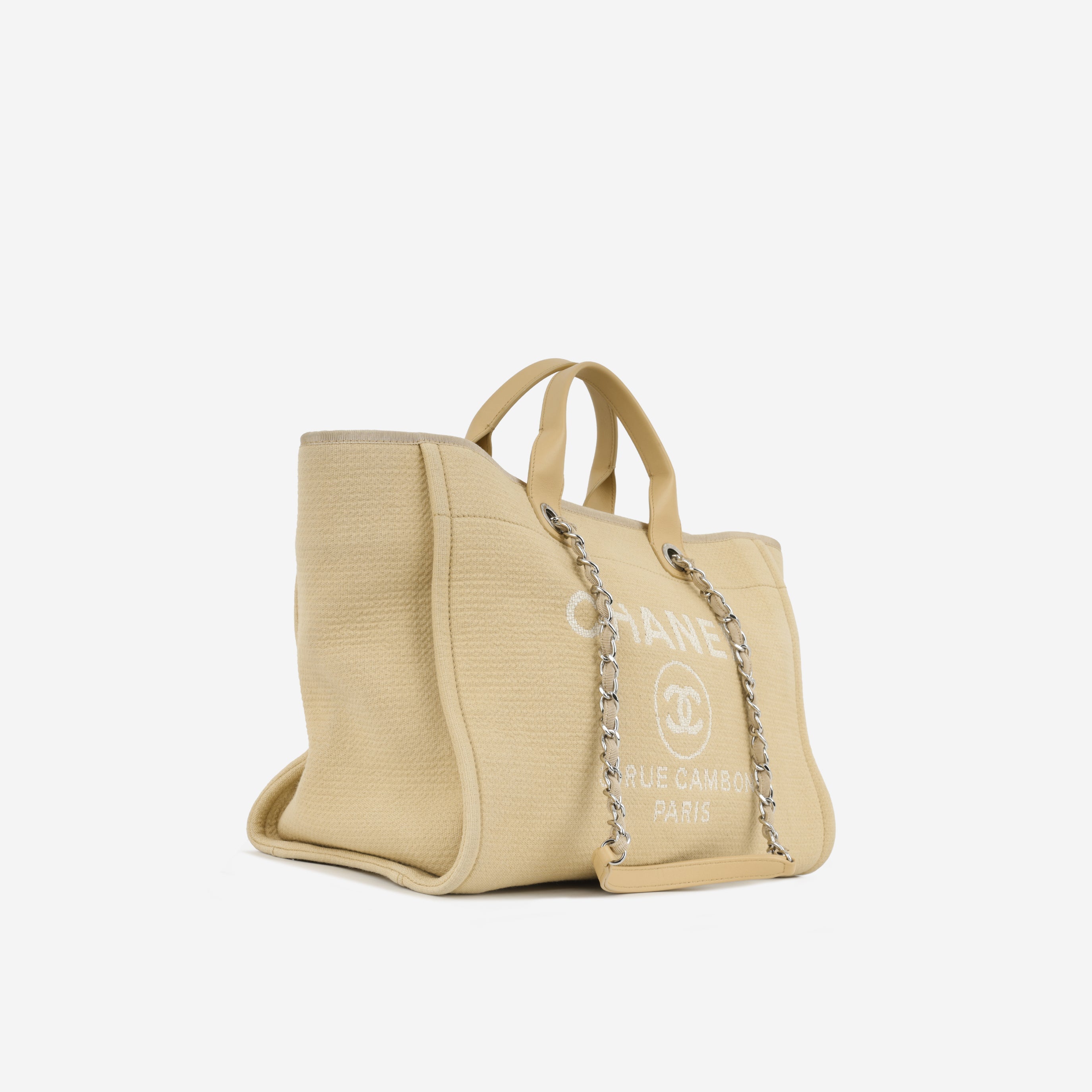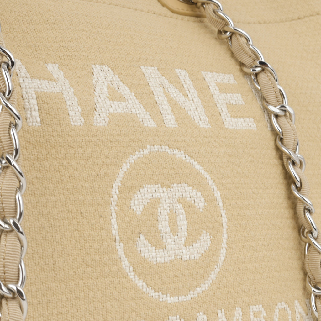 Chanel Large Deauville - Beige Cloth | Silver Hardware