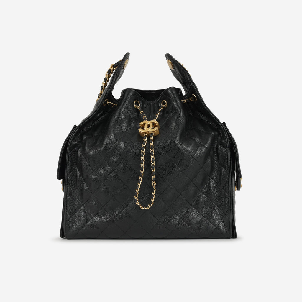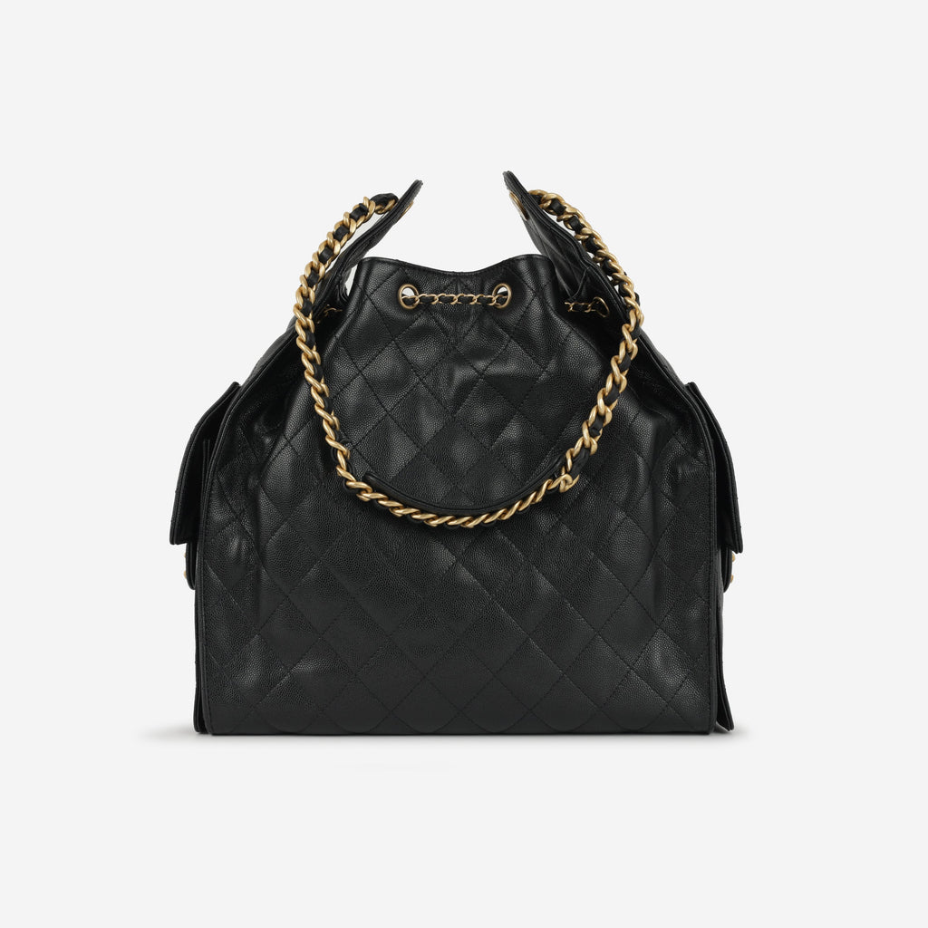 Crafted from durable caviar leather, the design combines a relaxed hobo silhouette with classic Chanel details, including the signature CC logo and elegant gold-tone hardware. Its lightweight build and versatile shape make it ideal for daily wear.