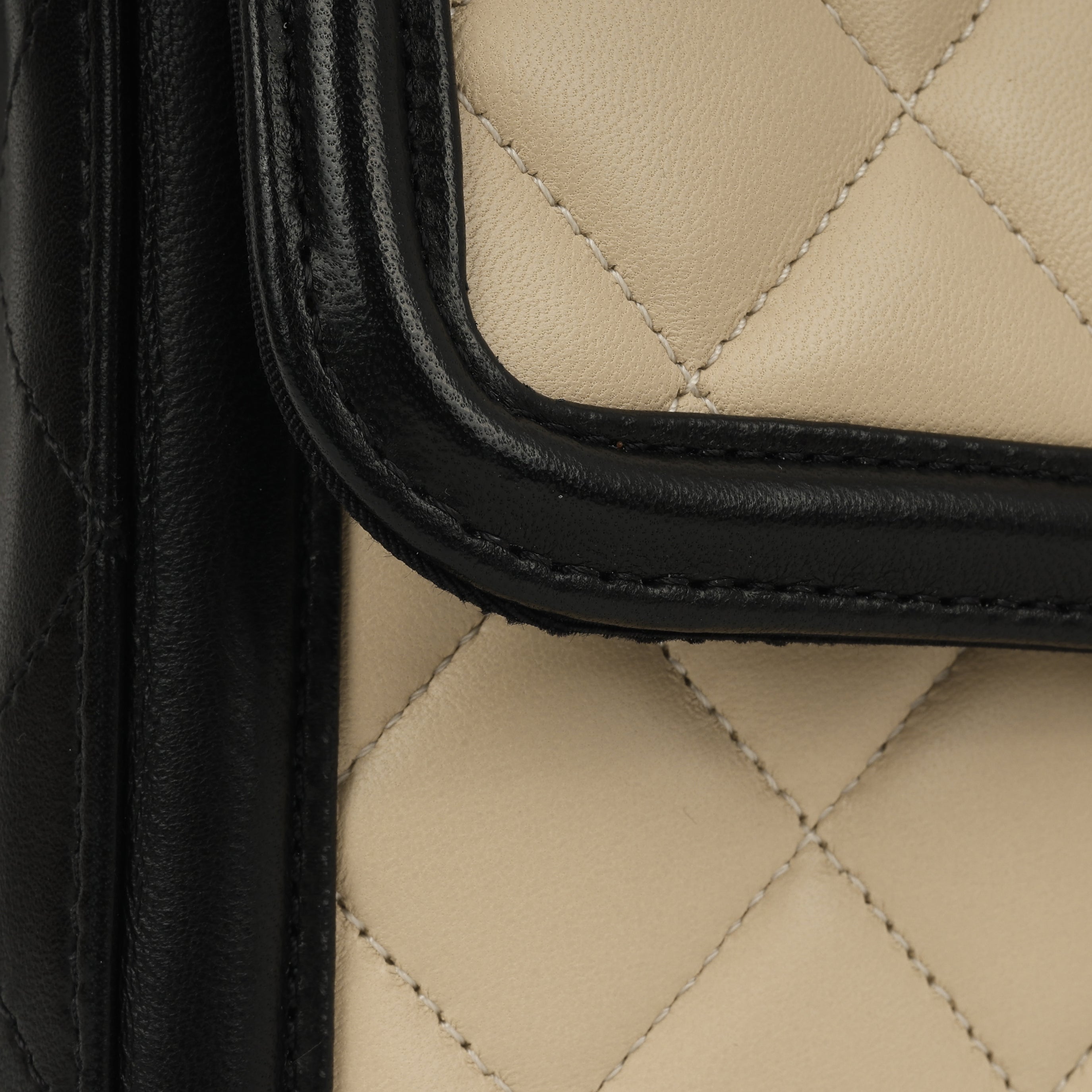 Elevate Your Style with the Chanel Large Elegant CC Bag . Timeless Luxury in Beige & Black. Step into sophistication with the Chanel Elegant CC Bag, crafted from luxurious beige and black lambskin and adorned with iconic gold-tone hardware. This statement piece blends classic elegance with modern allure, perfect for day-to-night transitions. Shop Now and own a piece of timeless Chanel craftsmanship , because elegance is always in fashion.