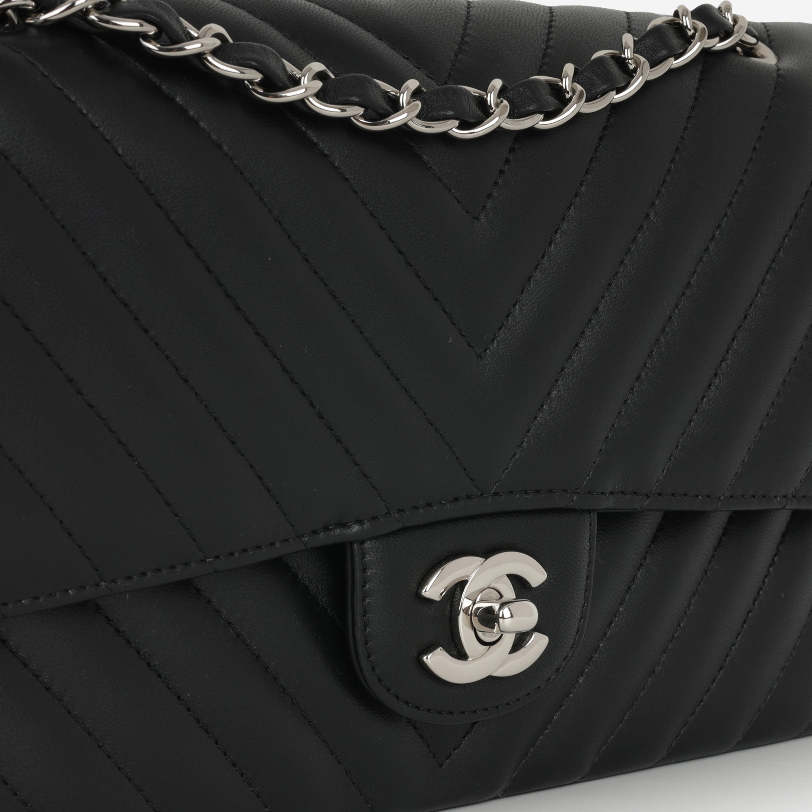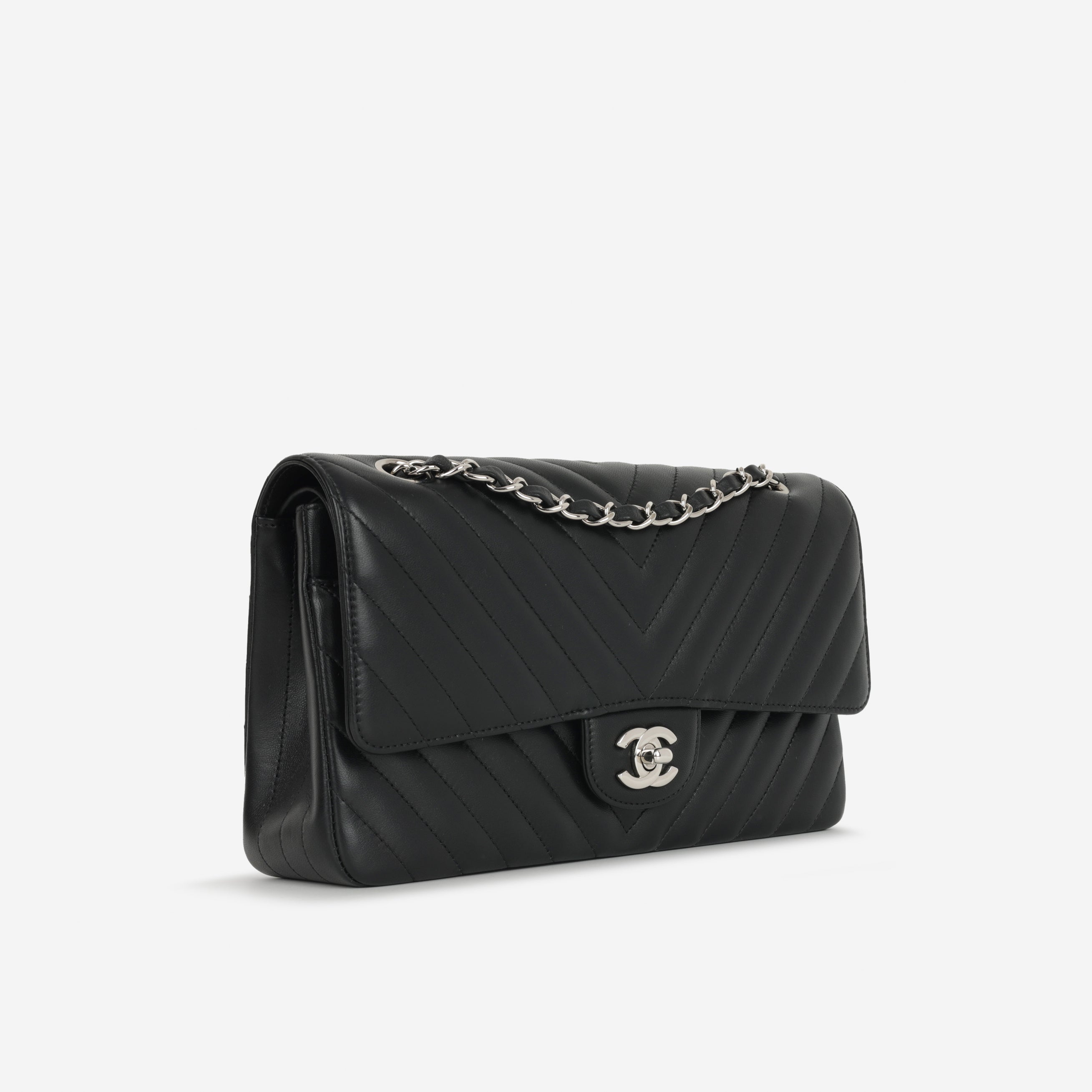 Chanel Medium Classic Flap - Black Chevron Lambskin | Silver Hardware