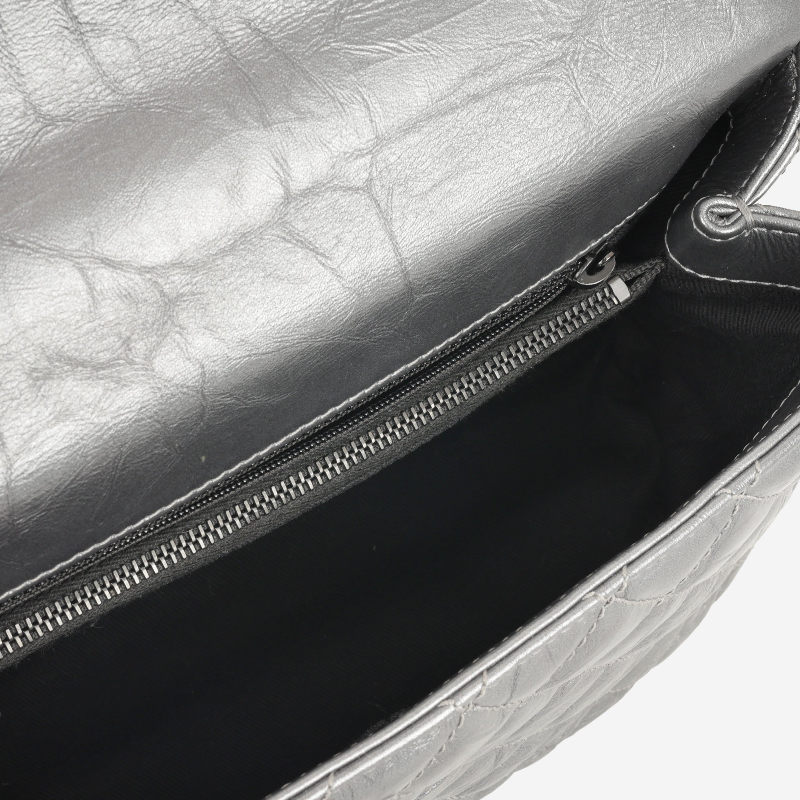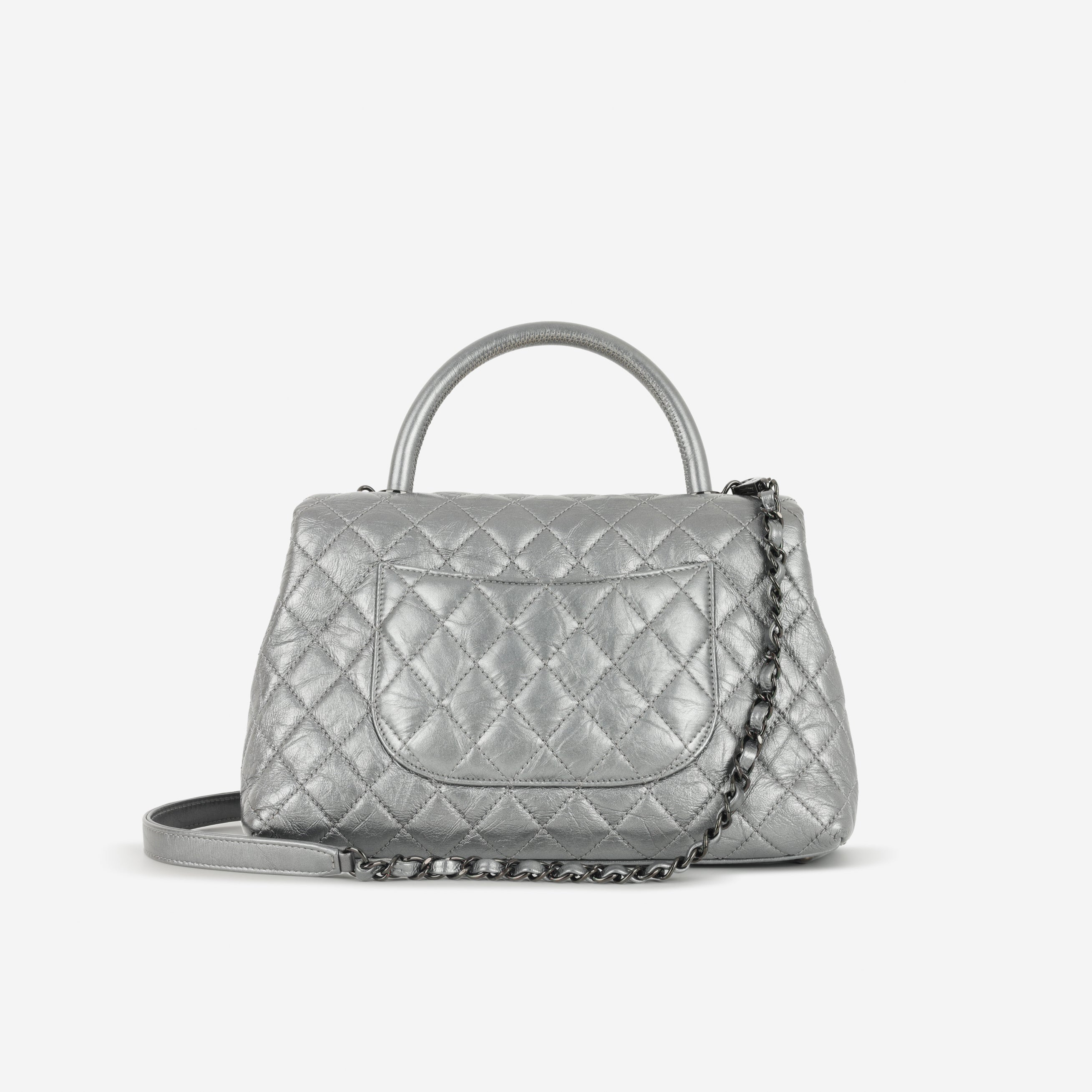 Chanel Medium Coco Handle - Silver Crumpled Calfskin | Black Hardware