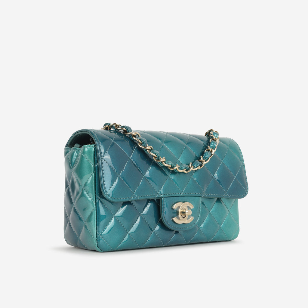 Chanel Mini Flap Rectangular - Blue Ombre Patent | Champagne Gold Hardware (NWT)