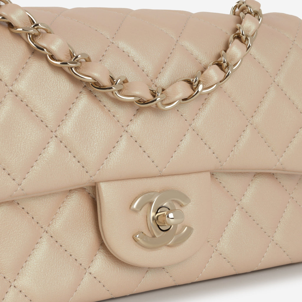 Chanel Mini Rectangular - Pearlescent Beige Lambskin | Champagne Gold Hardware
