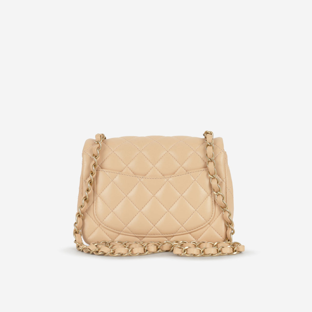Elevate your accessory collection with the Chanel Mini Square in Beige Lambskin with Gold Hardware - a chic and compact bag that blends timeless elegance with modern versatility. Crafted from luxurious lambskin leather, this mini bag offers a soft, supple texture and a sophisticated quilted finish that exemplifies Chanel’s signature craftsmanship.