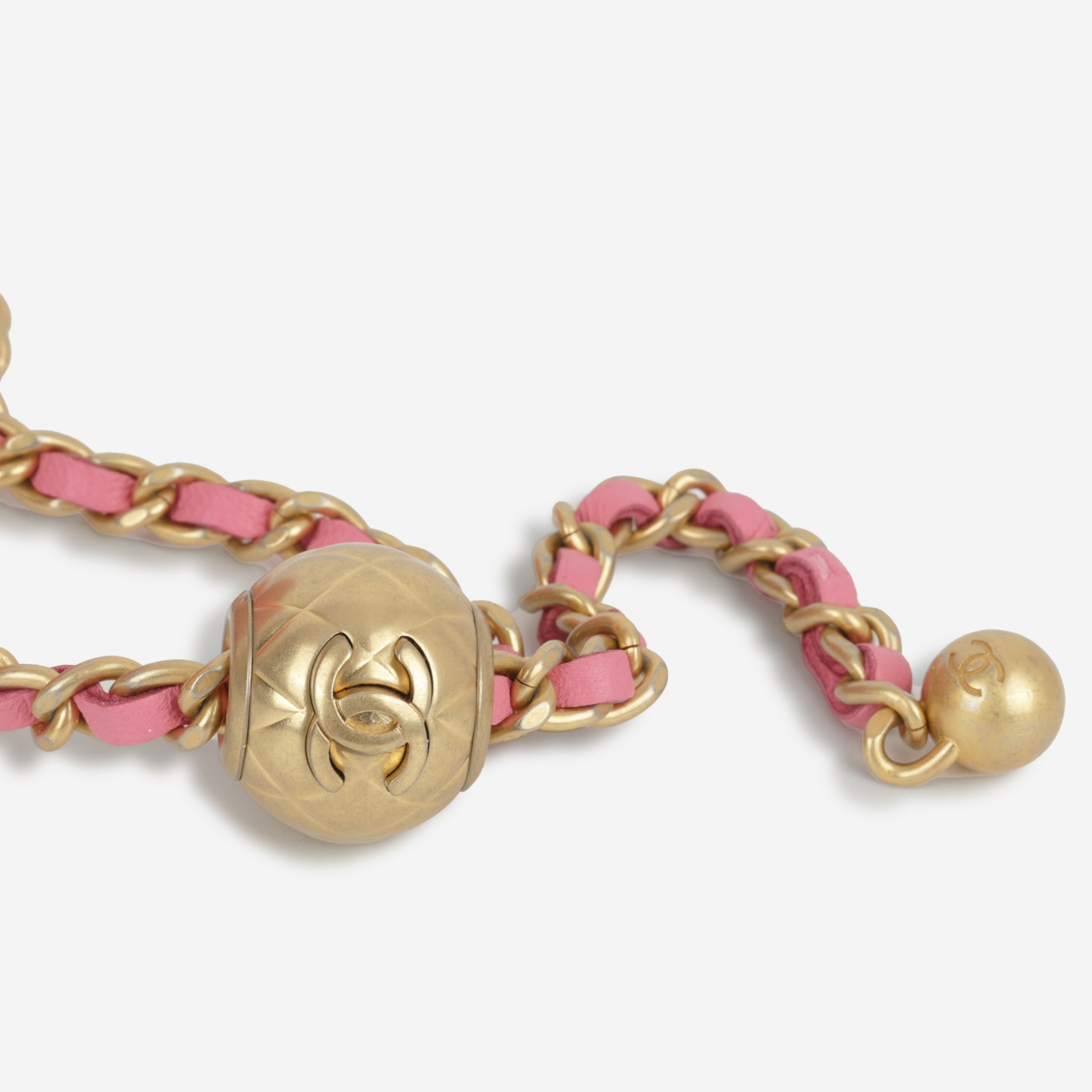 This Chanel Mini Vanity Pearl Crush in Pink Lambskin with Gold Hardware is a sought-after design from 2019, featuring Chanel’s signature adjustable pearl ball strap. Crafted in soft lambskin, this mini vanity offers a refined silhouette with practical functionality and iconic Chanel detailing.