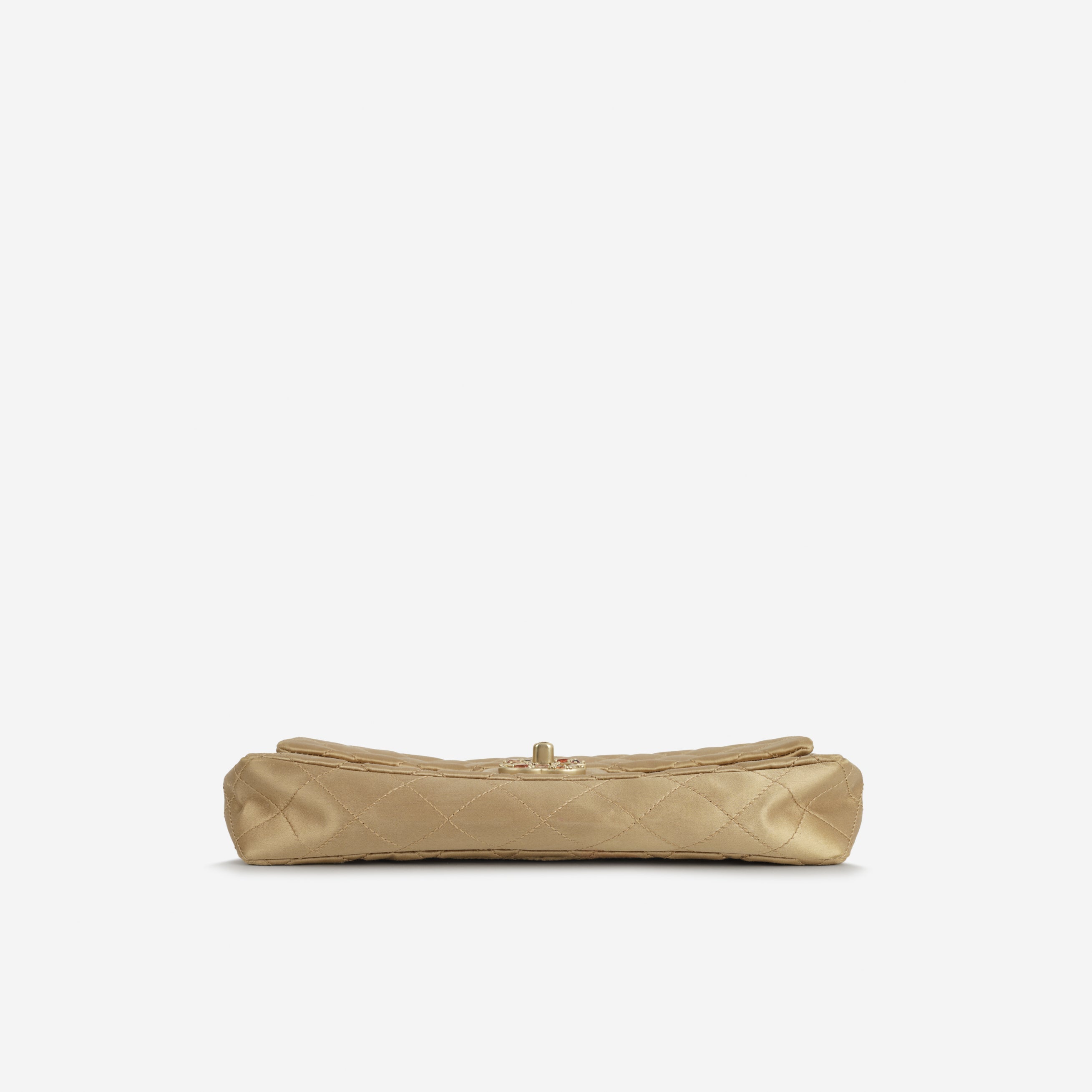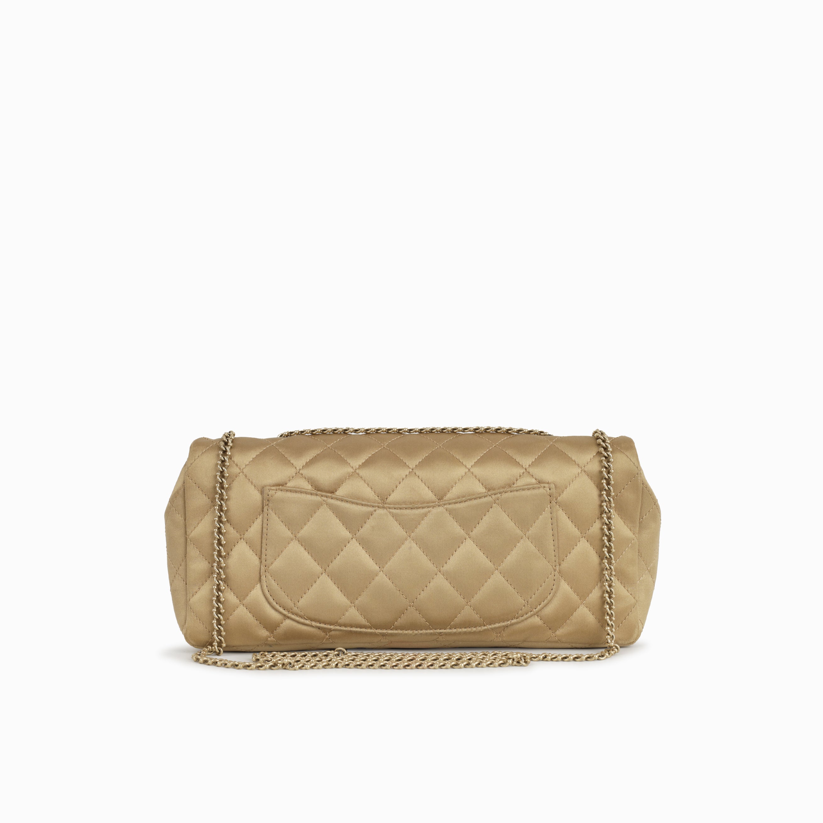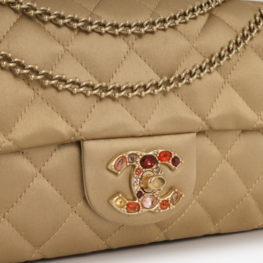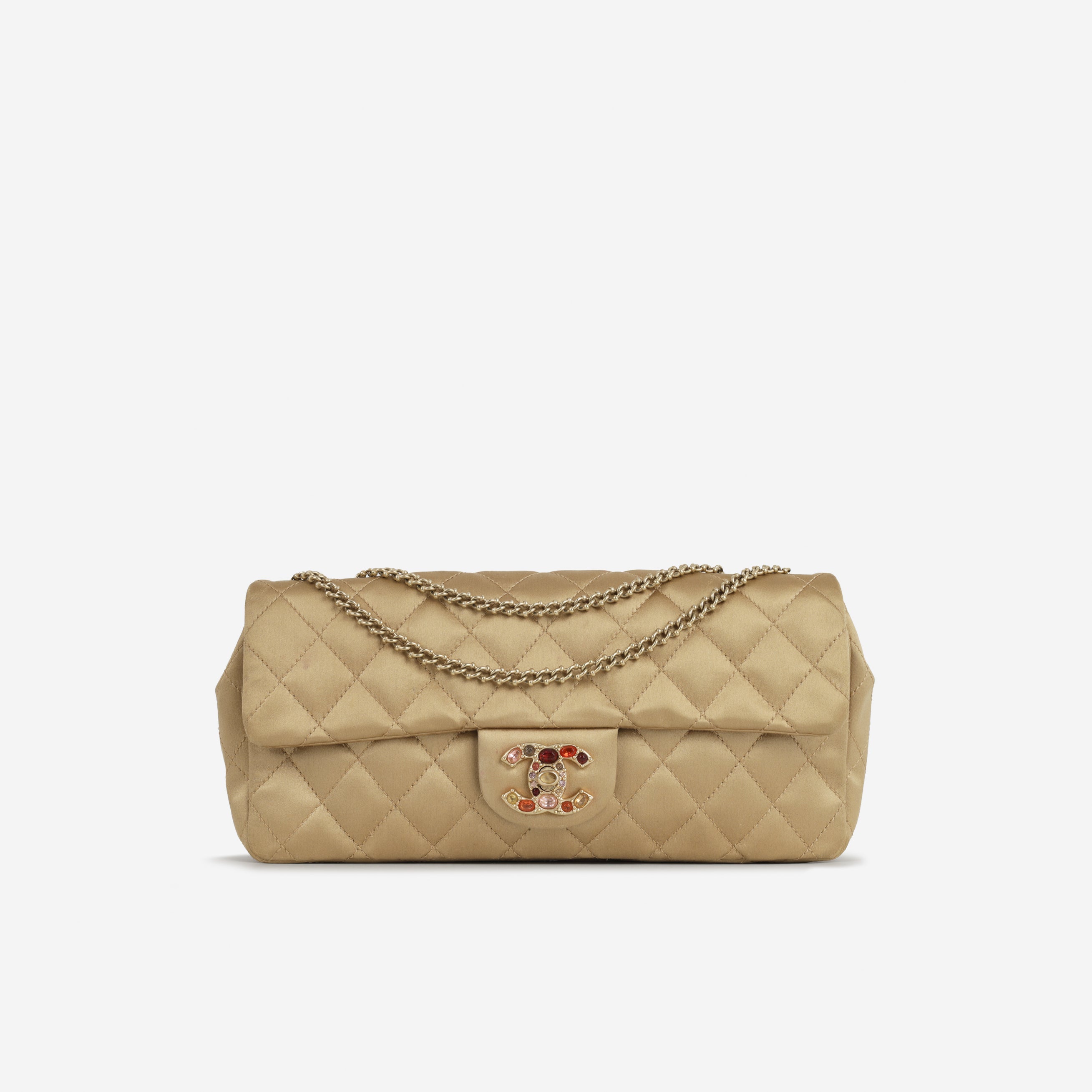 Chanel Pearl East West Flap Bag - Beige Satin | Jewelled CC