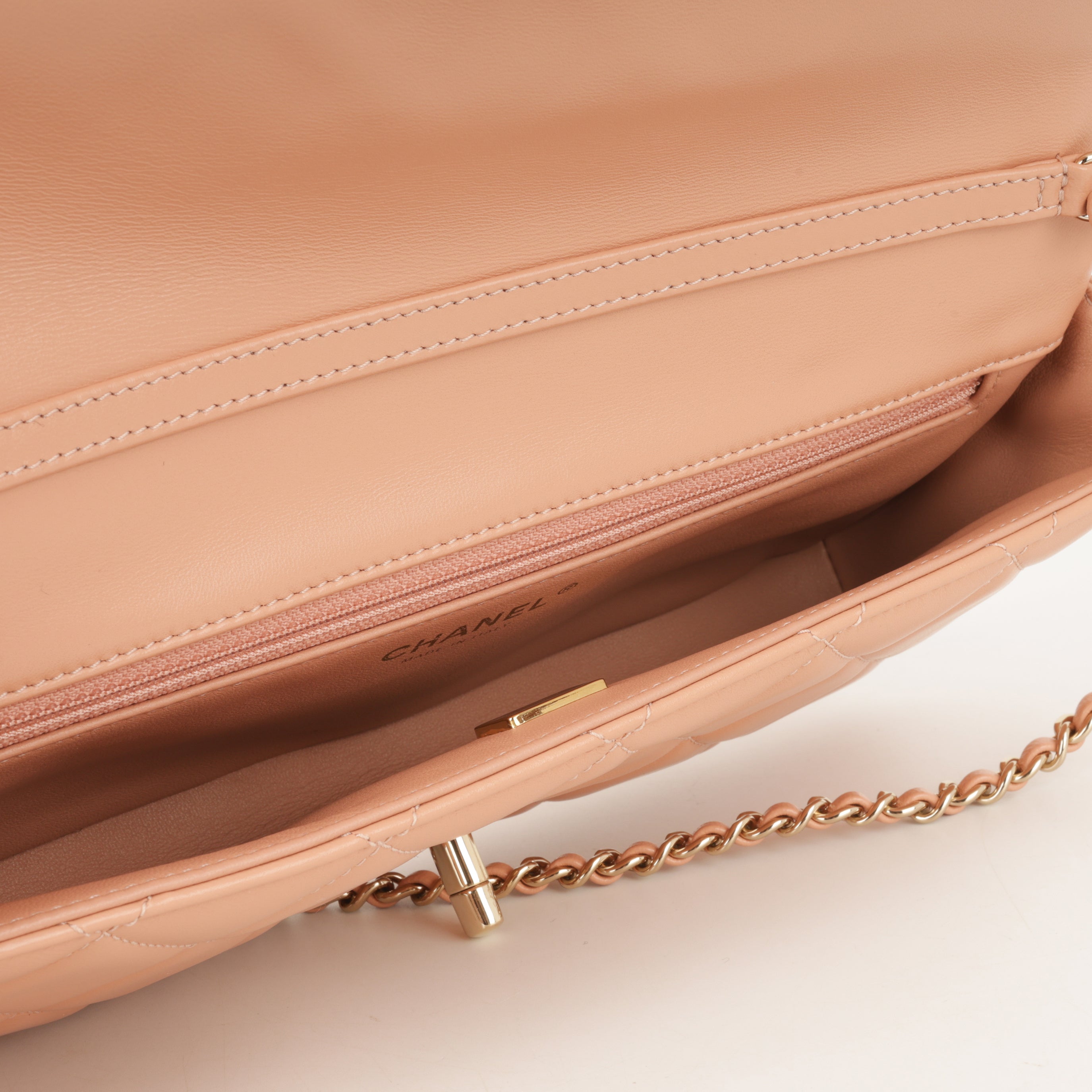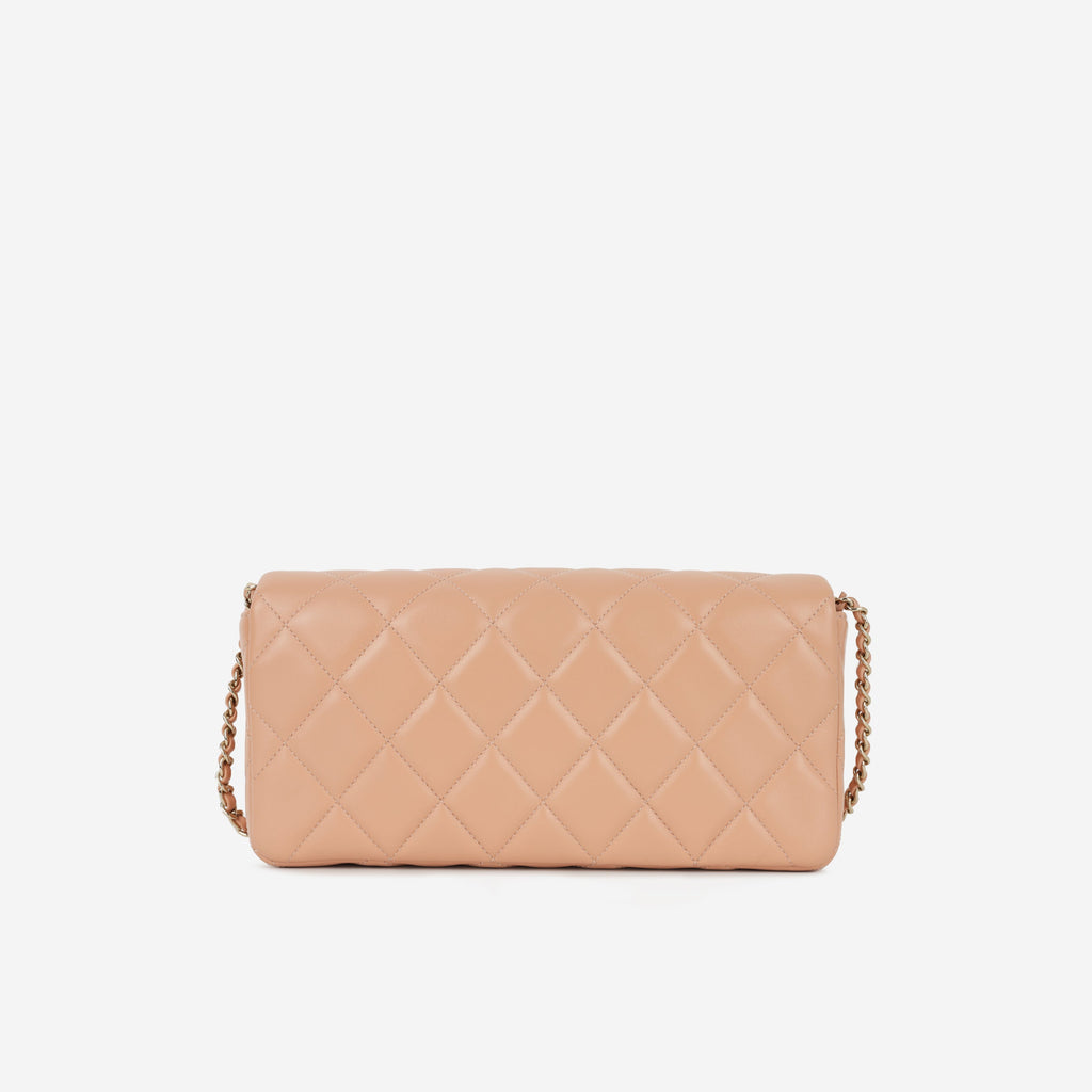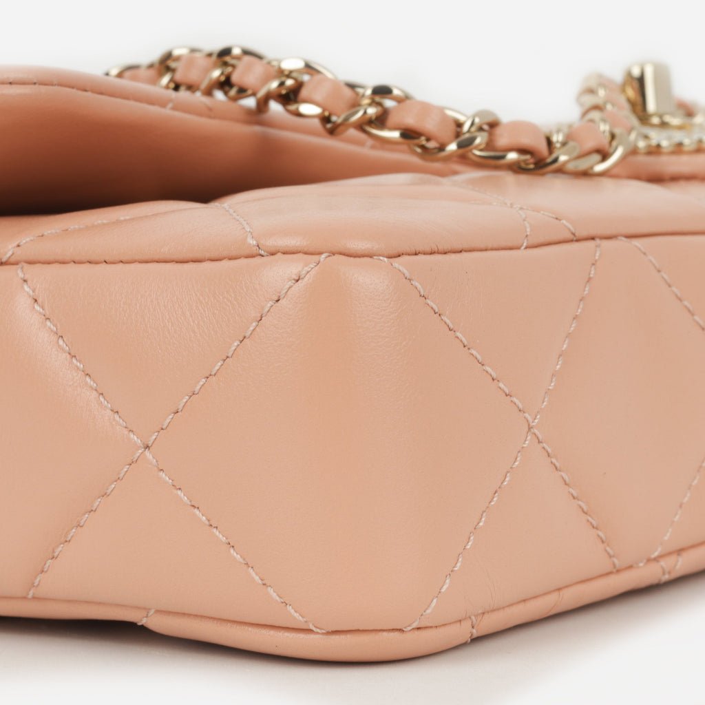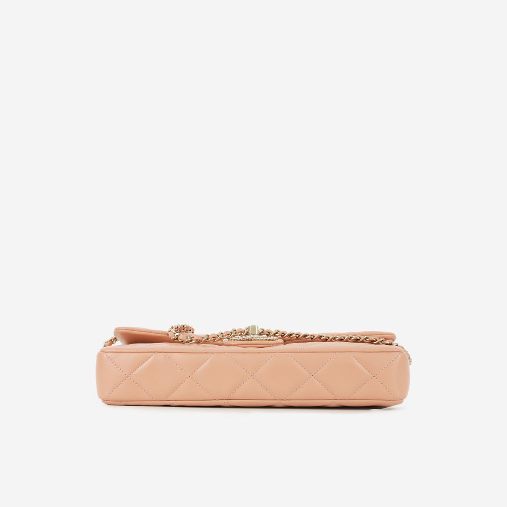 Chanel Pearl East West Flap Bag - Peach Lambskin | Champagne Gold Hardware