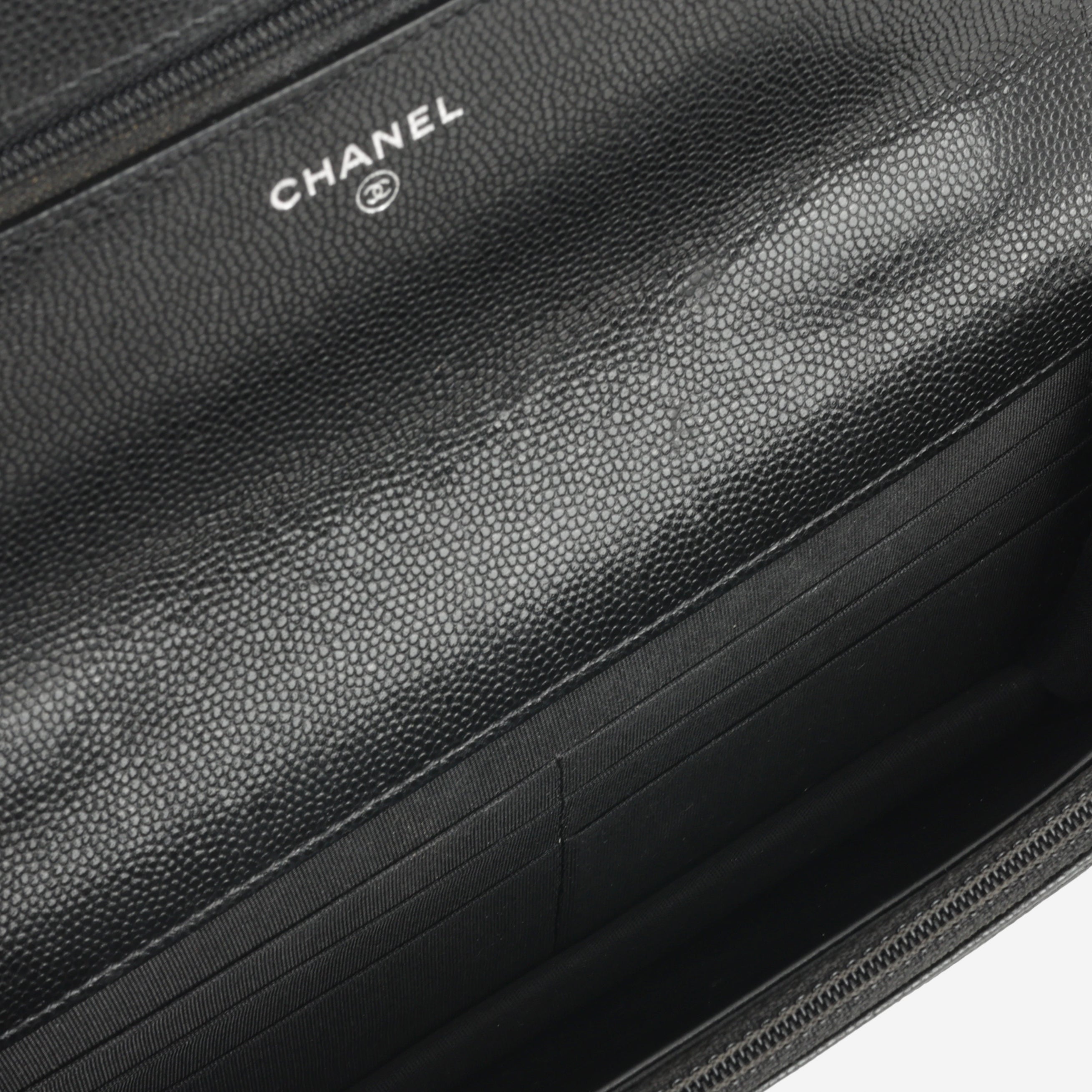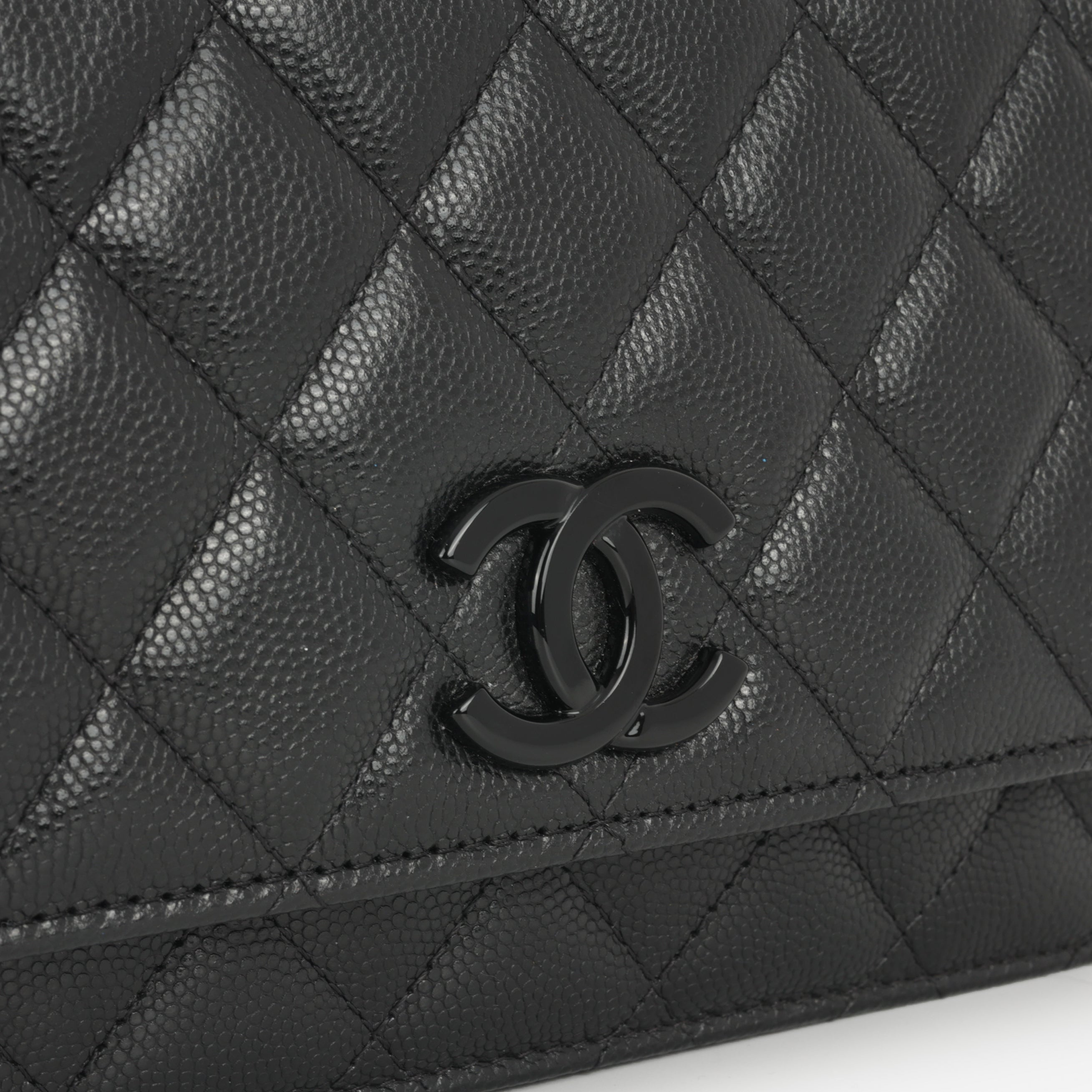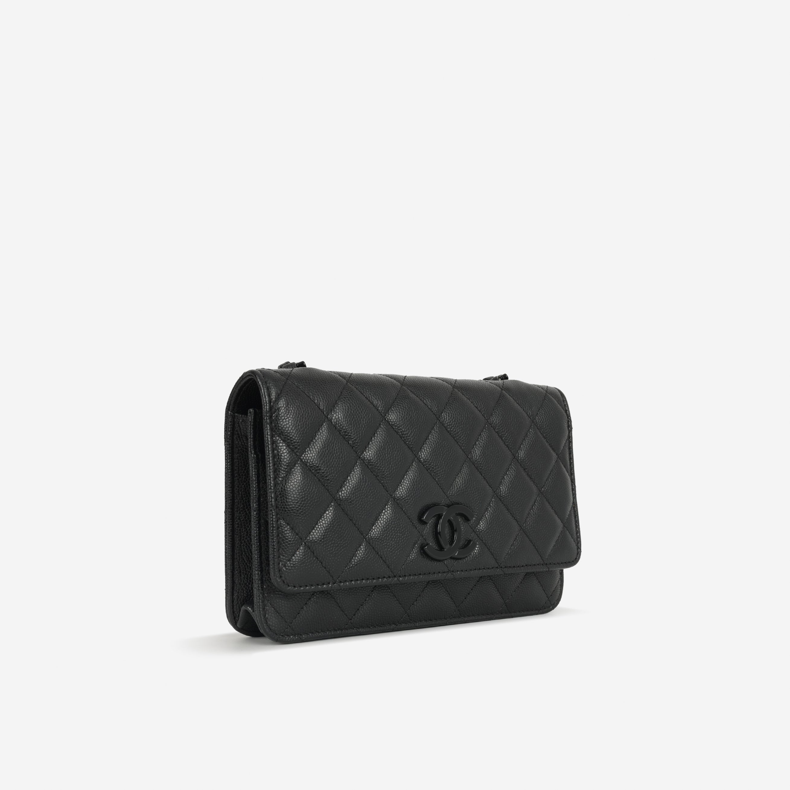 Refined and modern, the Chanel Seasonal Wallet on Chain So Black is a sleek interpretation of Chanel’s iconic WOC design. Crafted in luxurious black caviar leather with signature So Black hardware - including the CC logo, chain, and metal details finished in black, this piece exudes understated elegance and contemporary edge.