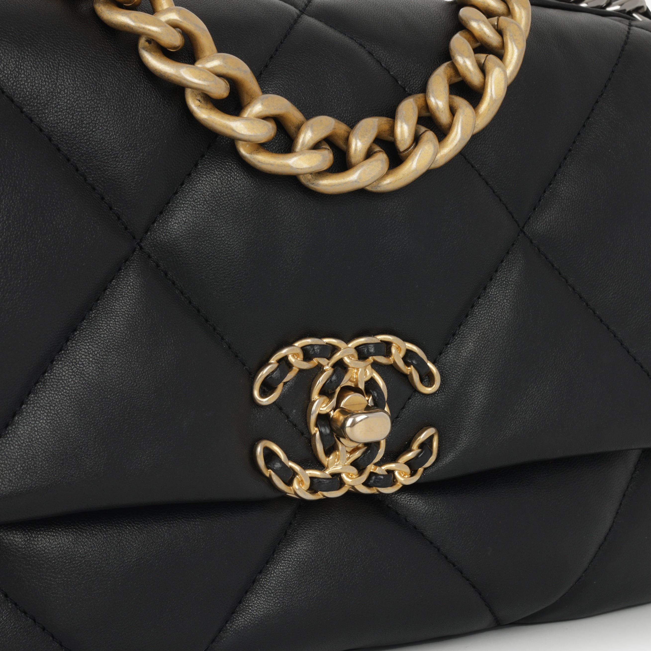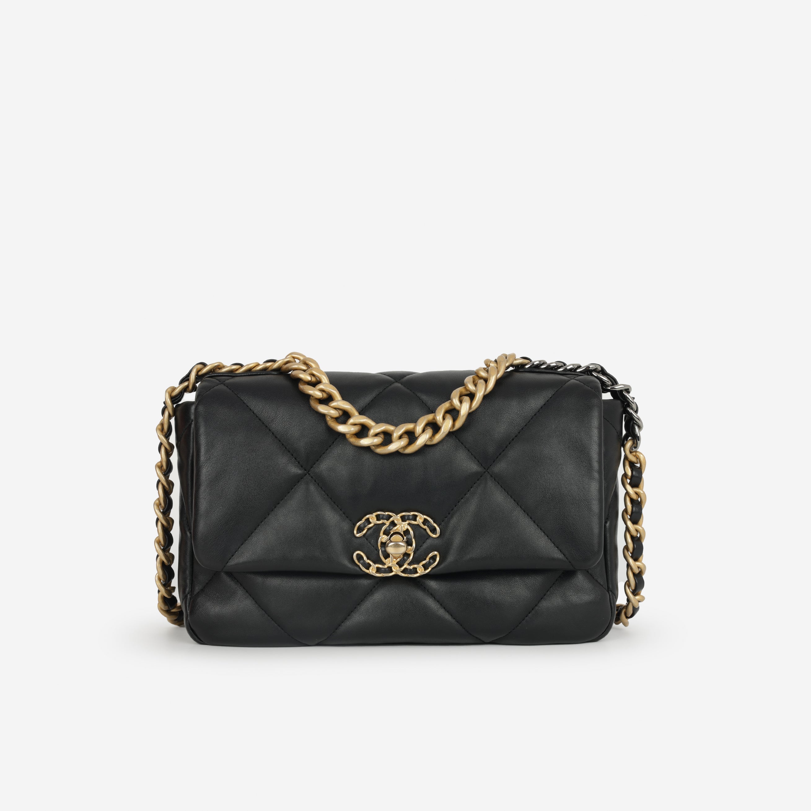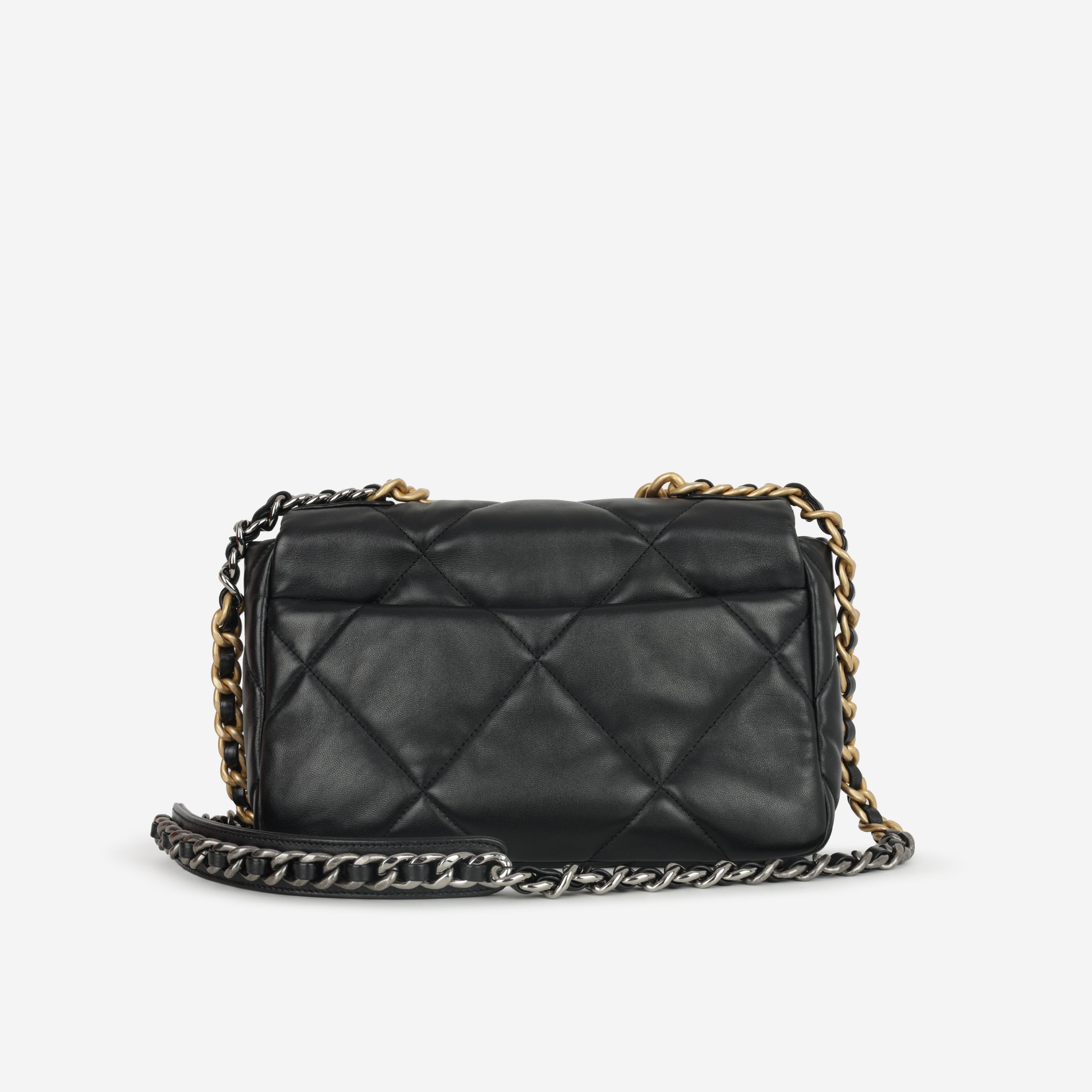 Chanel Small 19 Flap Bag - Black Lambskin | Gold & Silver Hardware