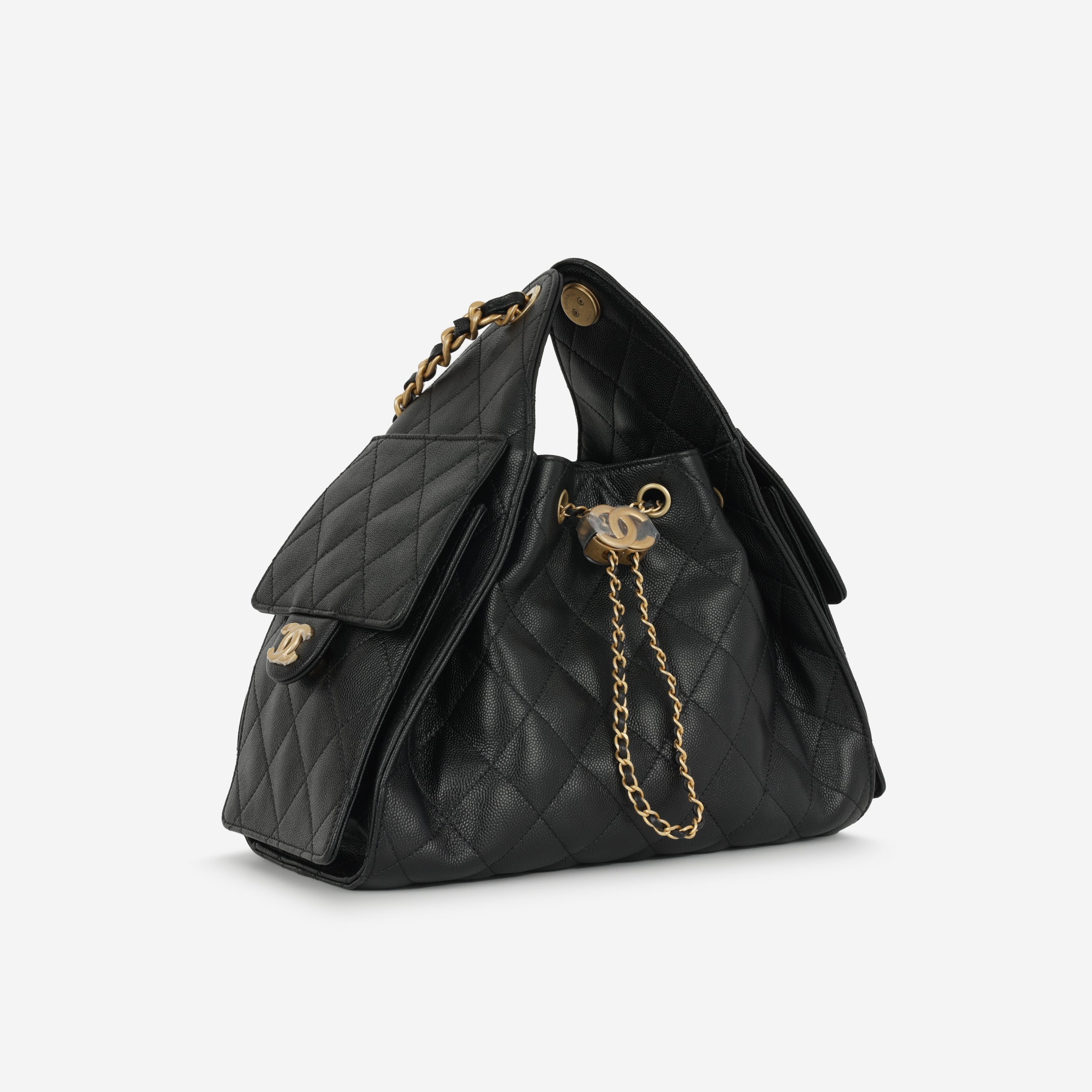 Crafted from Chanel’s durable caviar leather, the bag offers a modern hobo silhouette combined with classic details, including gold-tone hardware and the signature CC logo. Lightweight, versatile, and wearable for everyday use, this model has become highly desirable among collectors.