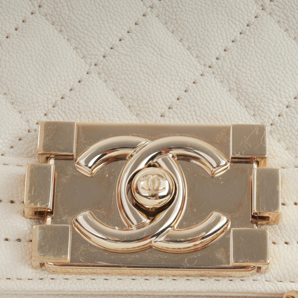 Chanel Small Boy Bag - Ivory Caviar | Champagne Gold Hardware