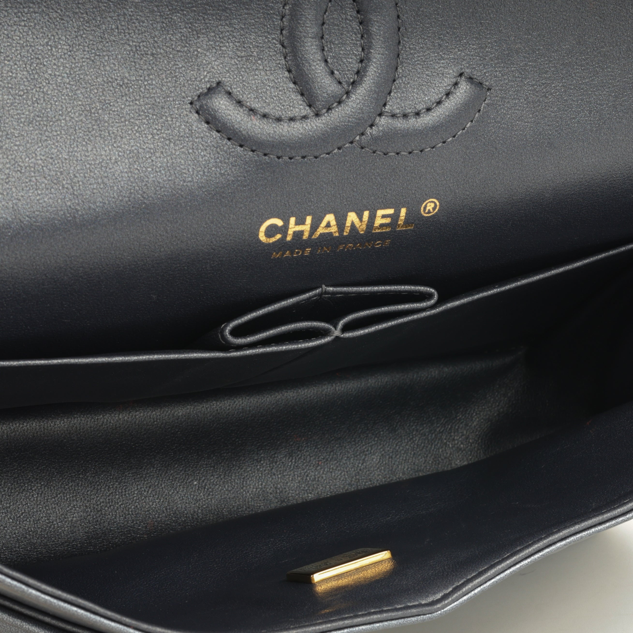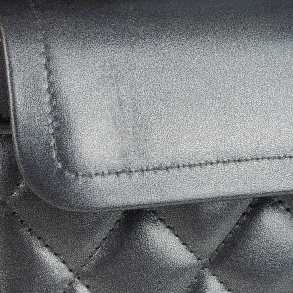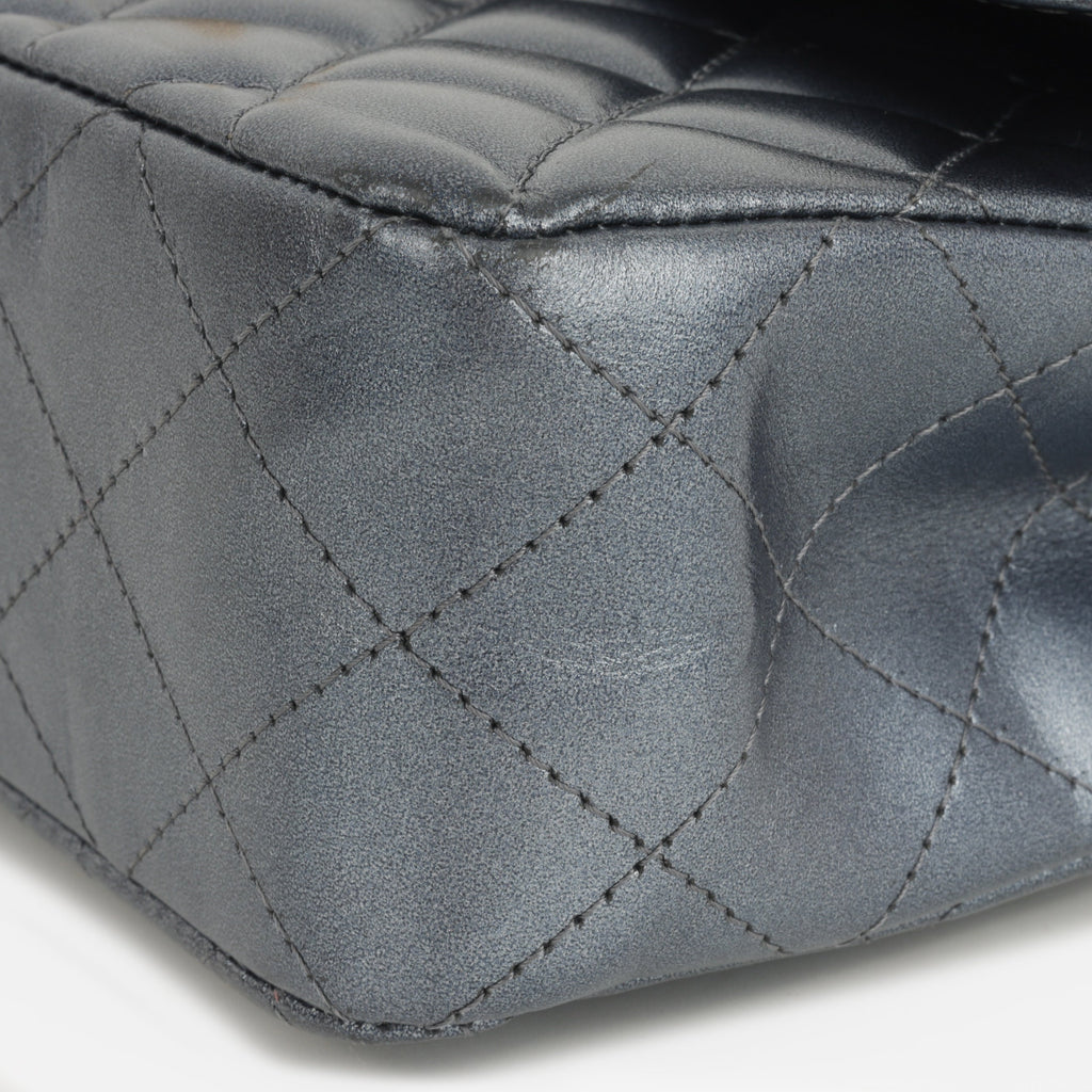 Elevate your collection with the Chanel Small Classic Flap in Blue Metallic Calfskin, a statement of modern luxury and timeless elegance. Crafted from smooth metallic calfskin, this bag shines with a subtle iridescent finish, perfectly complemented by gleaming gold hardware for a sophisticated, eye-catching contrast.