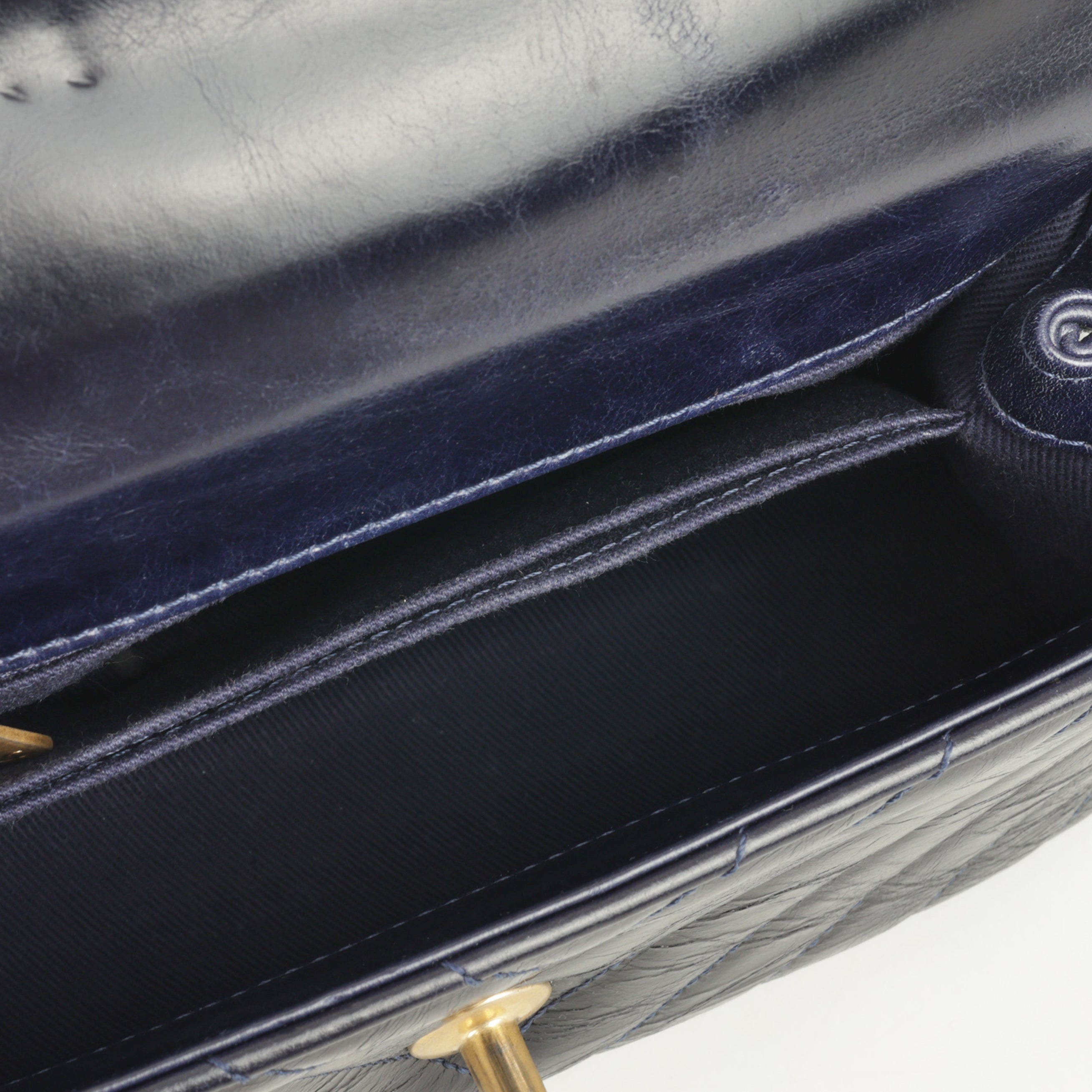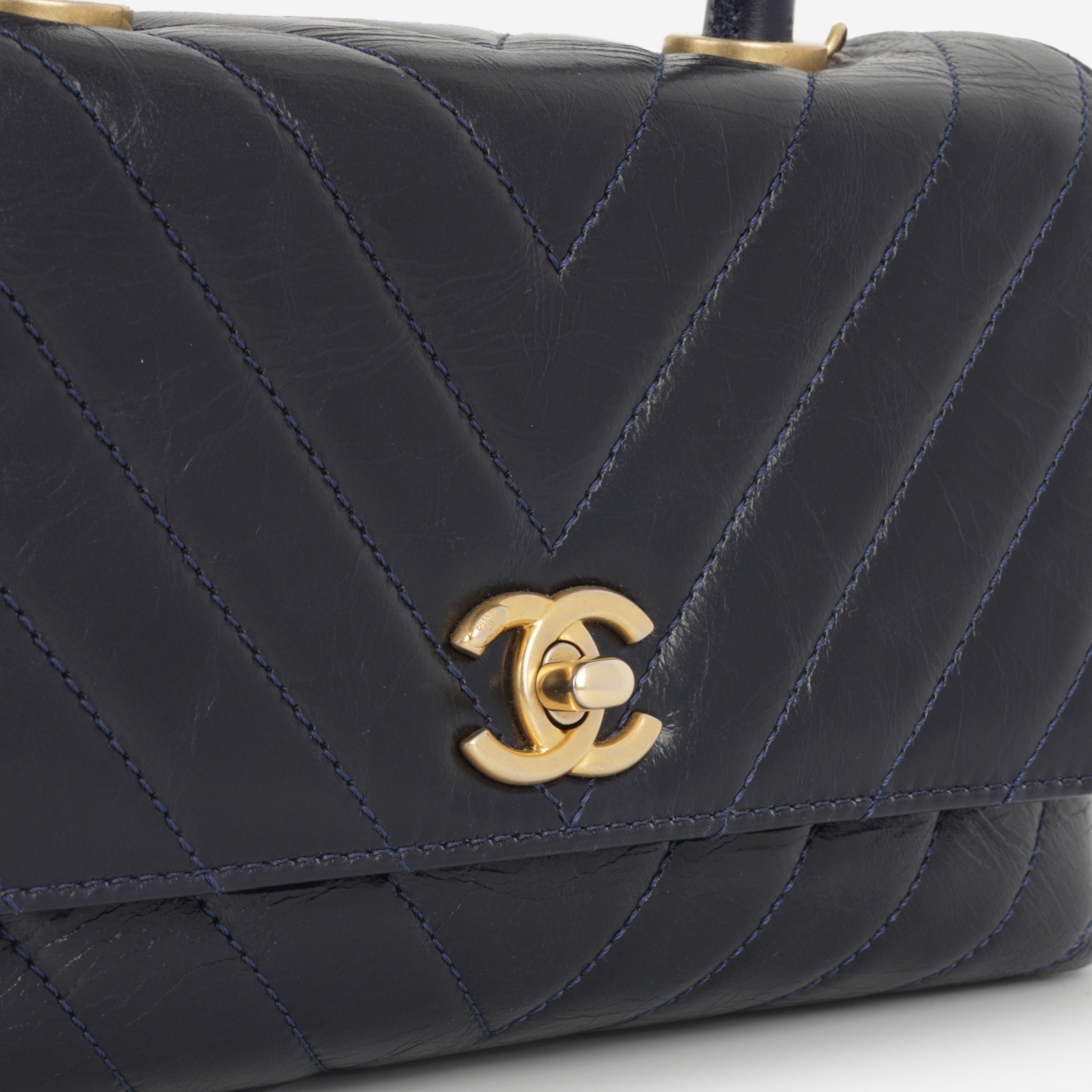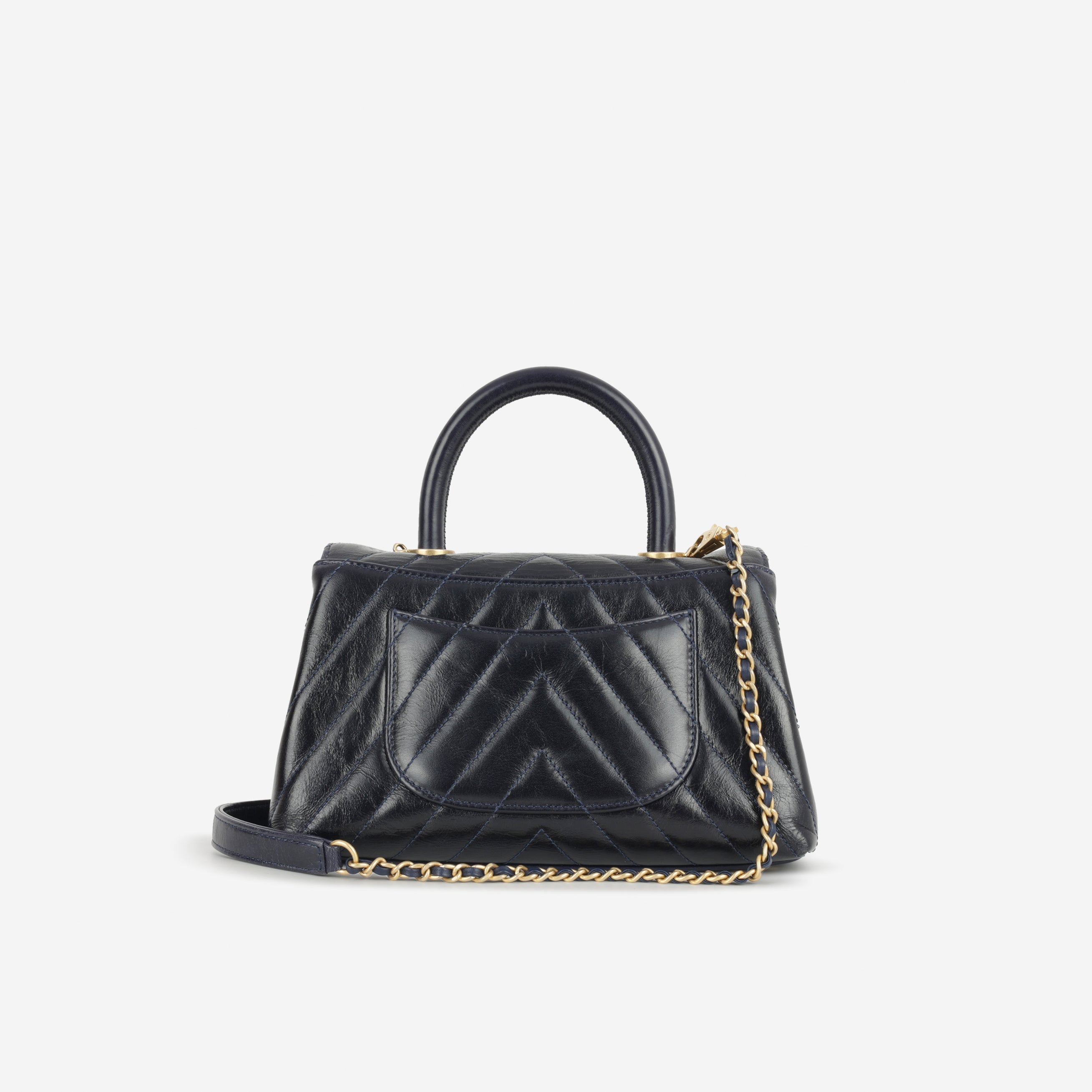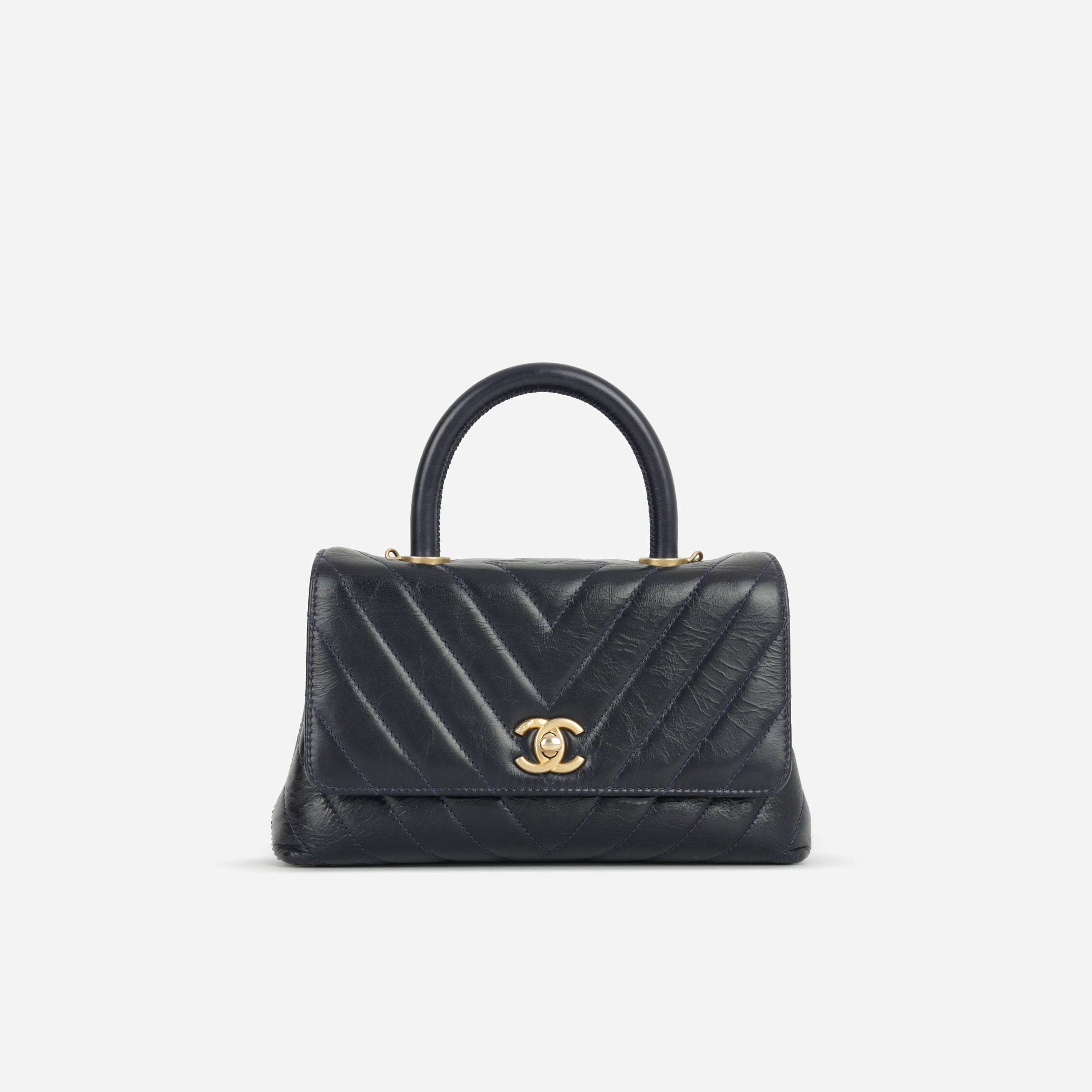 Chanel Small Coco Handle - Navy Chevron Calfskin | Gold Hardware
