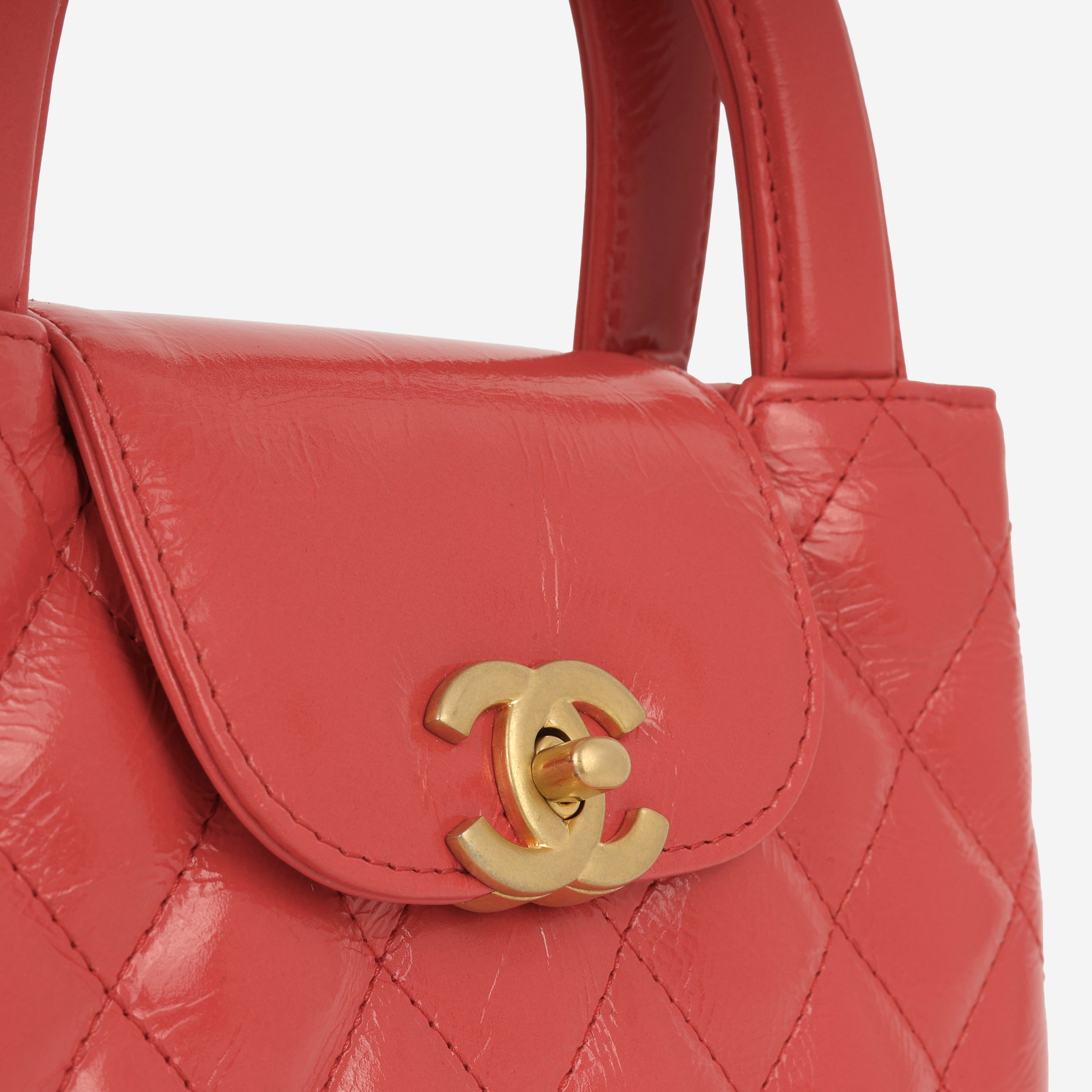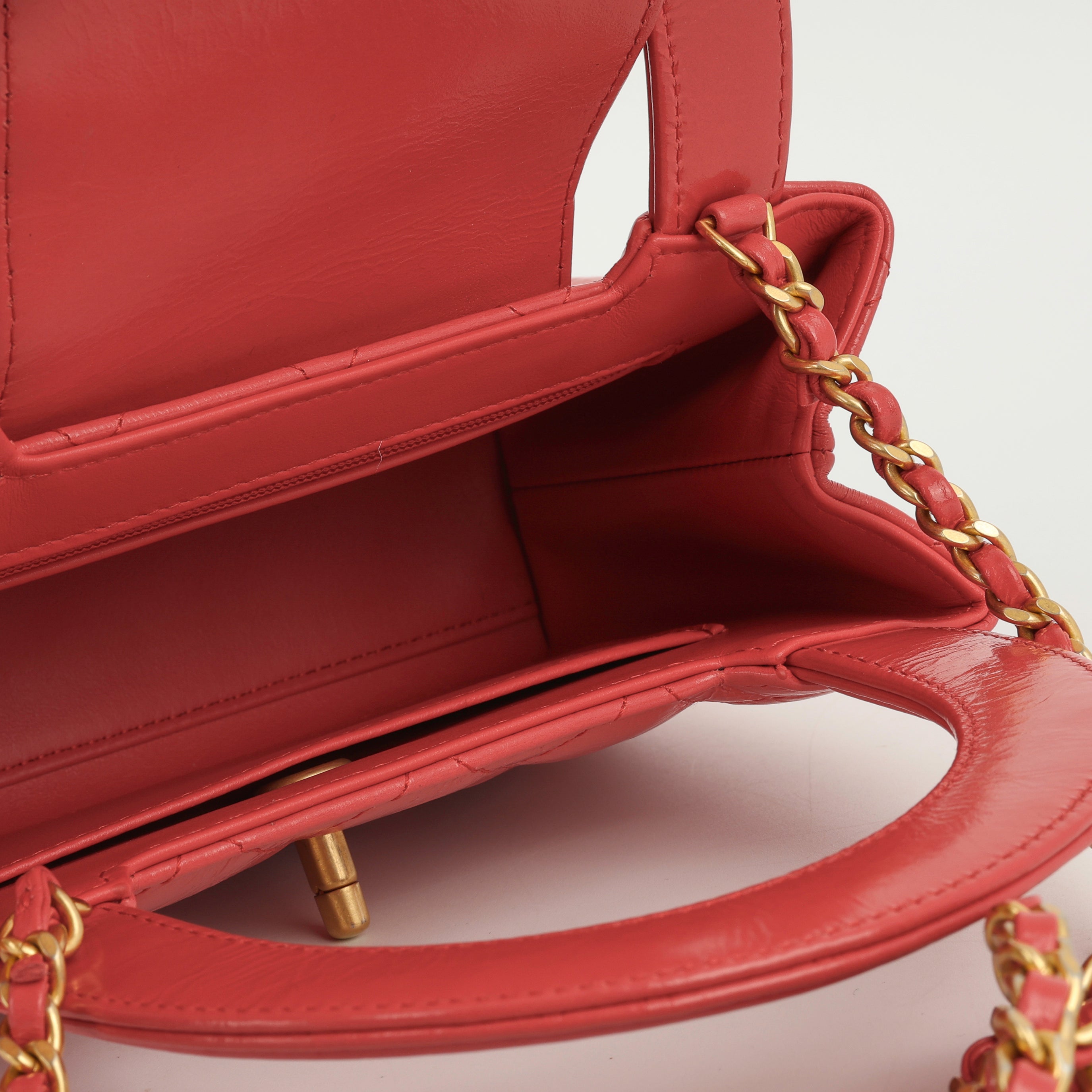 • Red aged quilted calfskin