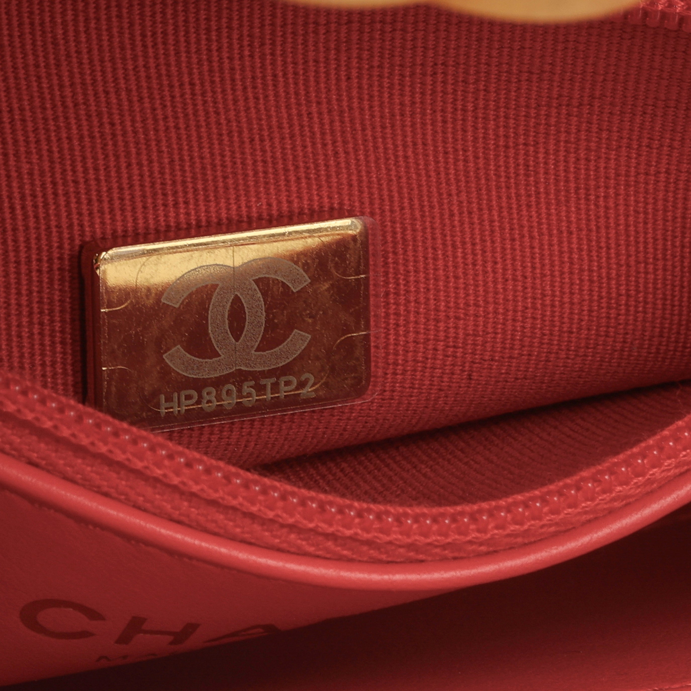 • Chanel embossed leather logo