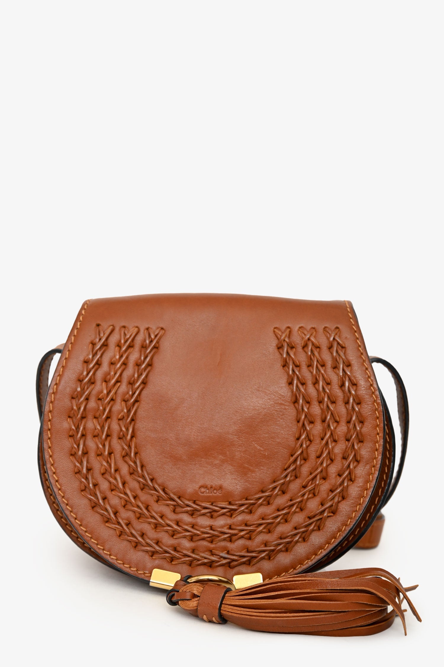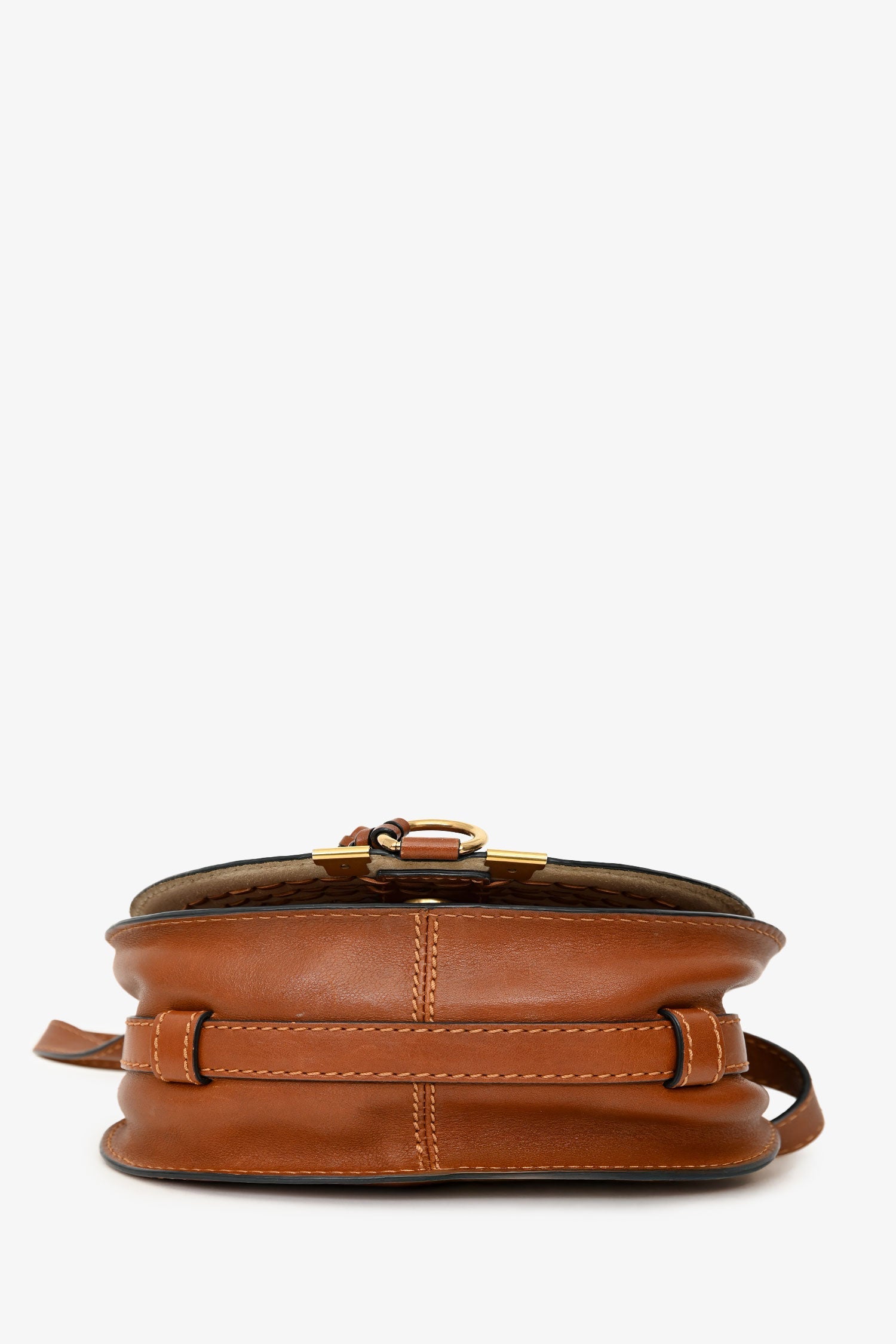 Chloe Brown Leather Whipstitch Small Saddle Marcie Crossbody Bag