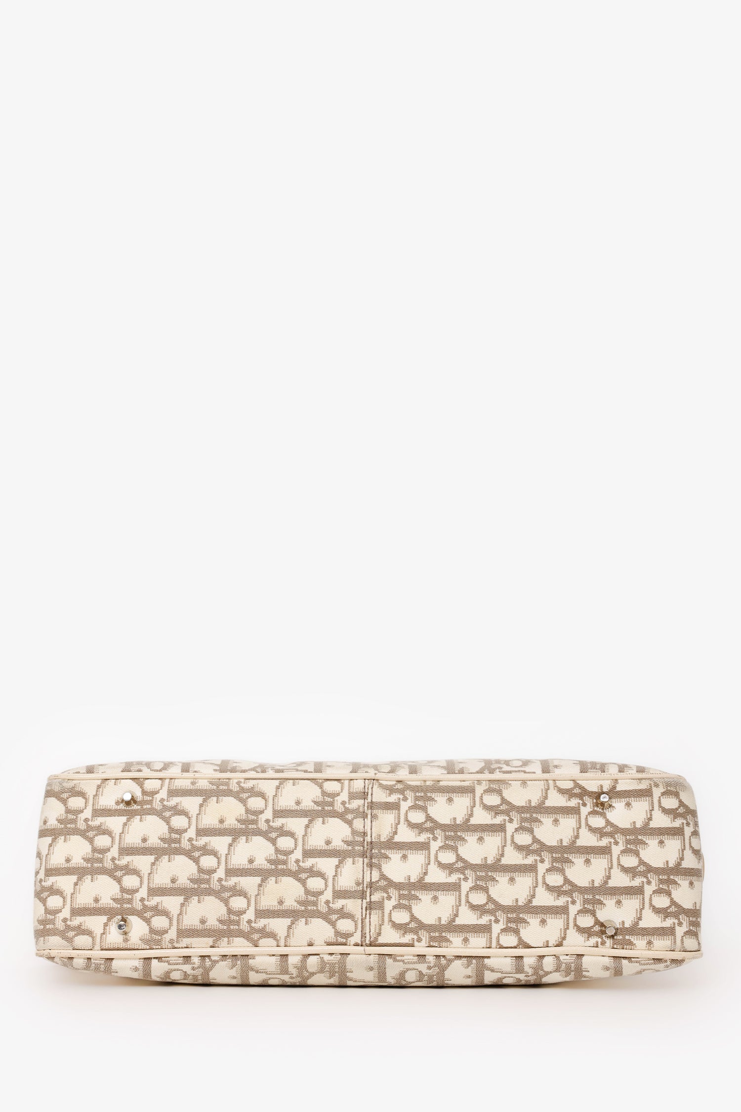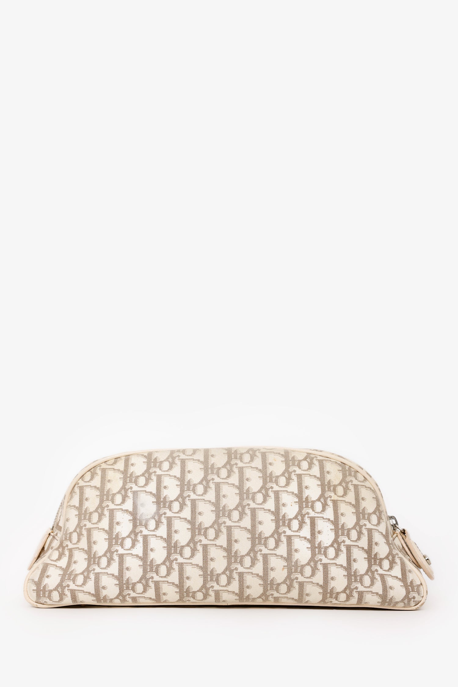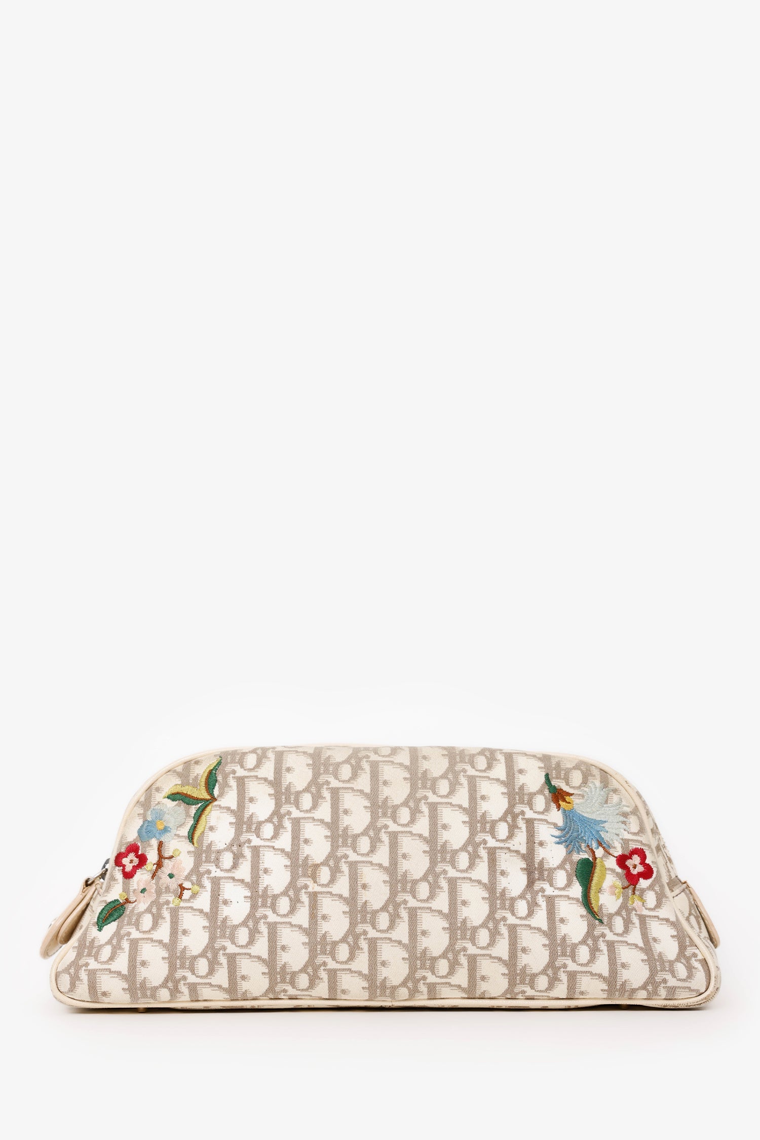 Christian Dior 2005 Beige/Cream Canvas Floral Embroidered Oblique Pouch