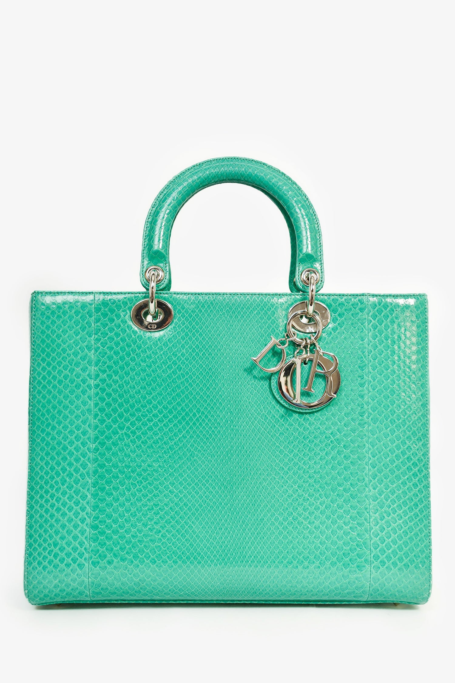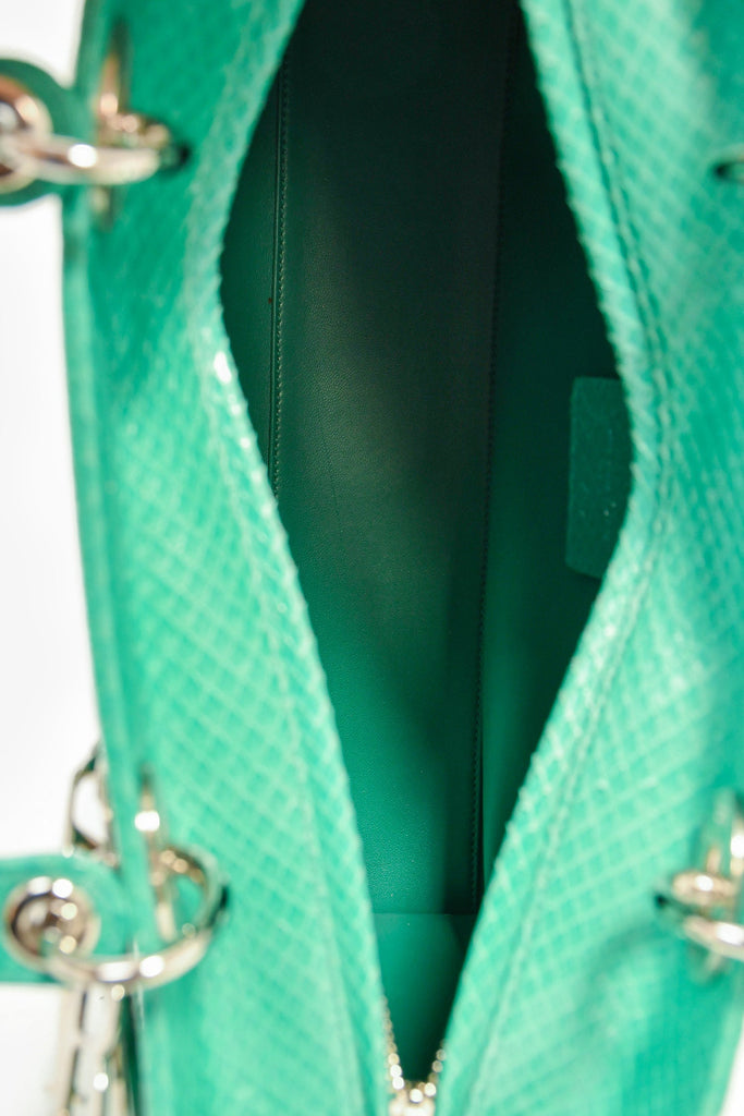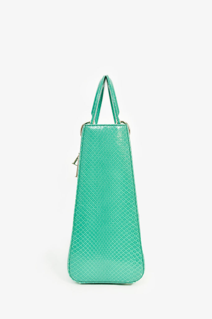Christian Dior 2014 Teal Patent Python Large Lady Dior Top Handle with Strap