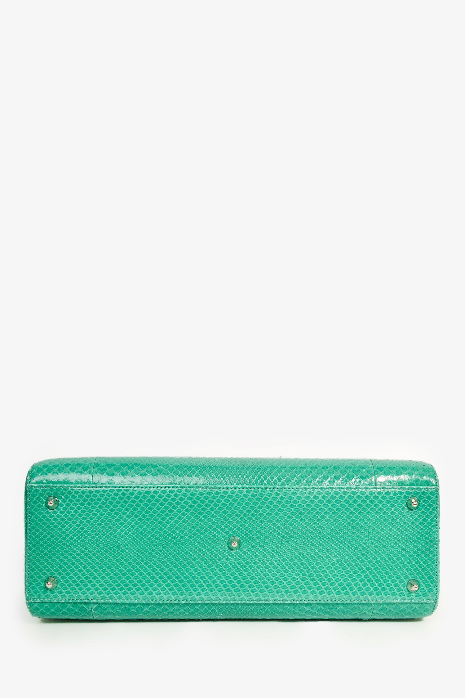 Christian Dior 2014 Teal Patent Python Large Lady Dior Top Handle with Strap. Dual handles. Top zipper closure. Single interior compartment with a wall zip pocket. Detachable strap. Bottom protective studs. Tonal leather lining. Silver-tone hardware. Tonal stitching.