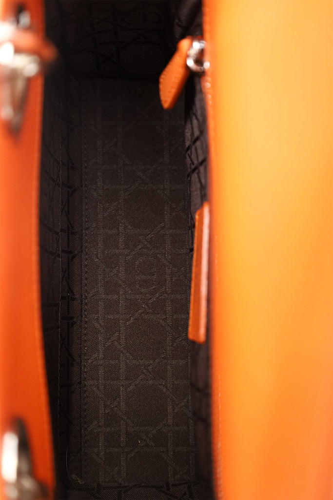 Christian Dior 2016 Orange Leather Cannage Small Lady Dior with Strap