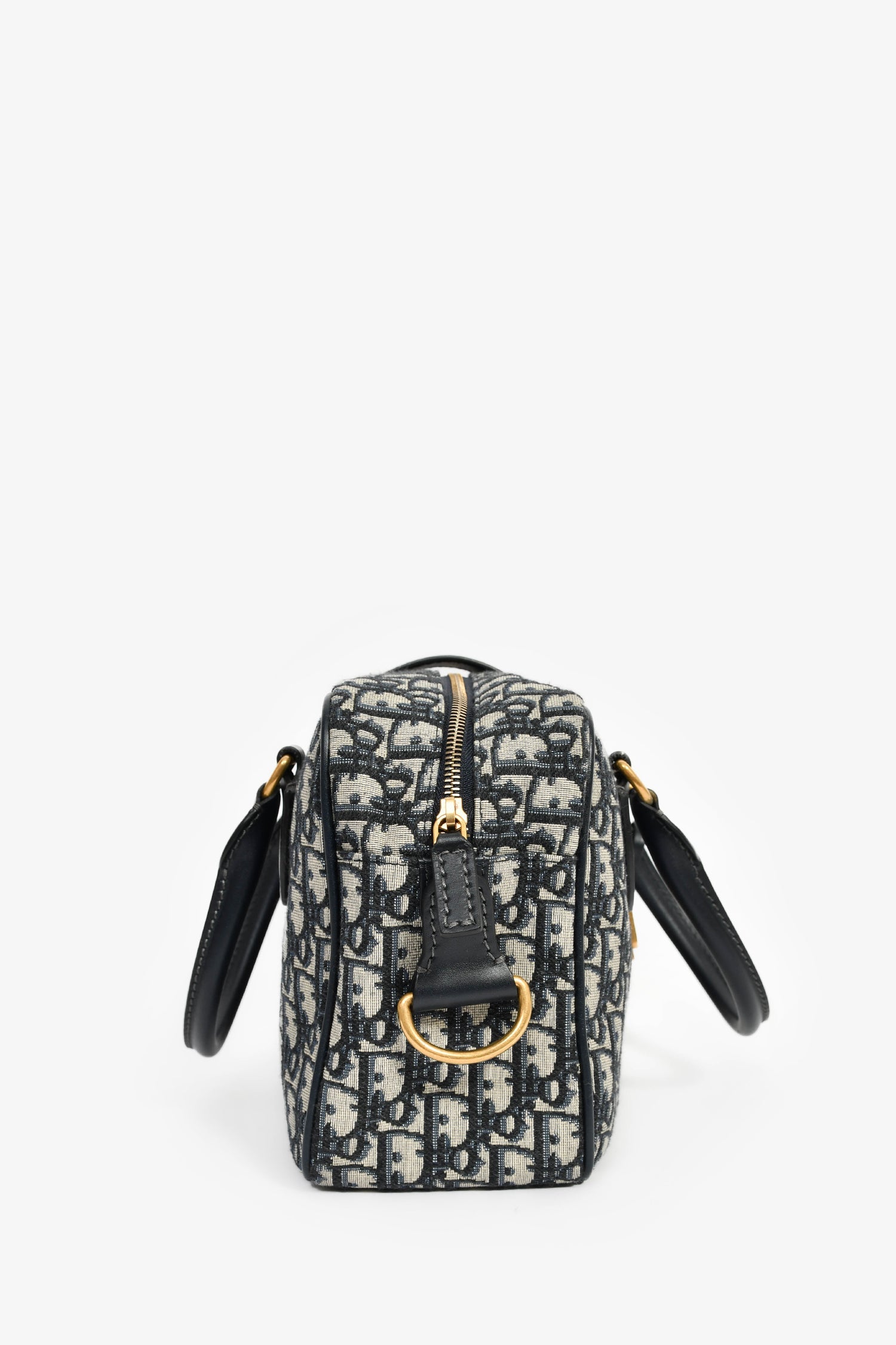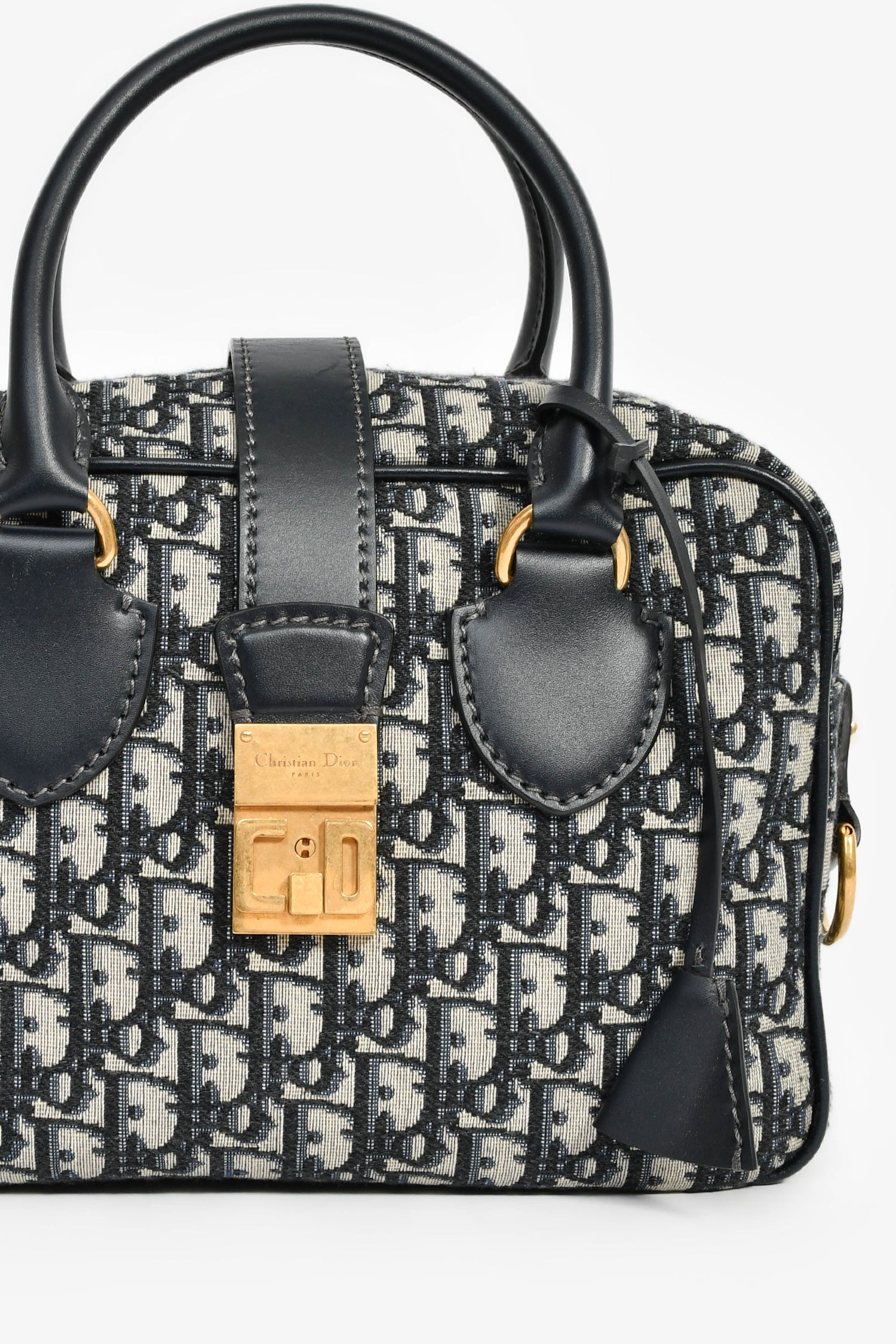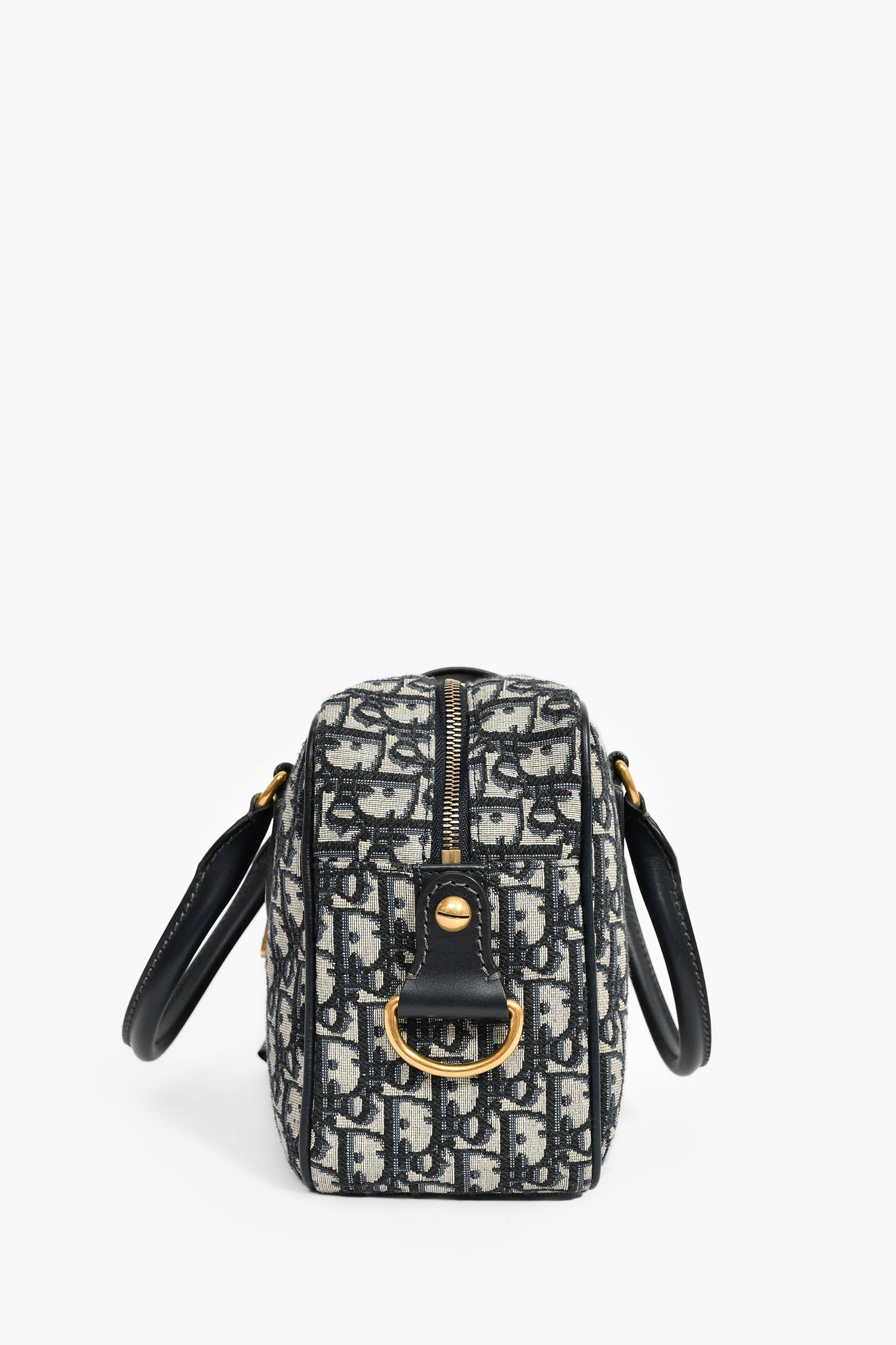 Christian Dior 2017 Navy Oblique Jacquard Bowling Bag with Strap